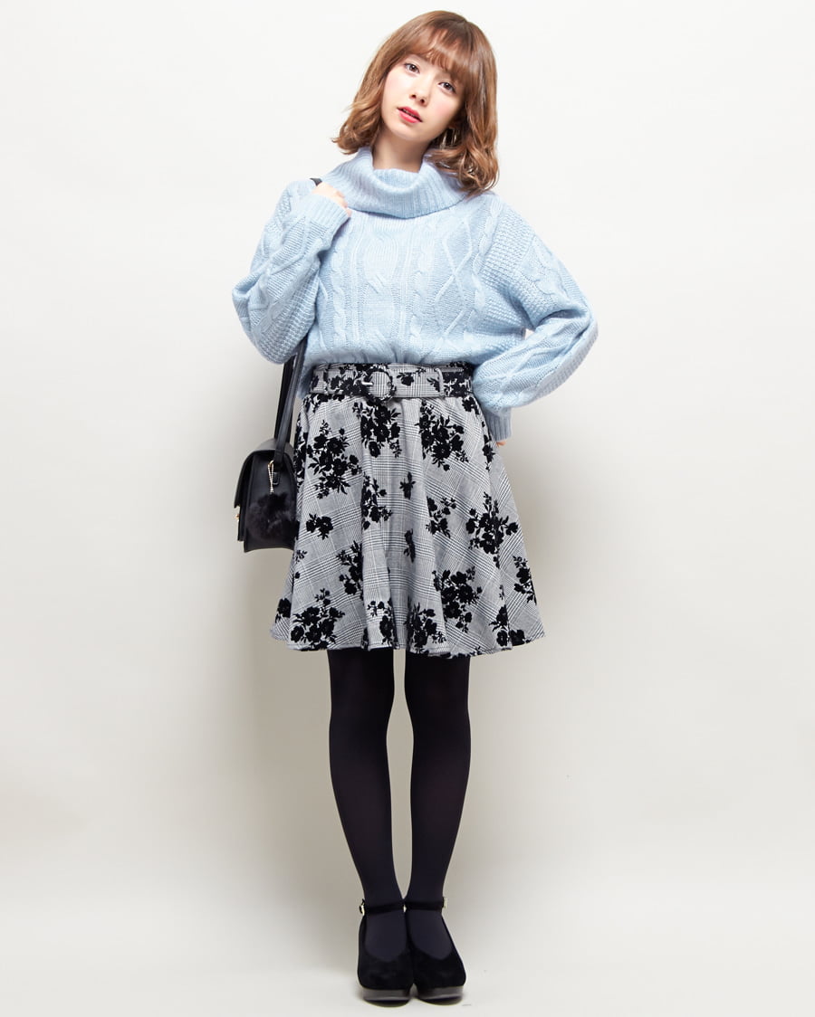 NEWケーブルオフタートルと共ベルト付フレアスカートのSET☆