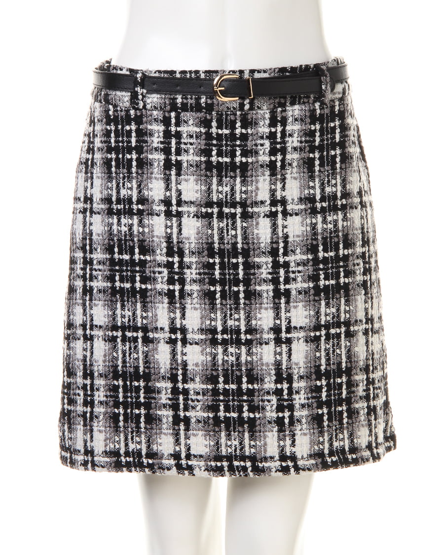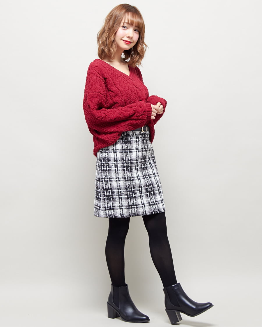 モールケーブルVネックニットとベルト付ツイード台形スカートのSET☆
