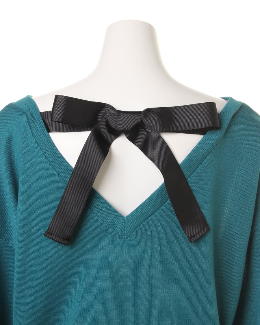 すっきり開いたネックラインや、バックにあしらったリボンが大人な雰囲気のチュニック。腰にかかる丈が、ヒップ周りをカバーしてくれる効果も期待できる一枚。ドロップショルダーやボディラインを拾わないゆったりした見ごろが、トレンドライクなアイテムです。バックリボンは調節ができるので、コーディネイトに合わせてアレンジが可能です。さらっとした生地で、着心地抜群なのもうれしいポイント◎。