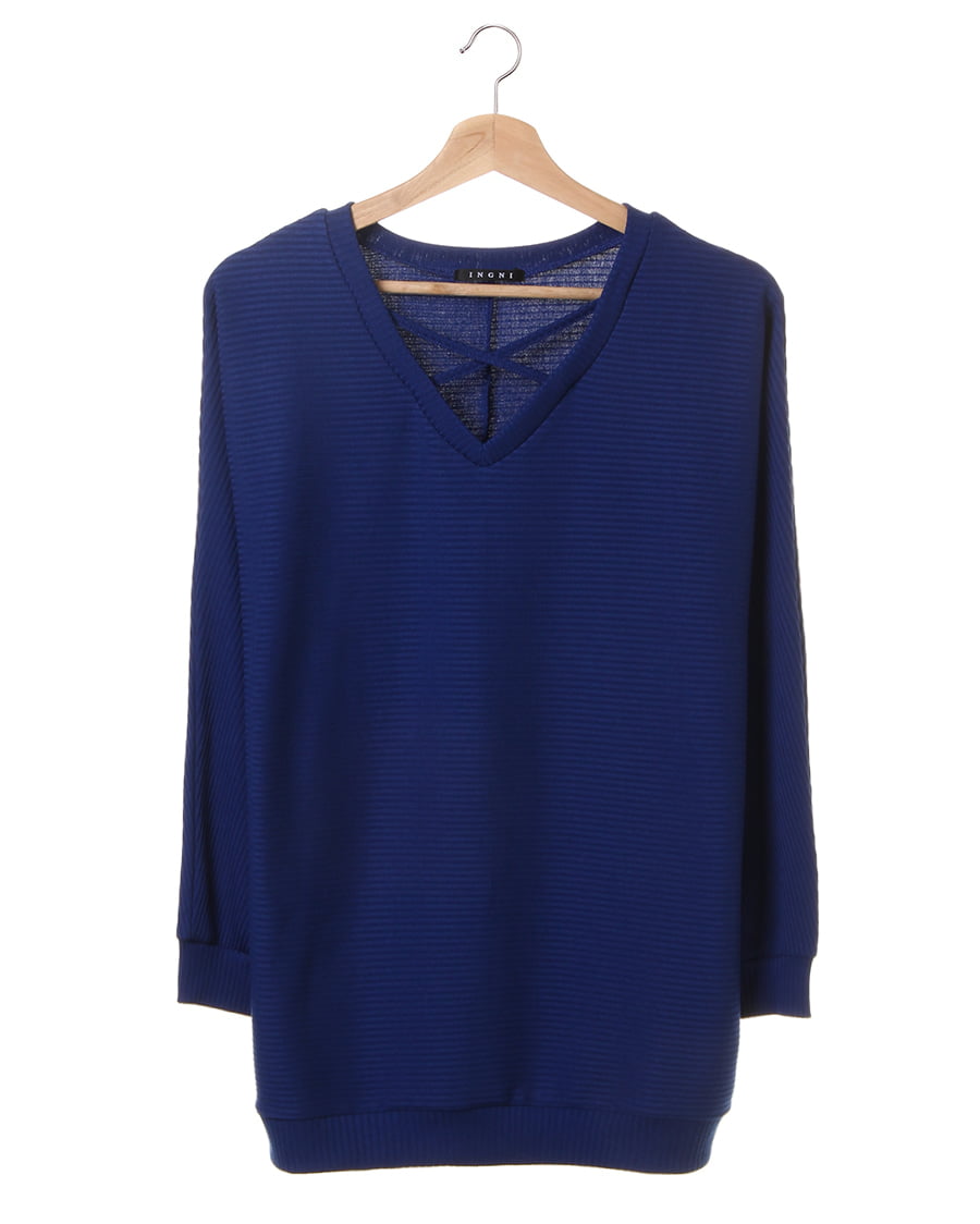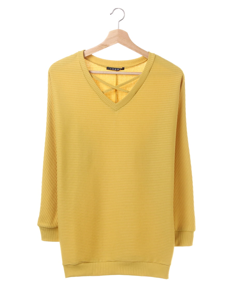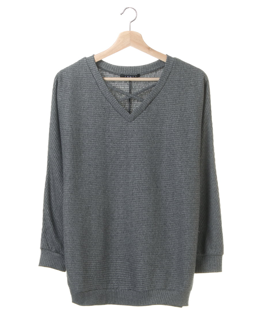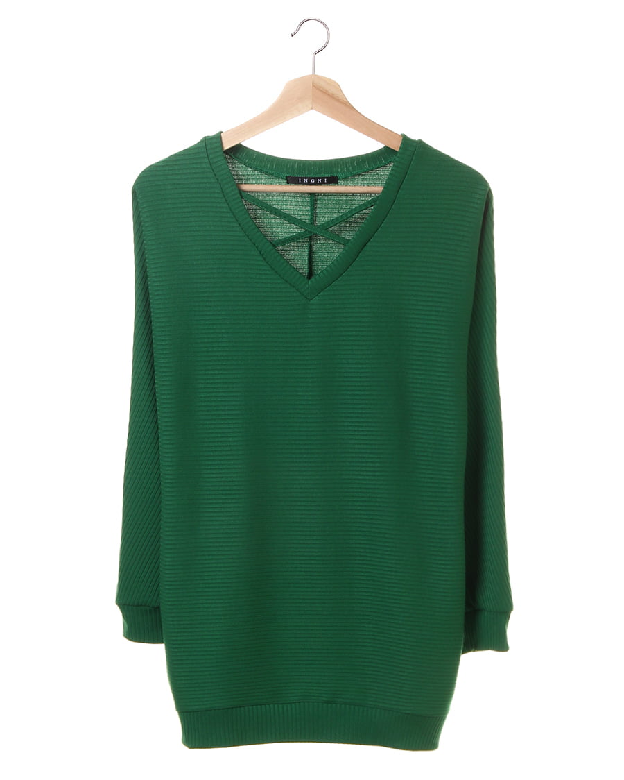 デコルテをきれいにみせてくれるVネックに、クロスを落とし込んだデザイン性のあるプルオーバー。タートルなどをインナー使いにすればすぐに使える生地感も魅力的。身体をゆったりと包み込むシルエットとドルマンスリーブが、リラクシ―な着心地を実現します。伸縮性が高いのでアクティブな動きの補助も抜群。トレンドに左右されない形でワードローブに一枚は欲しい優秀アイテムです。