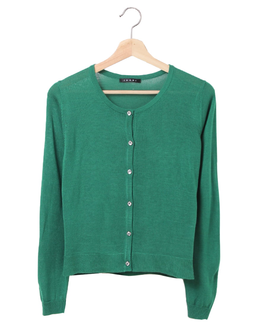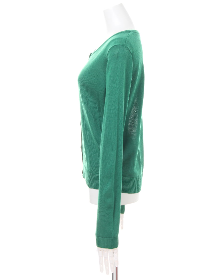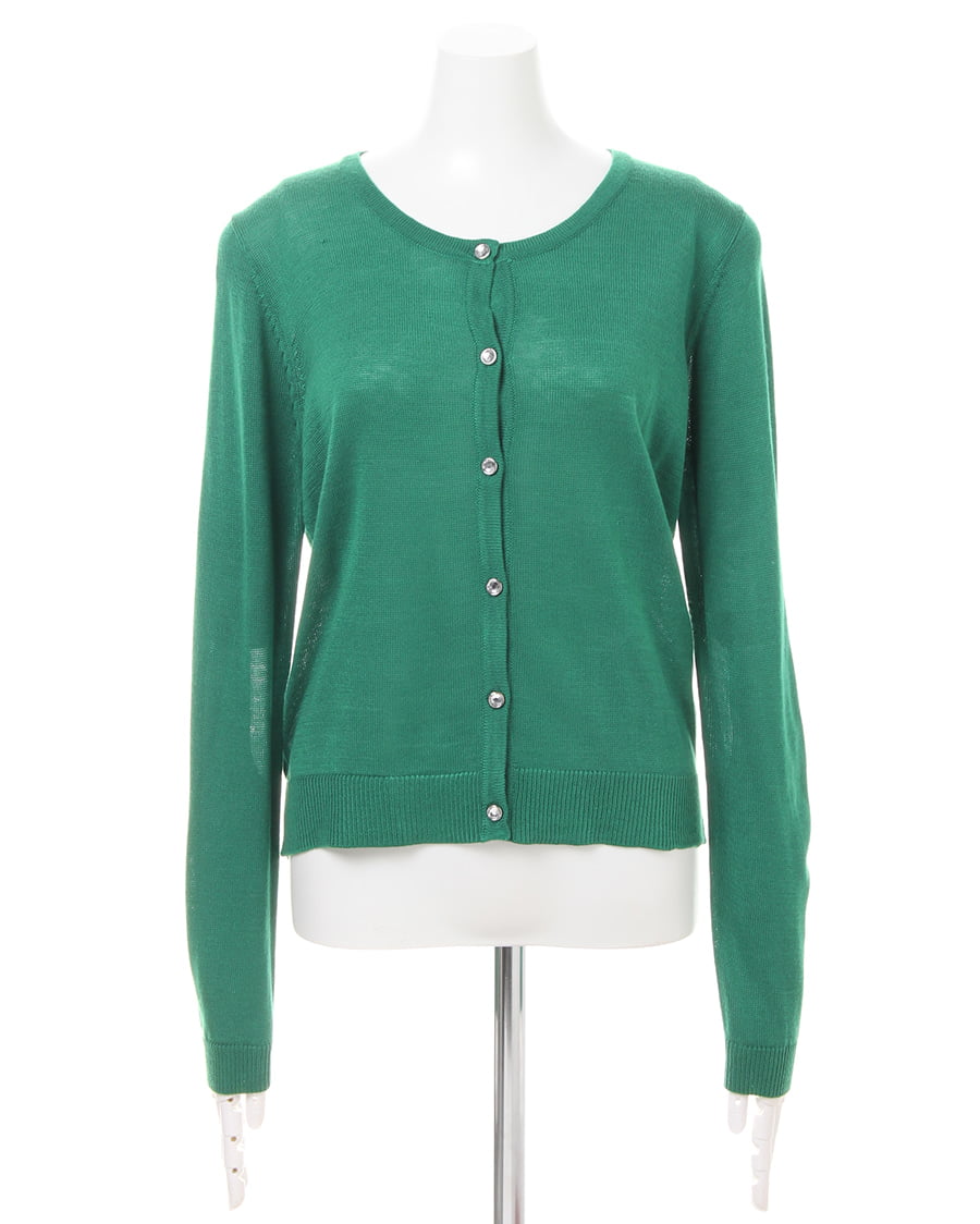 ハリ感のある薄手のニットカーディガンはコンパクトなサイジングが◎。上半身をすっきり見せスタイルアップを叶えてくれるので、着回し度◎のアイテムです。ベーシックでシンプルなデザインはボタン部分をビジューにすることでアクセントに。さらりとした生地でこれからの季節に重宝します。コーディネートのアクセントになるカラーから着回しの効くベーシックなカラーまでバリエーション豊富に揃っています。