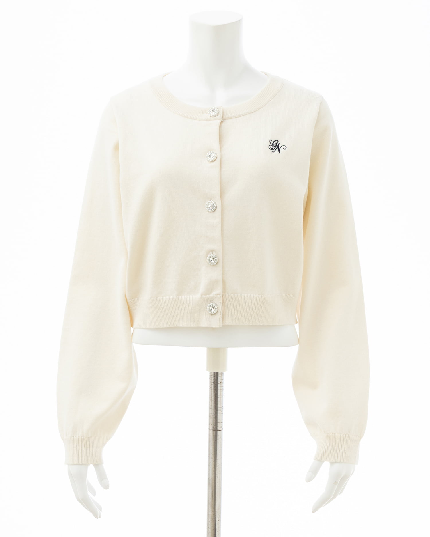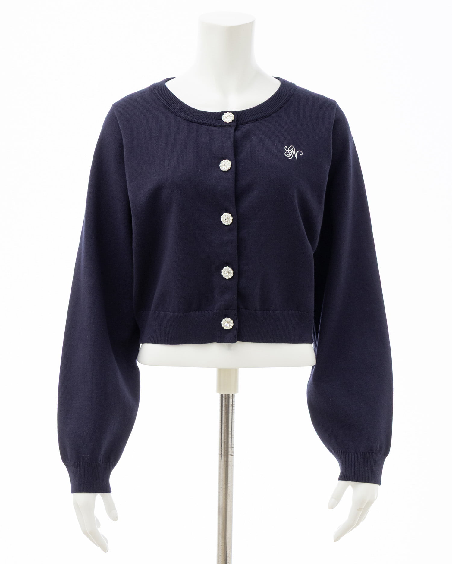 【ビジューボタンが華やかなニットカーディガン】