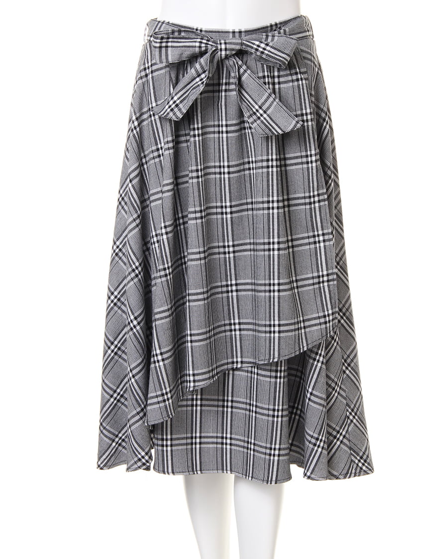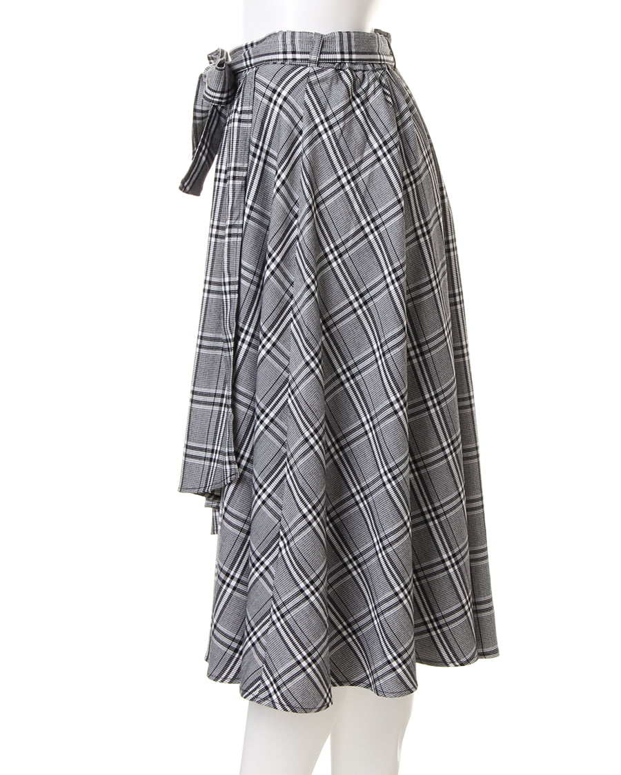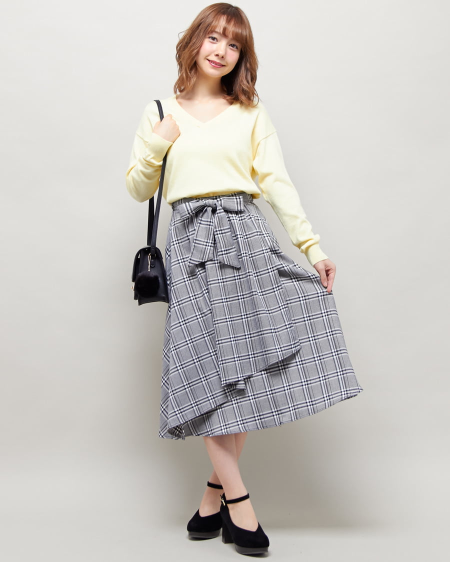 天竺サイドスリットVネックとサッシュ付グレンチェックラップスカートのSET☆