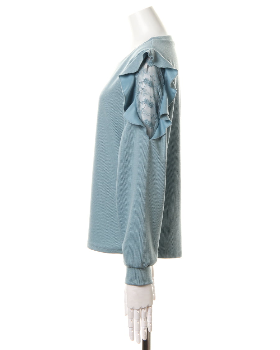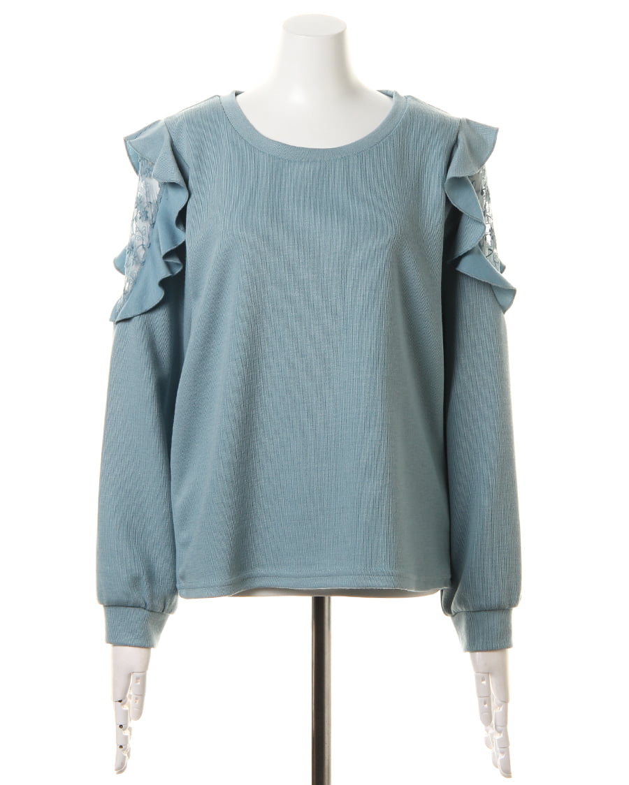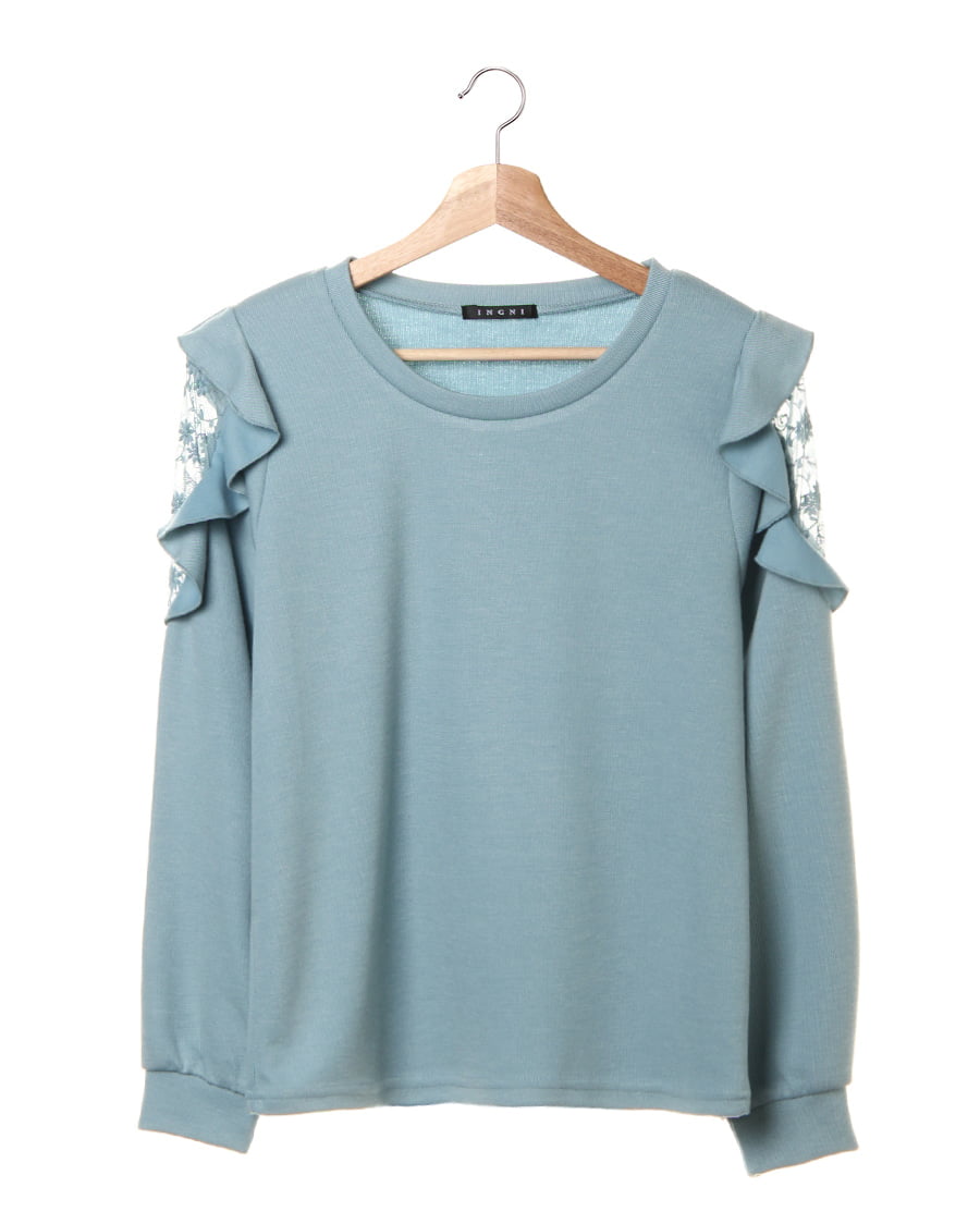 フェミニン&レディなトップスはしなやか素材で着心地抜群。伸縮性のある生地は伸びにくく、さらりとした肌触りが◎。ベーシックなデザインにフリルとレースを組み合わせて今年らしく仕上げた1枚です。大きめのフリルから覗くレースは小さめのフラワーが◎。絶妙な裾丈はトップスインスタイルもすっきり決まります。