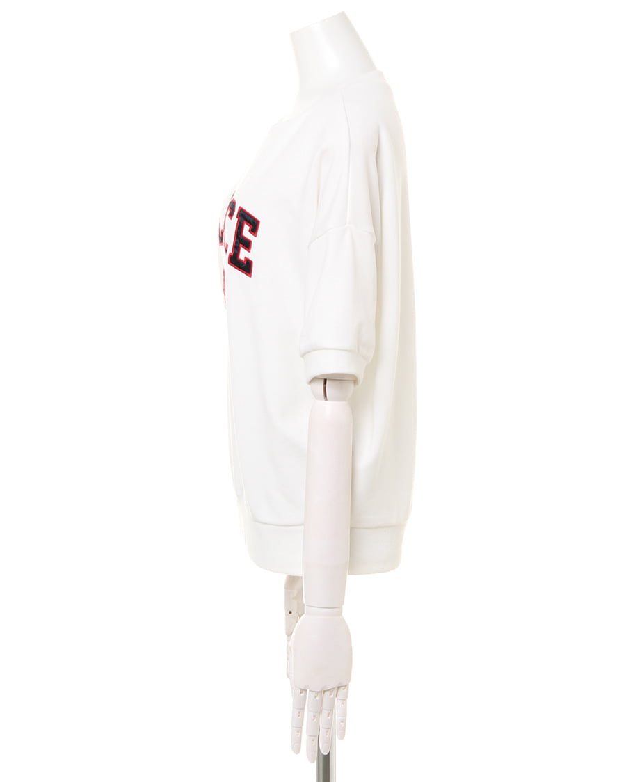 ボリュームのあるシルエットとフロントのガレッジロゴデザインが旬の要素満載なプルオーバー。光沢のある生地であしらわれた立体感のあるガレッジロゴが着こなしのアクセントに。ざっくりとした肌触りと、吸水性の高い裏毛がこれからの季節重宝します。ボディラインを包み込むゆったりシルエットは着るだけで女性らしい華奢見せを叶えます。