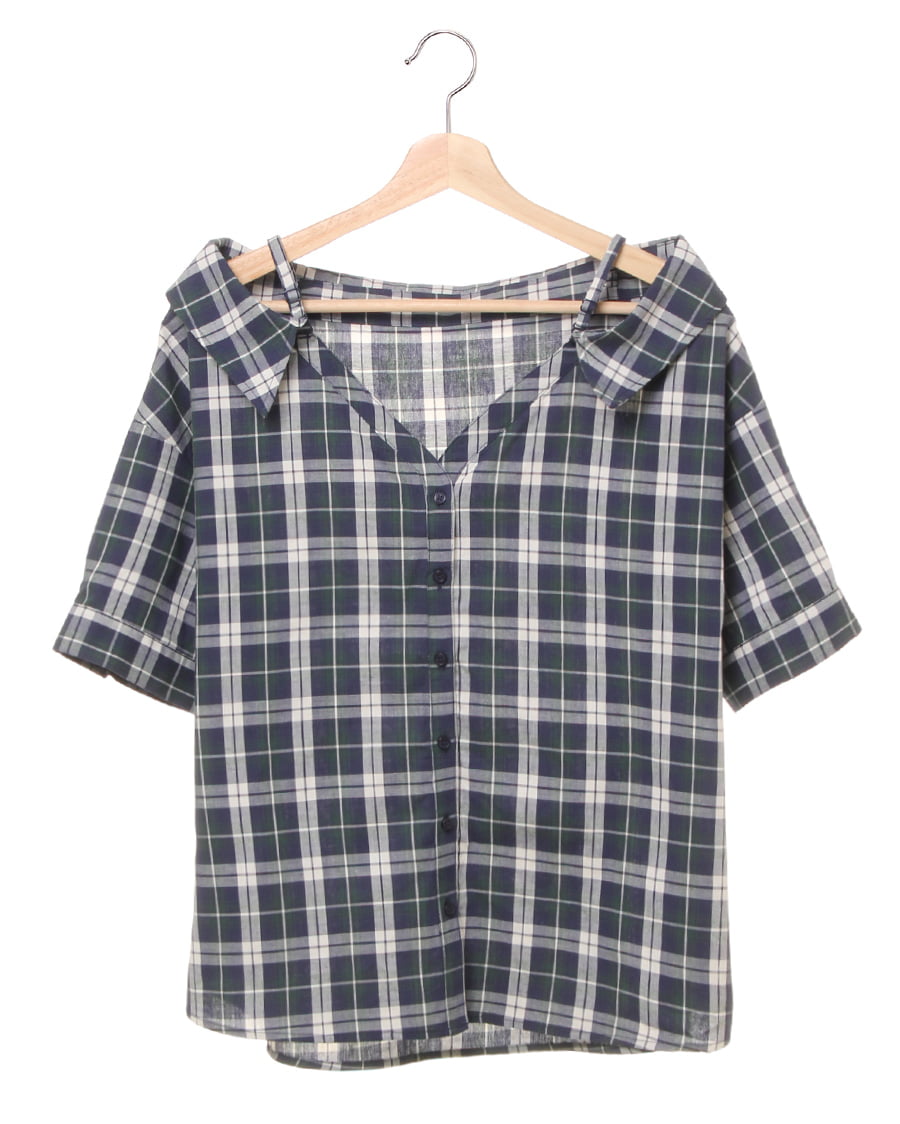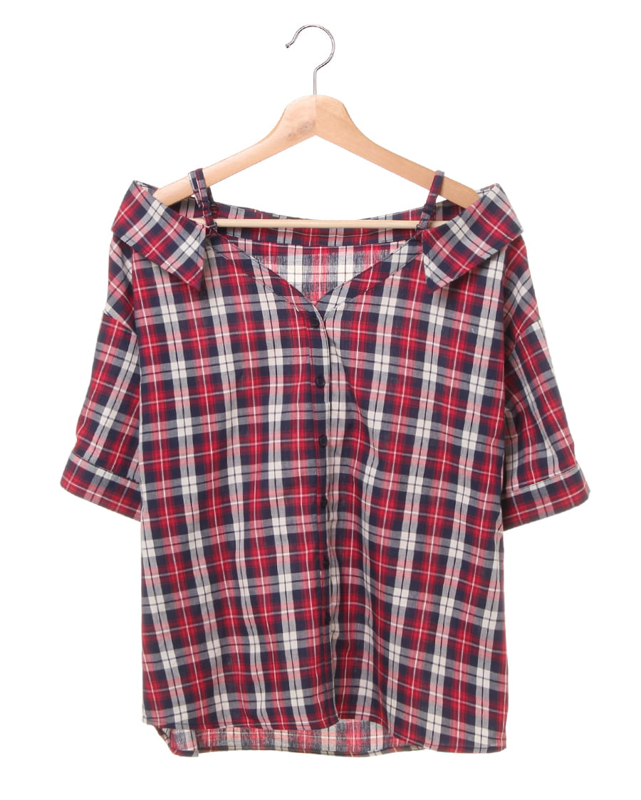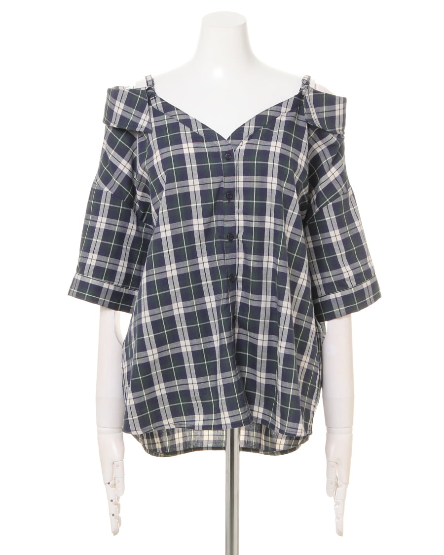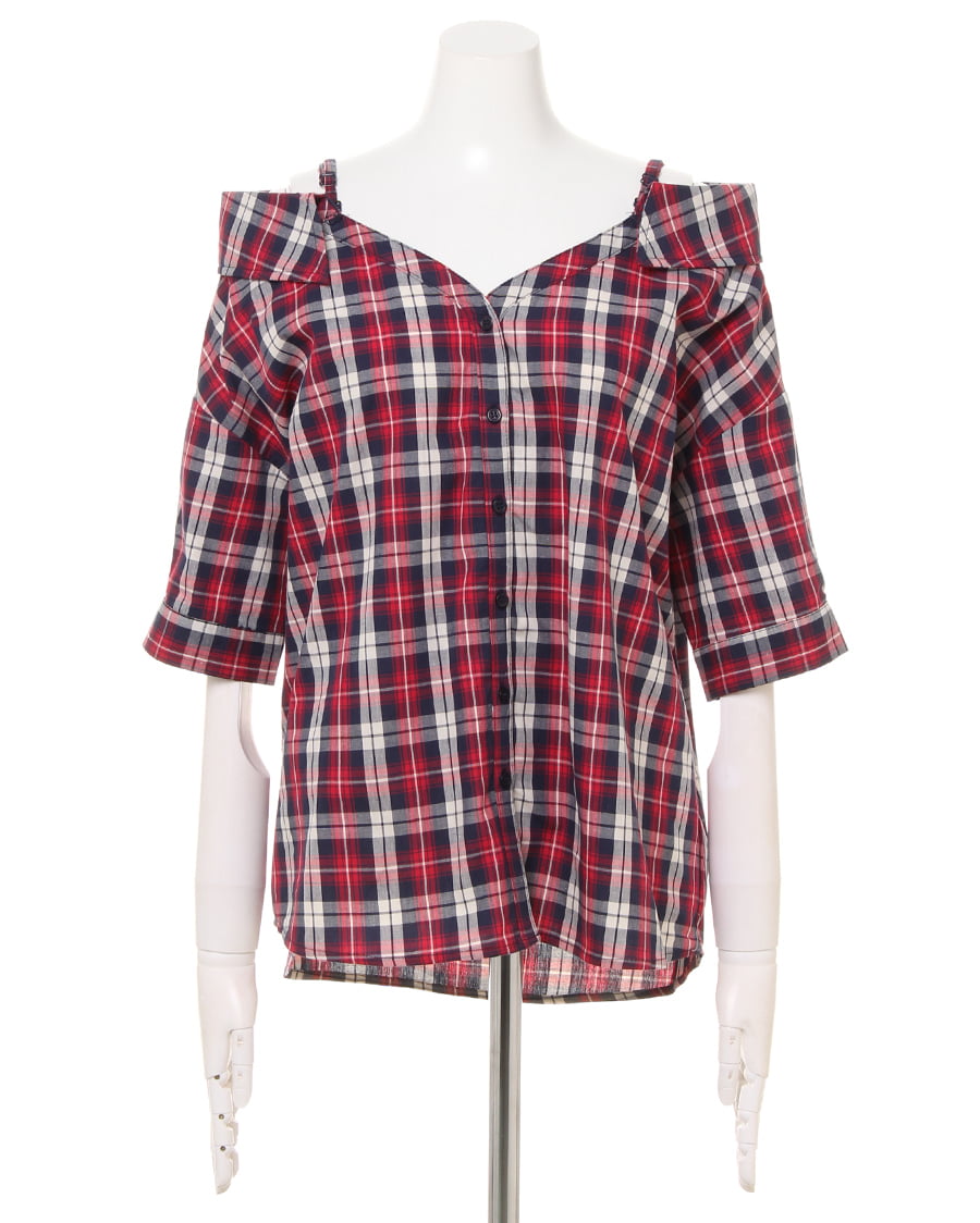 チェックオフショル/シャツ