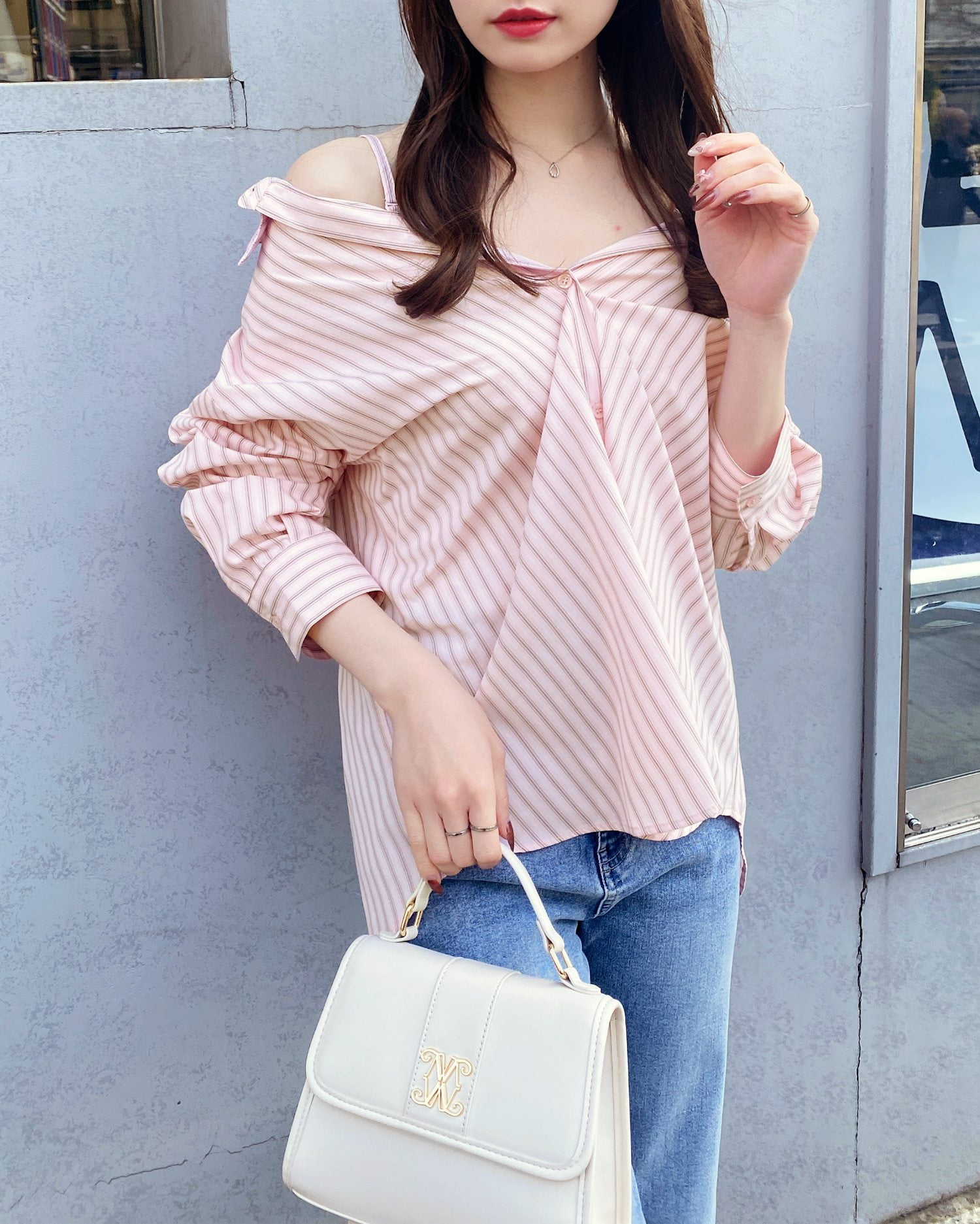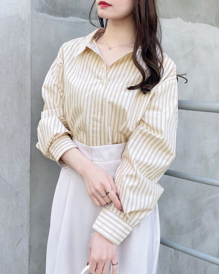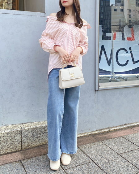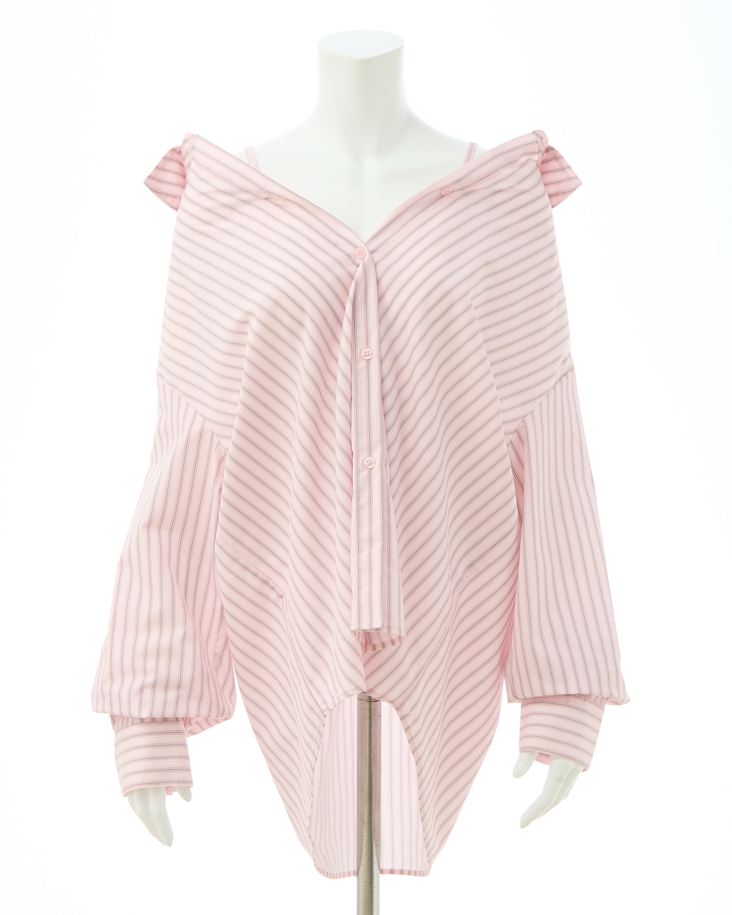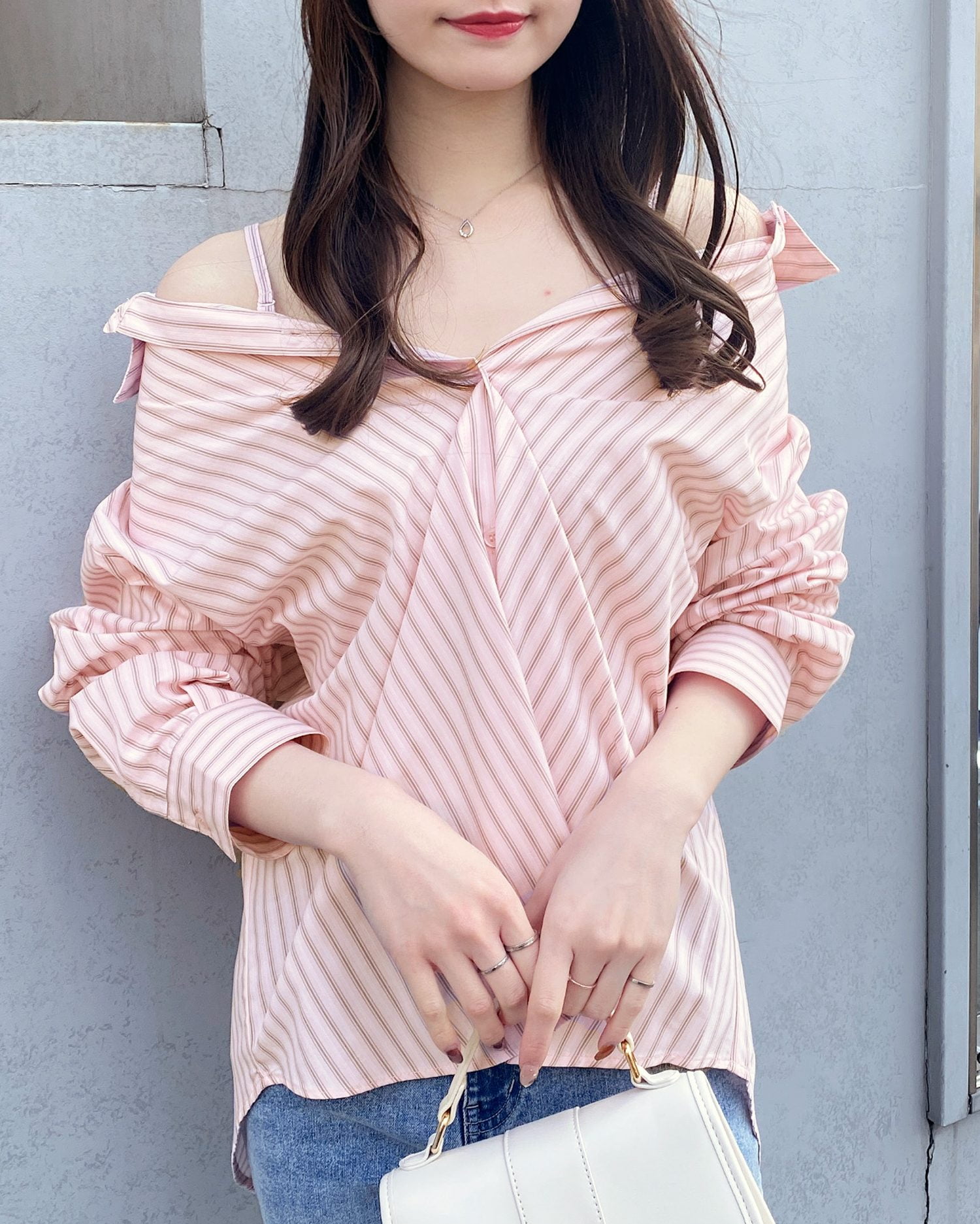 きちんと感のあるシャツをオフショルデザインでトレンドライクに。