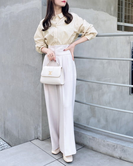 ハリ感のある生地と細めのストライプでキレイめにも合わせやすくなっています。