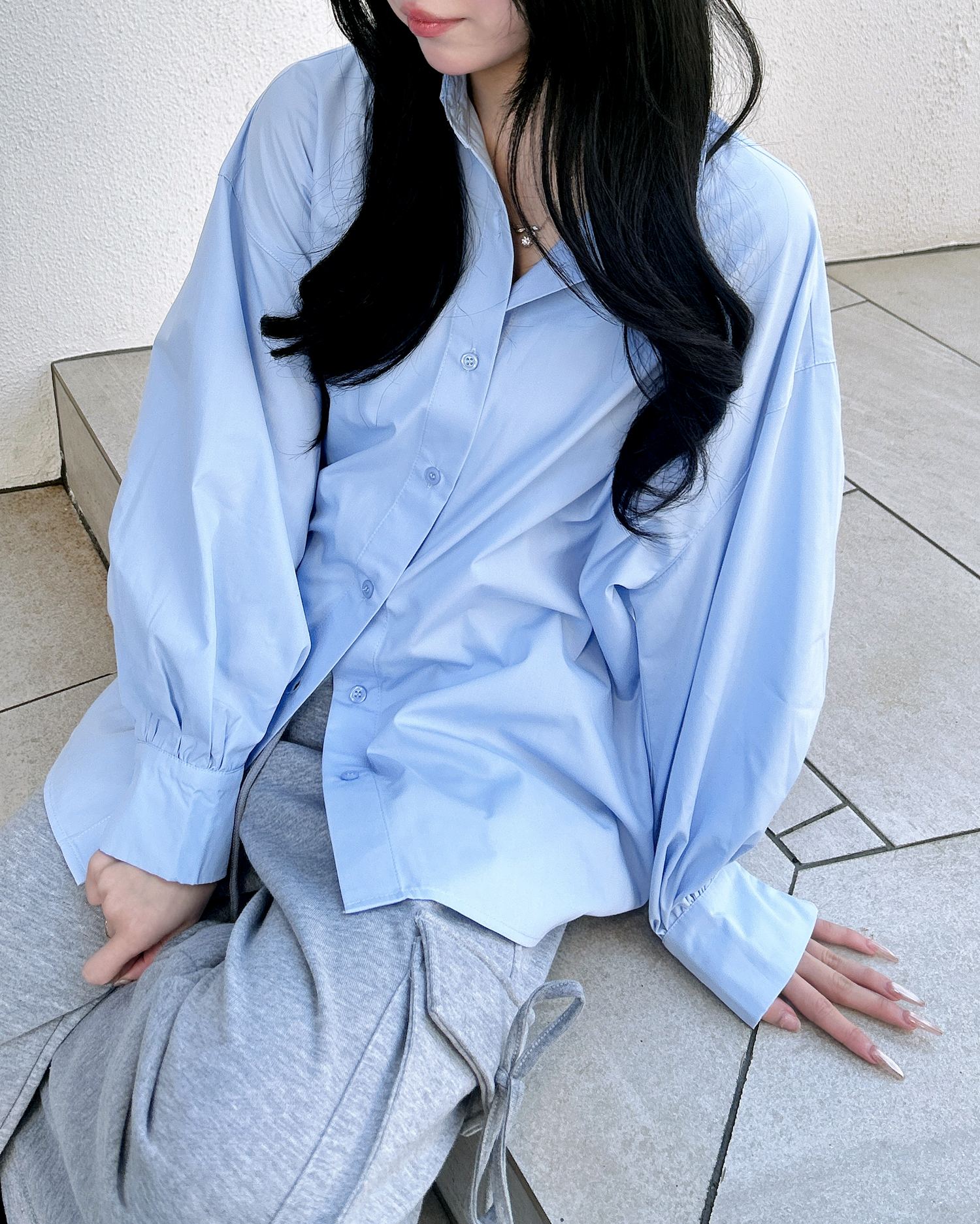 ビッグシルエットが印象的な大人見えシャツ。