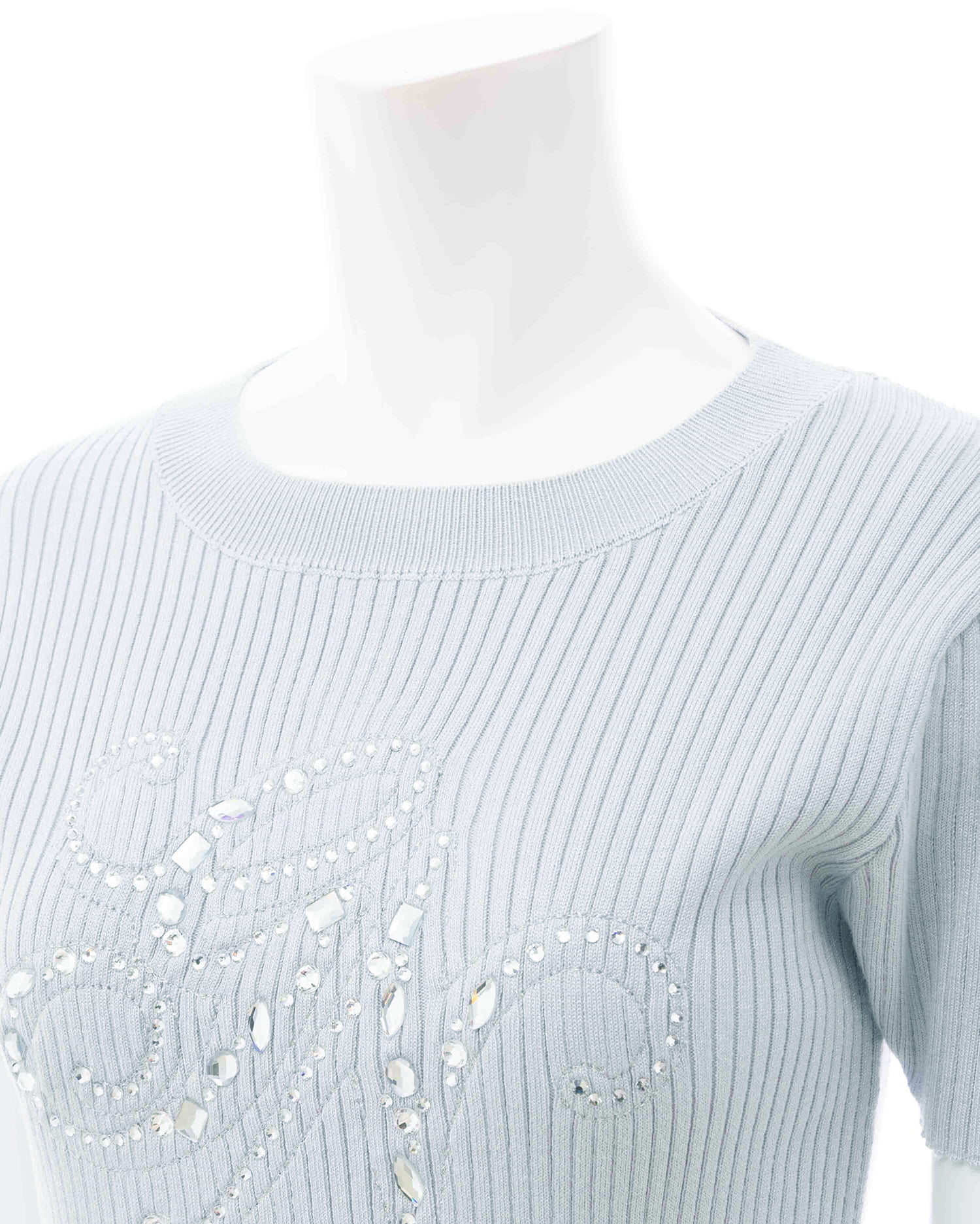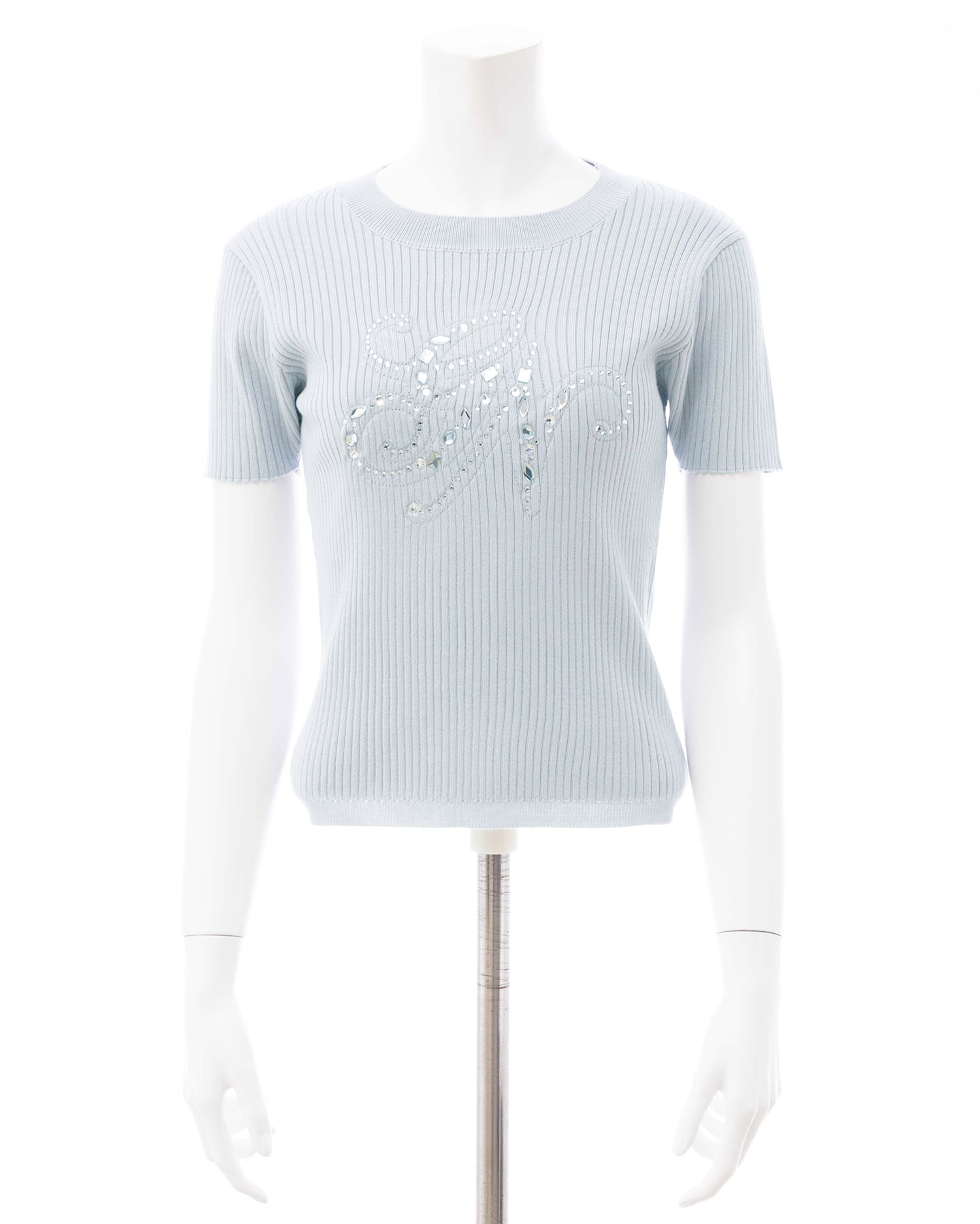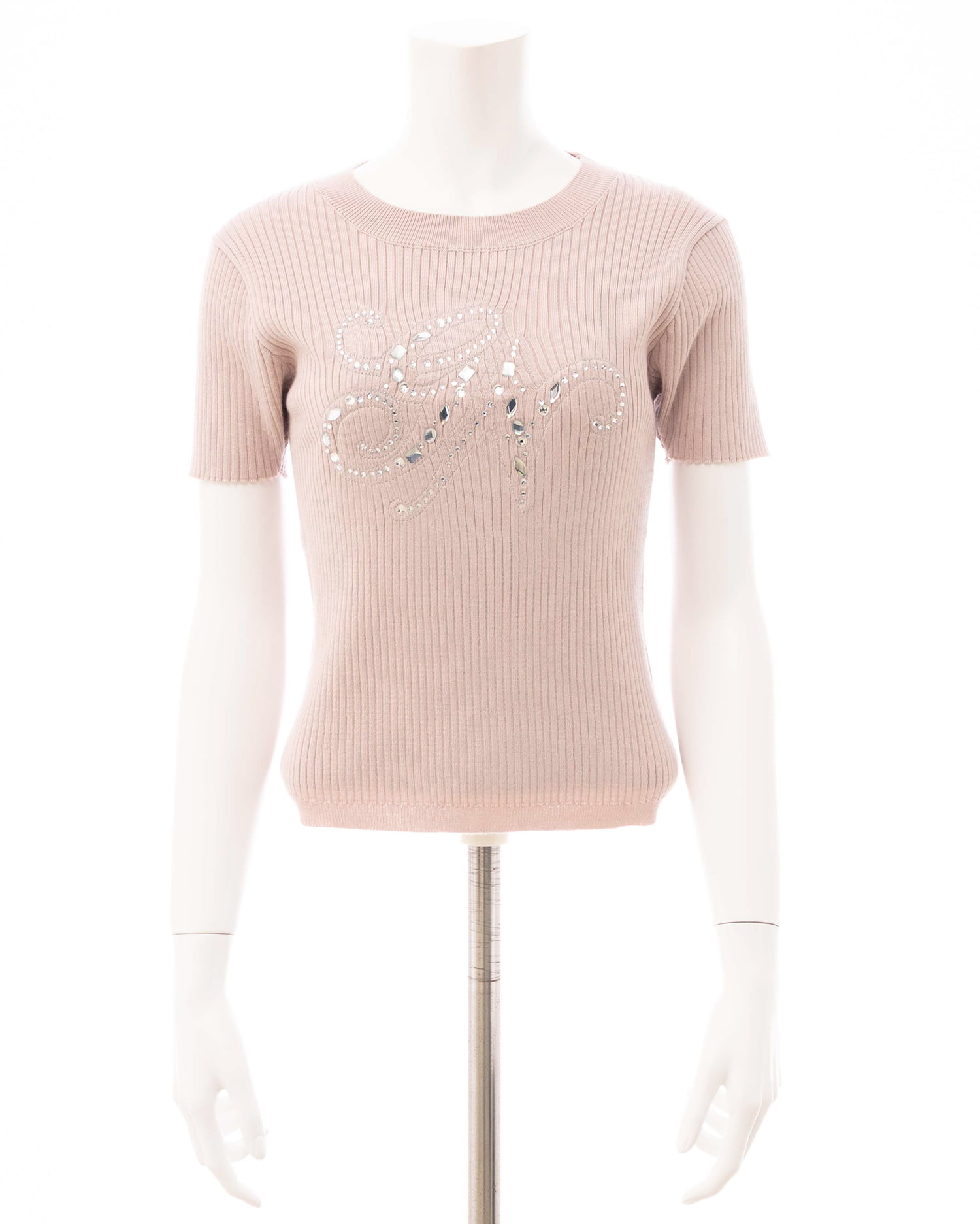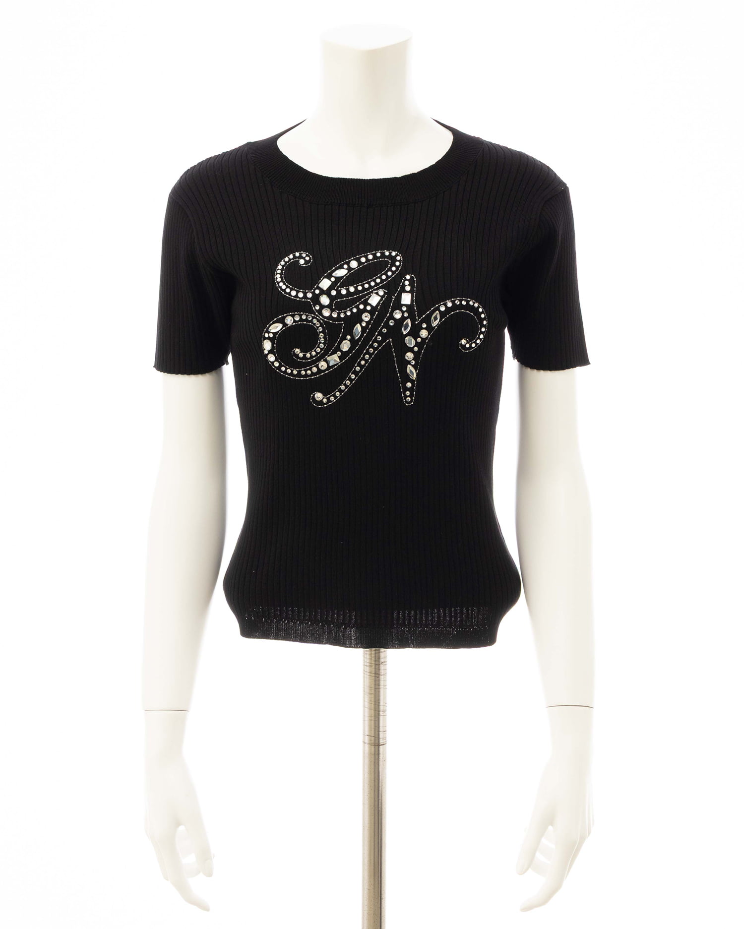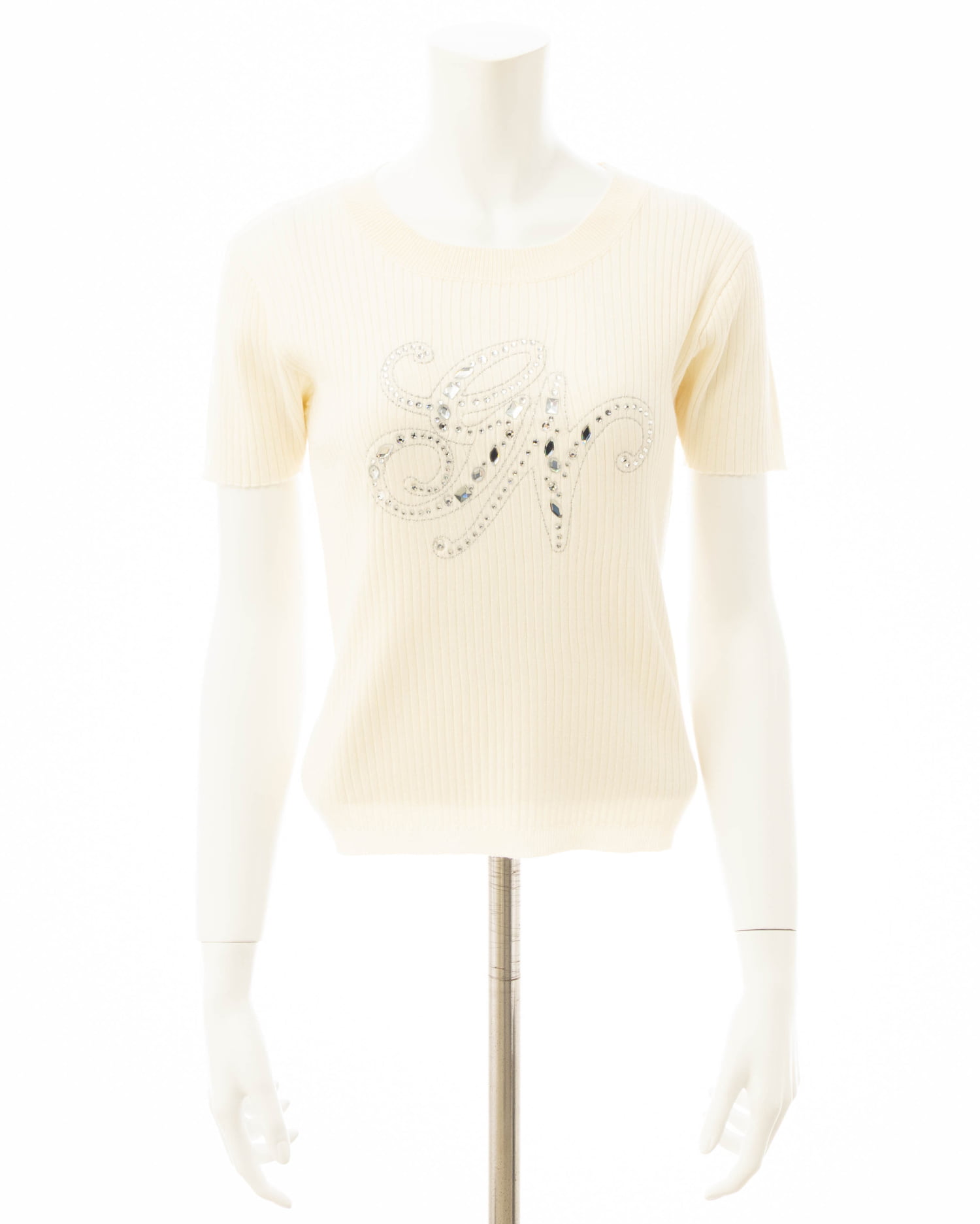 イニシャルビジューロゴ半袖リブニット