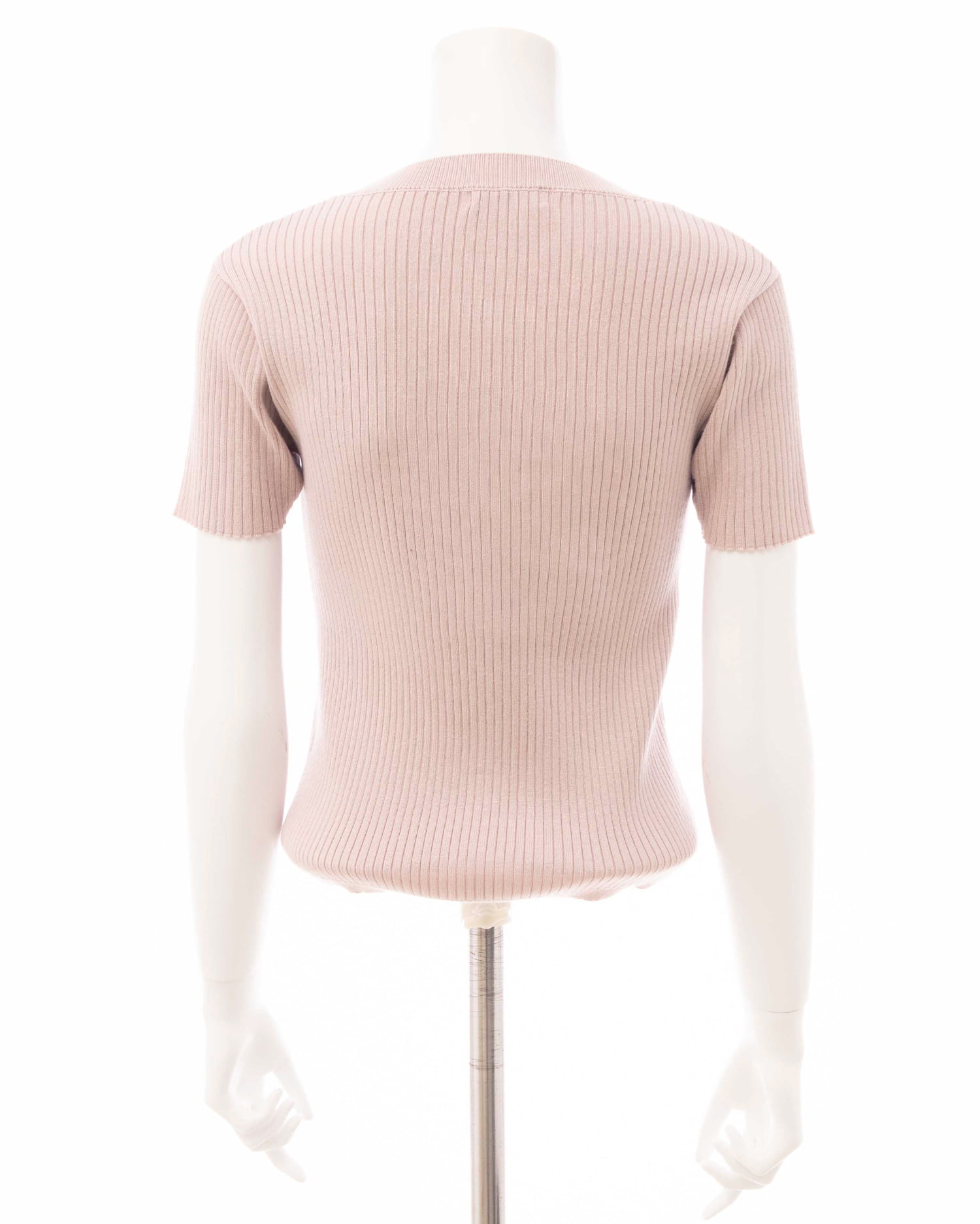 【フロントのビジューロゴがかわいすぎる♡半袖リブニットトップス】