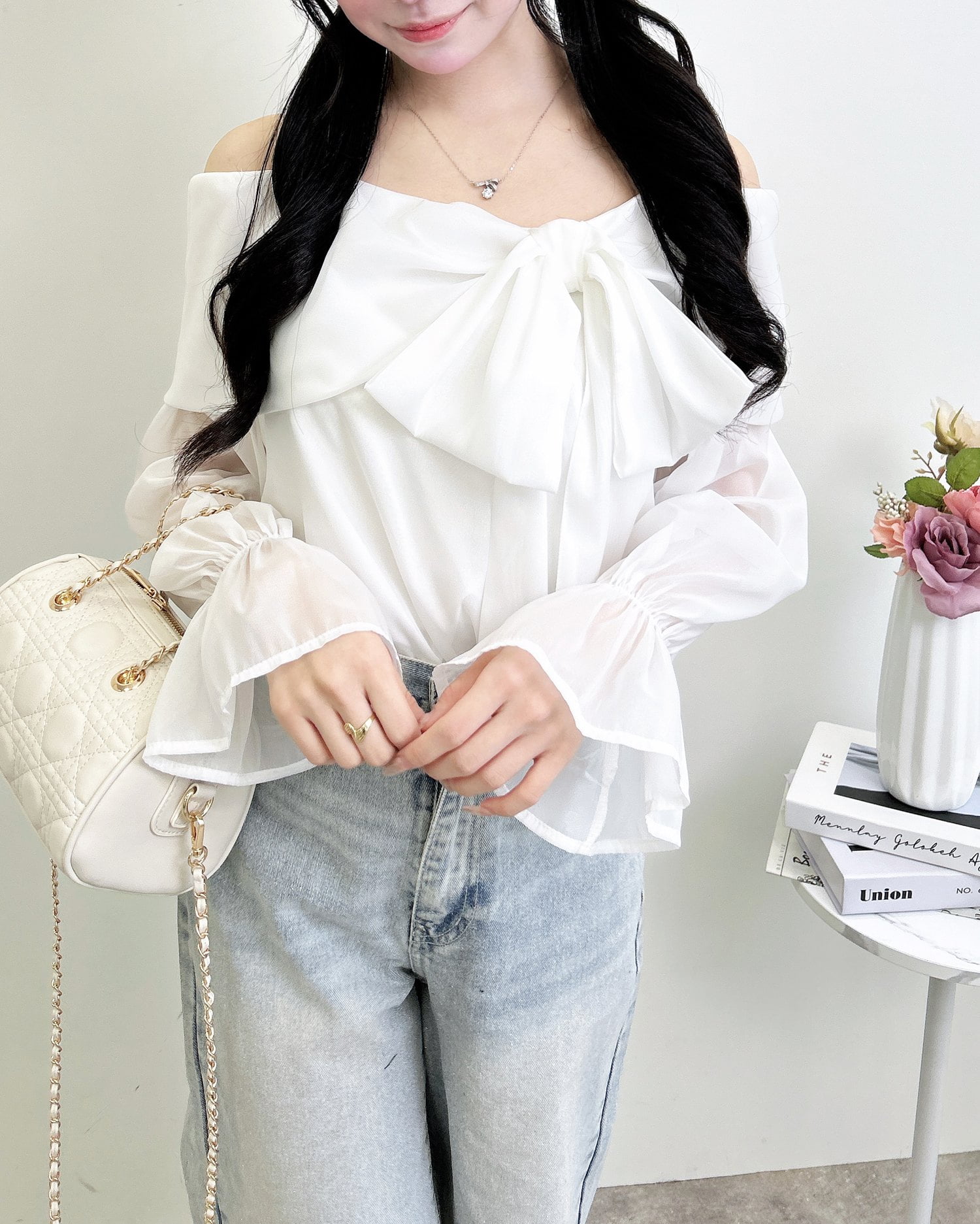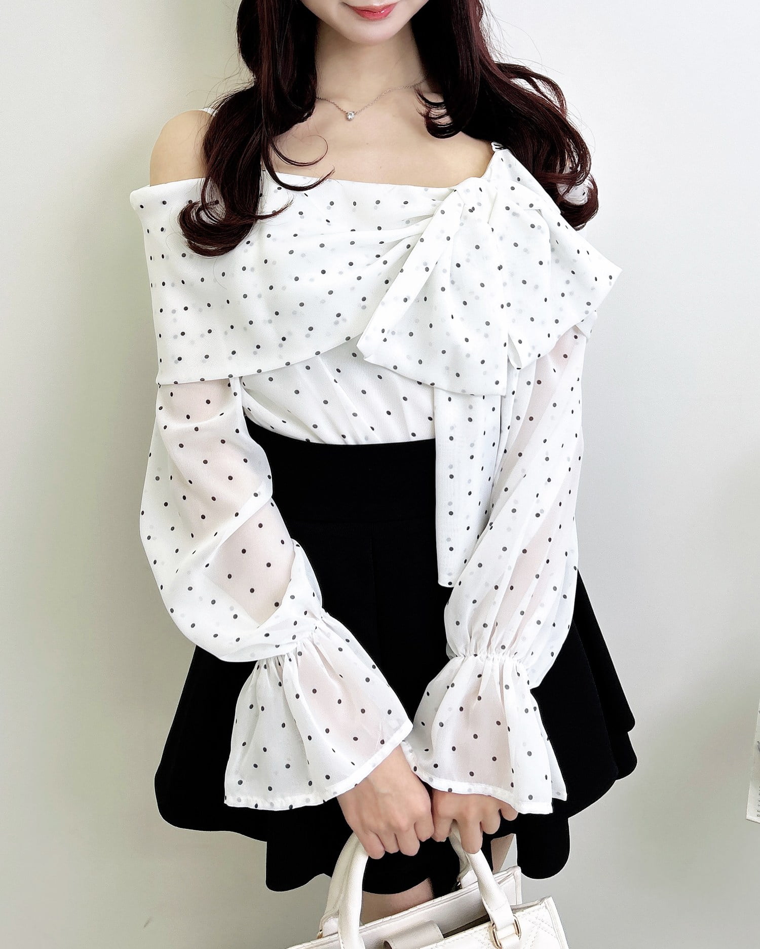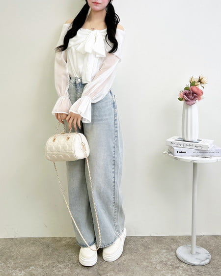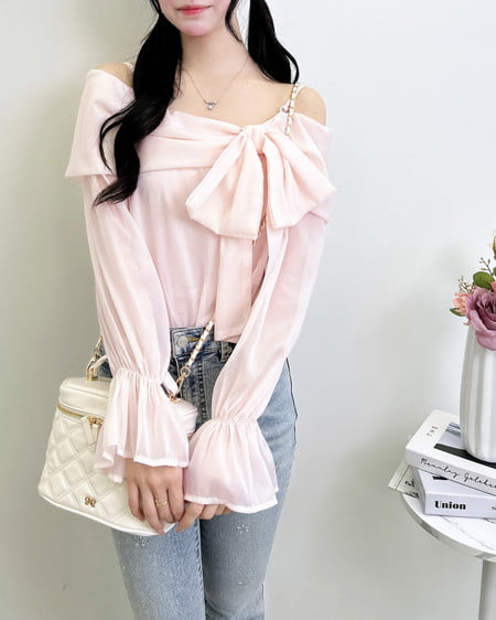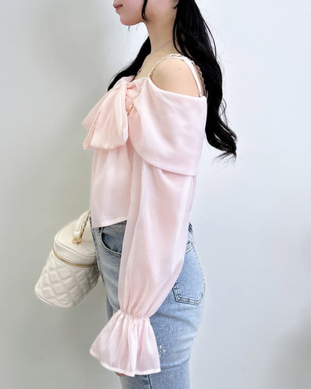 1999-200247 【WEB限定】シアーオフショルリボンブラウス