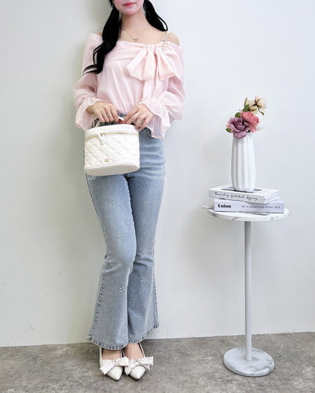 デニムを合わせたカジュアルフェミニンなコーデがおすすめ。