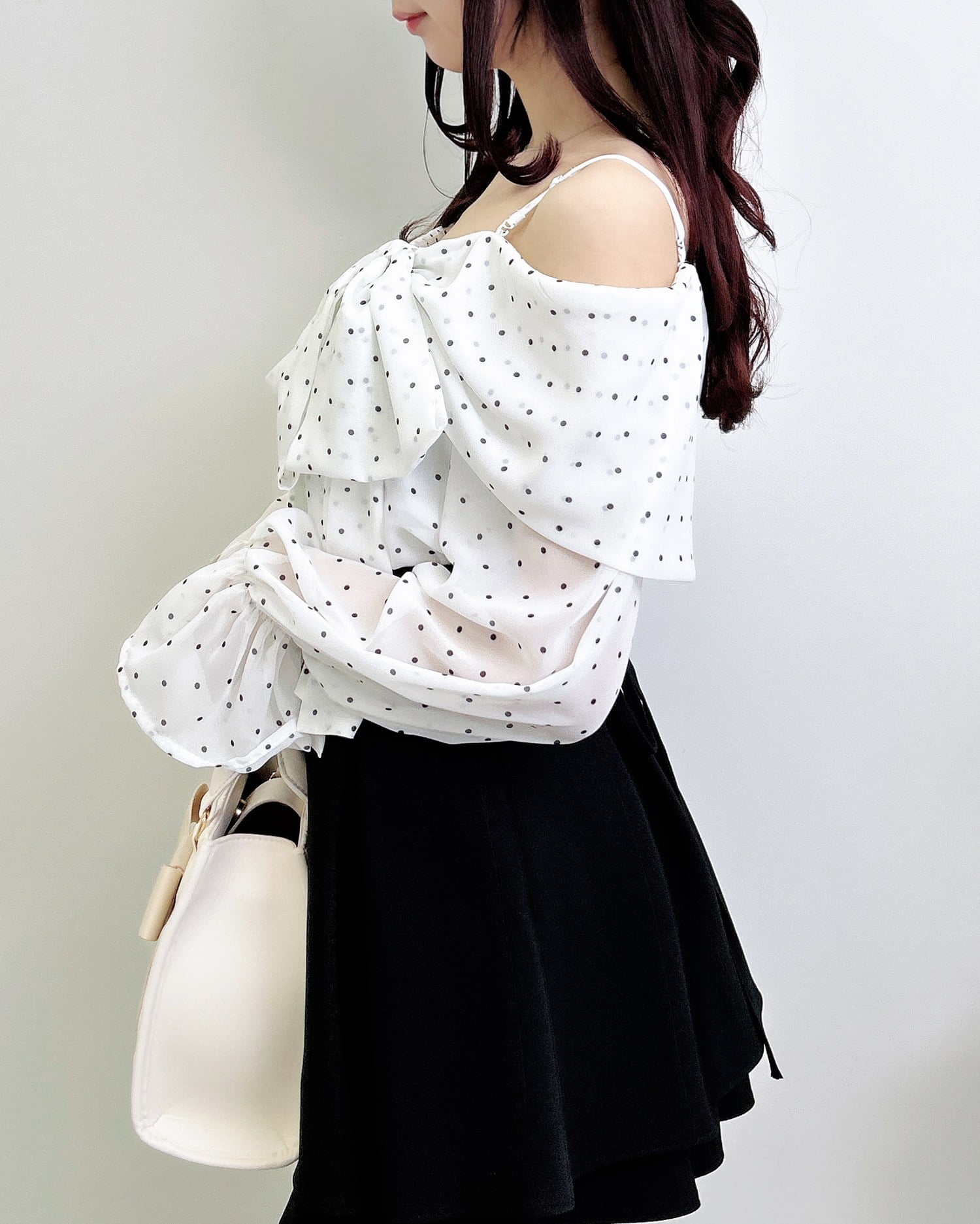• INGNI(イング) 【WEB限定】シアーオフショルリボンブラウス オフホワイト/ドット
