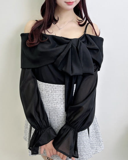 【WEB限定】シアーオフショルリボンブラウス