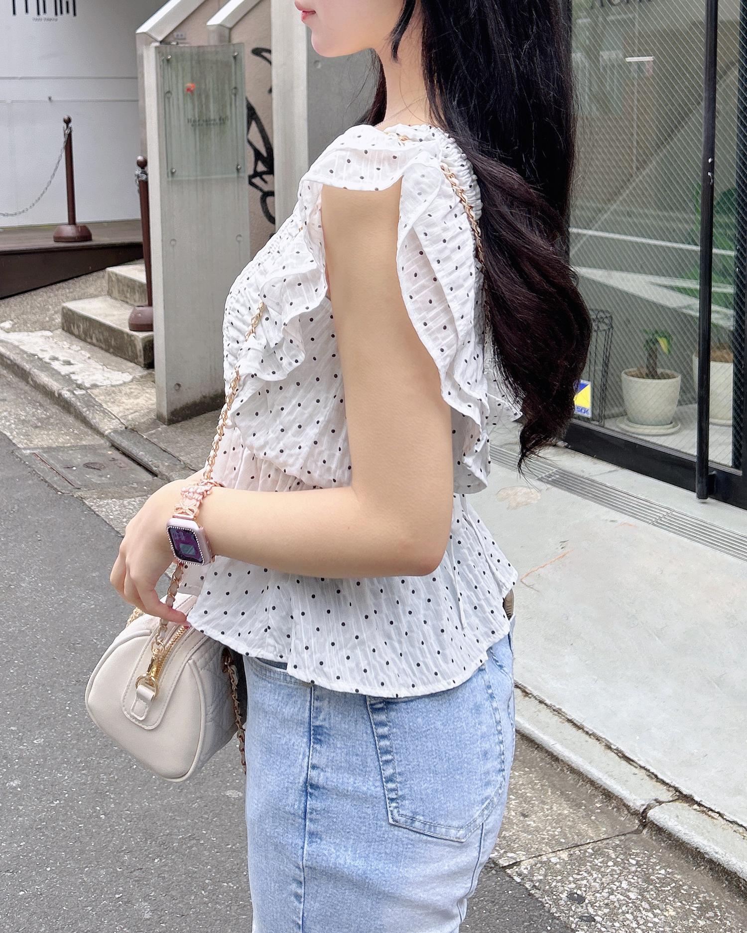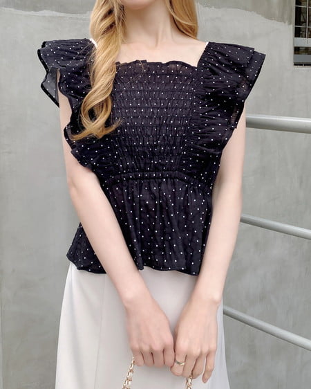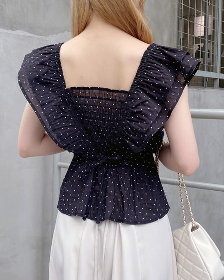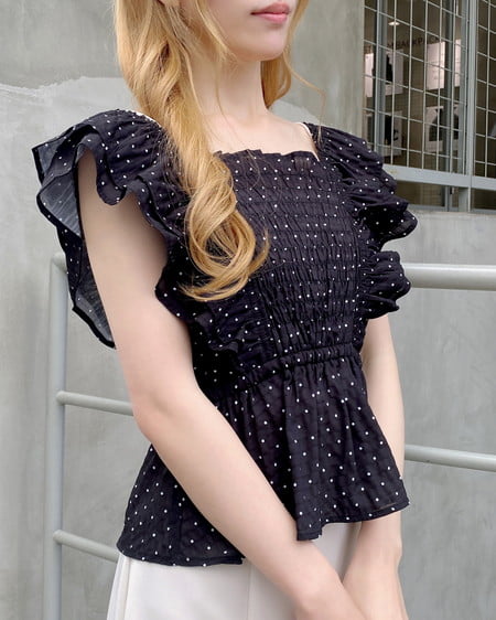 • INGNI(イング) 【WEB限定】フリルペプラムブラウス クロ/ドット