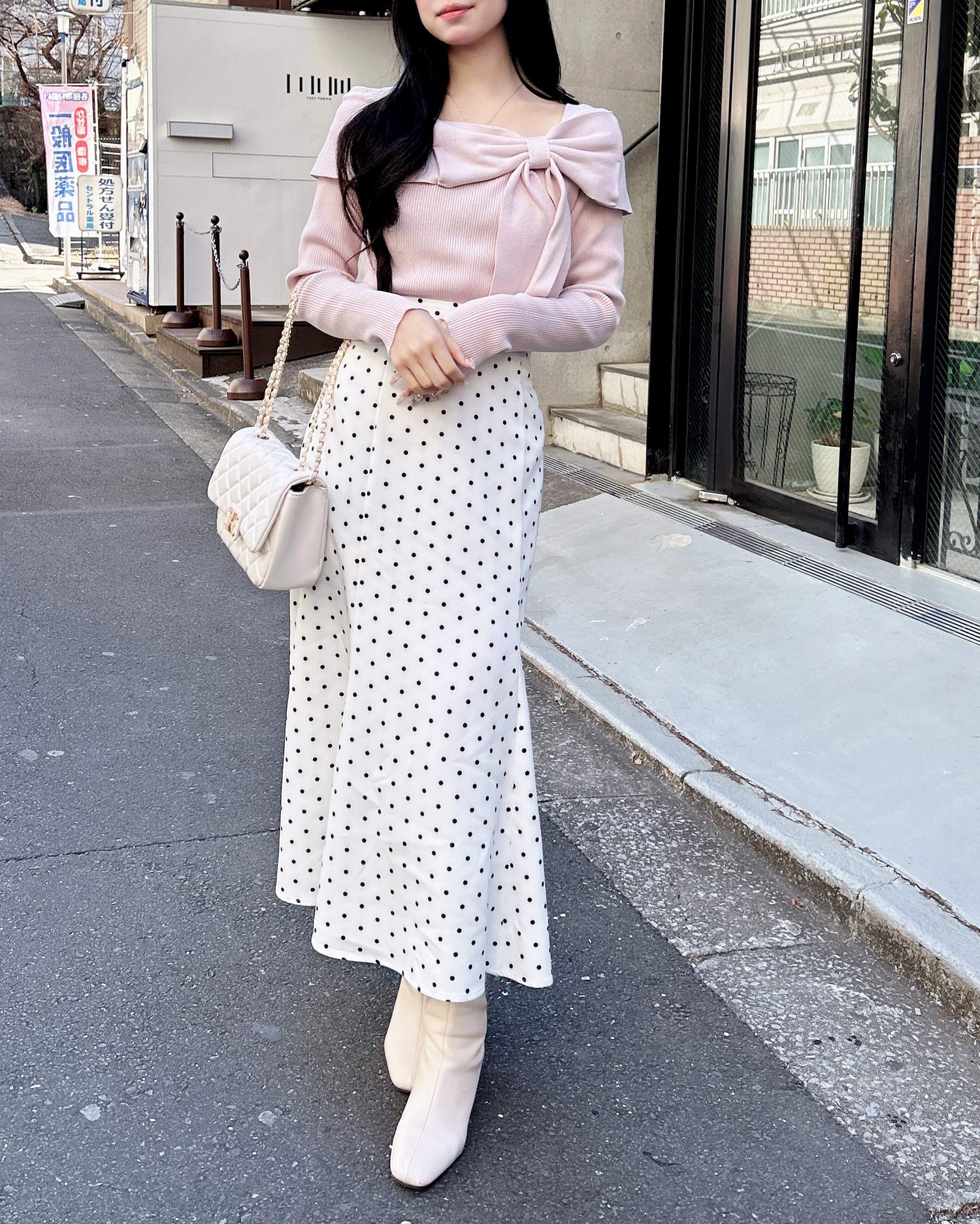 • INGNI(イング) 【2/4 2時までの限定価格】【WEB限定】バックレースアップマーメイドスカート オフクロ/ドット