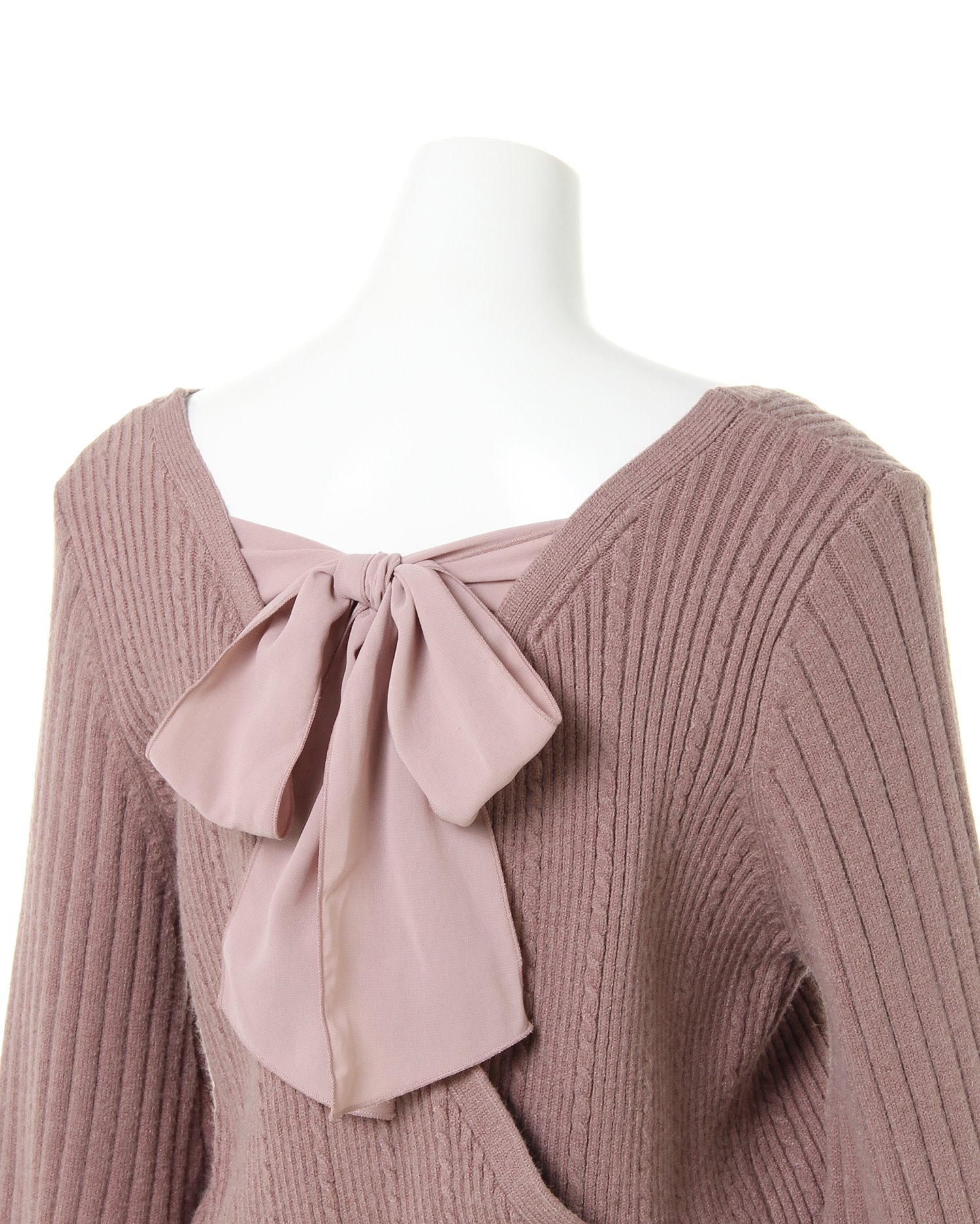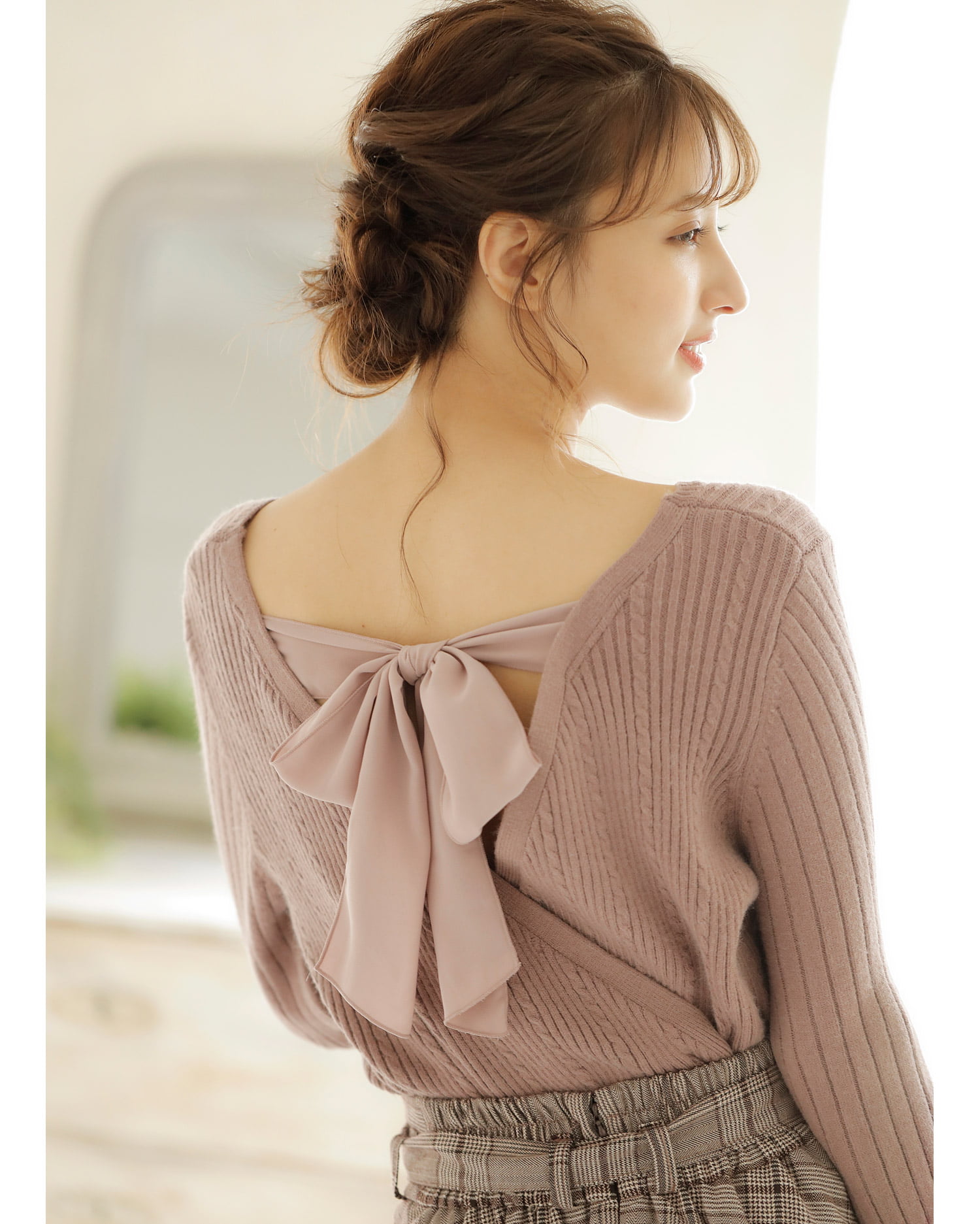 カシュクールデザインにリボンを組み合わせたバックスタイルも抜かりないニットトップス。ワンカラーながら身頃と袖部分の編み方に変化を付けたことで表情豊かなスタイルを演出します。ベーシックなシルエットで合わせやすくきちんと感もあるのでオンオフ問わず着回せる優秀な1枚。伸びのいい柔らかなニット素材で肌馴染みも良く快適な着心地です。程よい丈感はトップスのアウトスタイルにも便利。