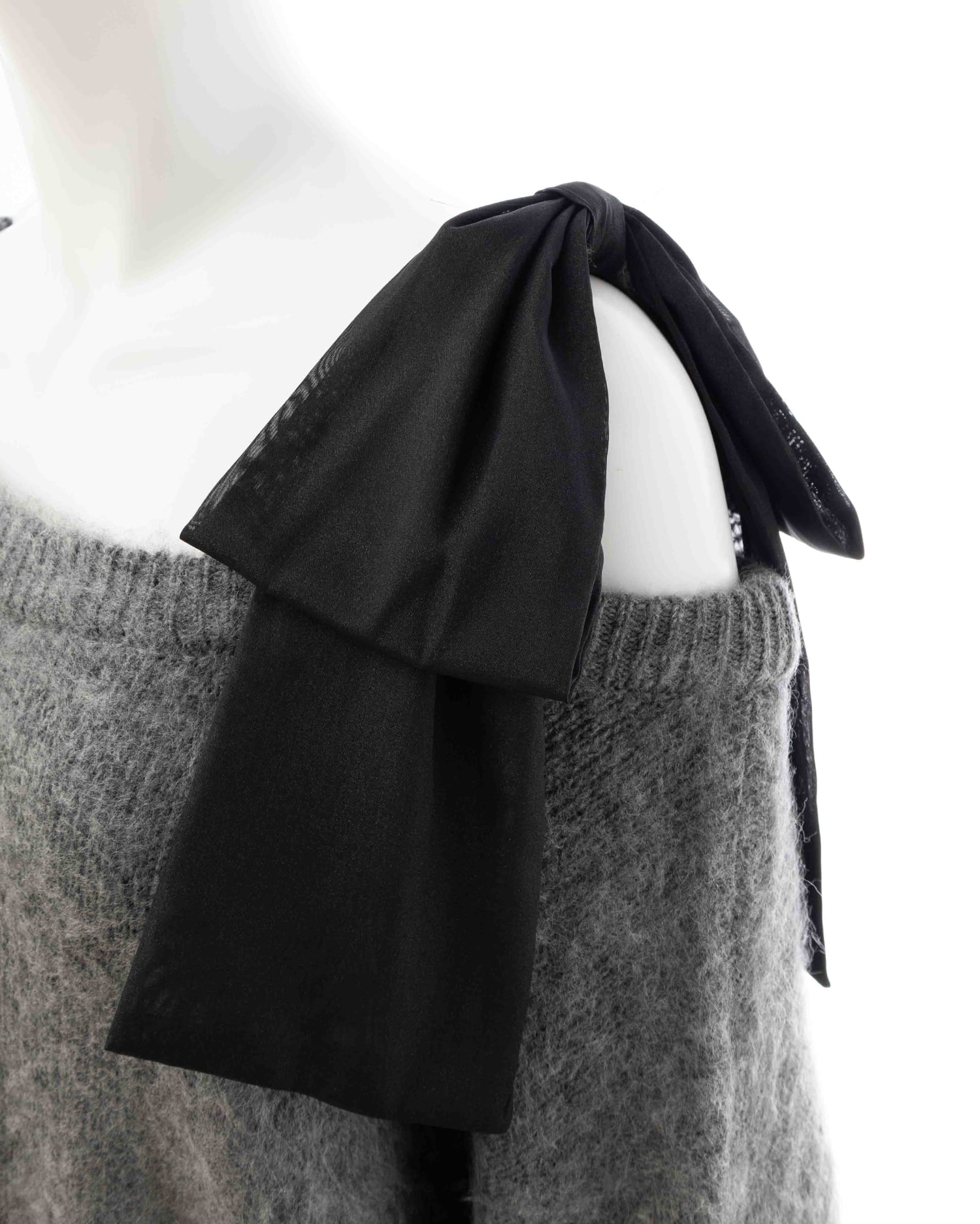 • INGNI(イング) 肩リボンワンショルシャギーチュニックニット チャコールグレー/クロ