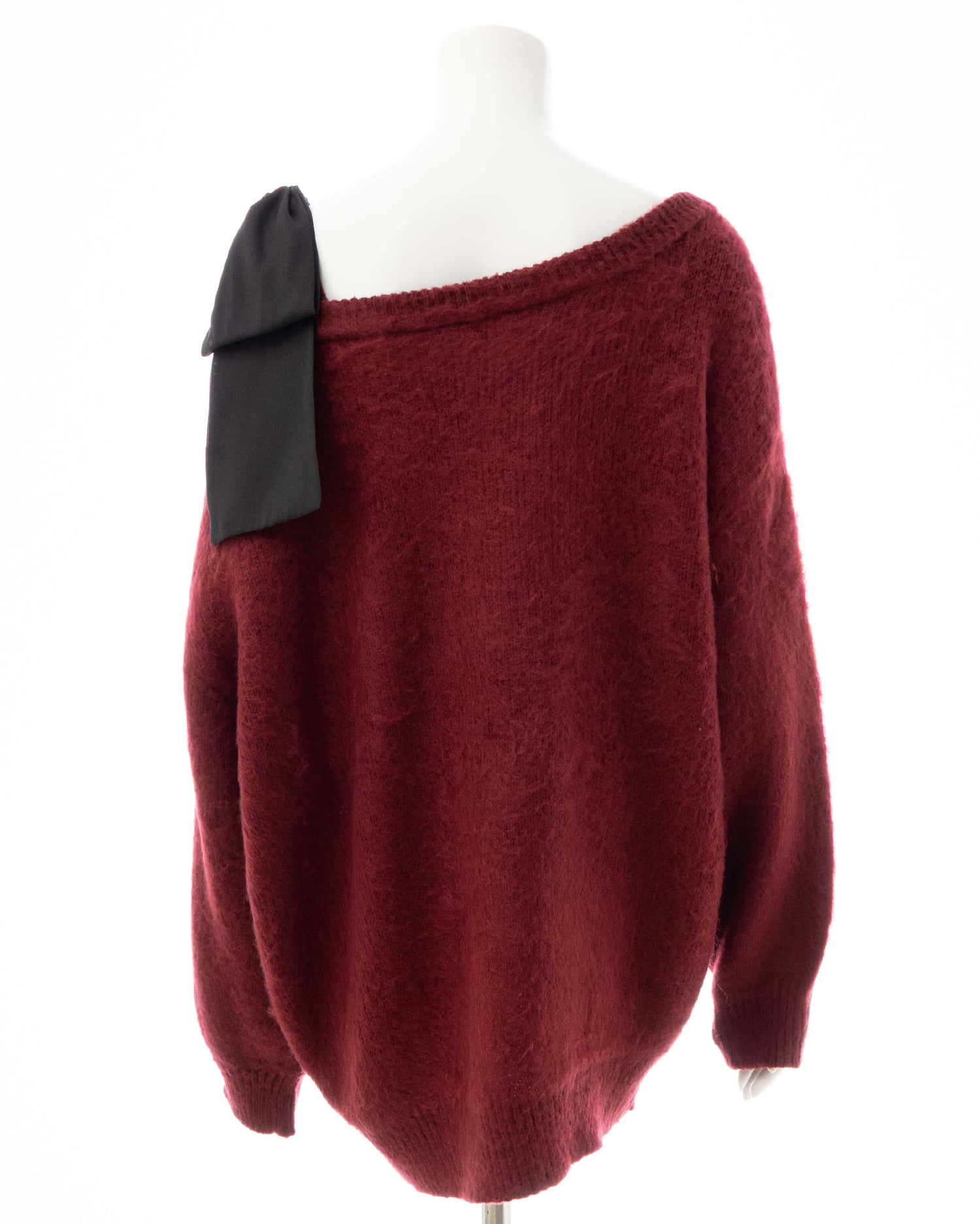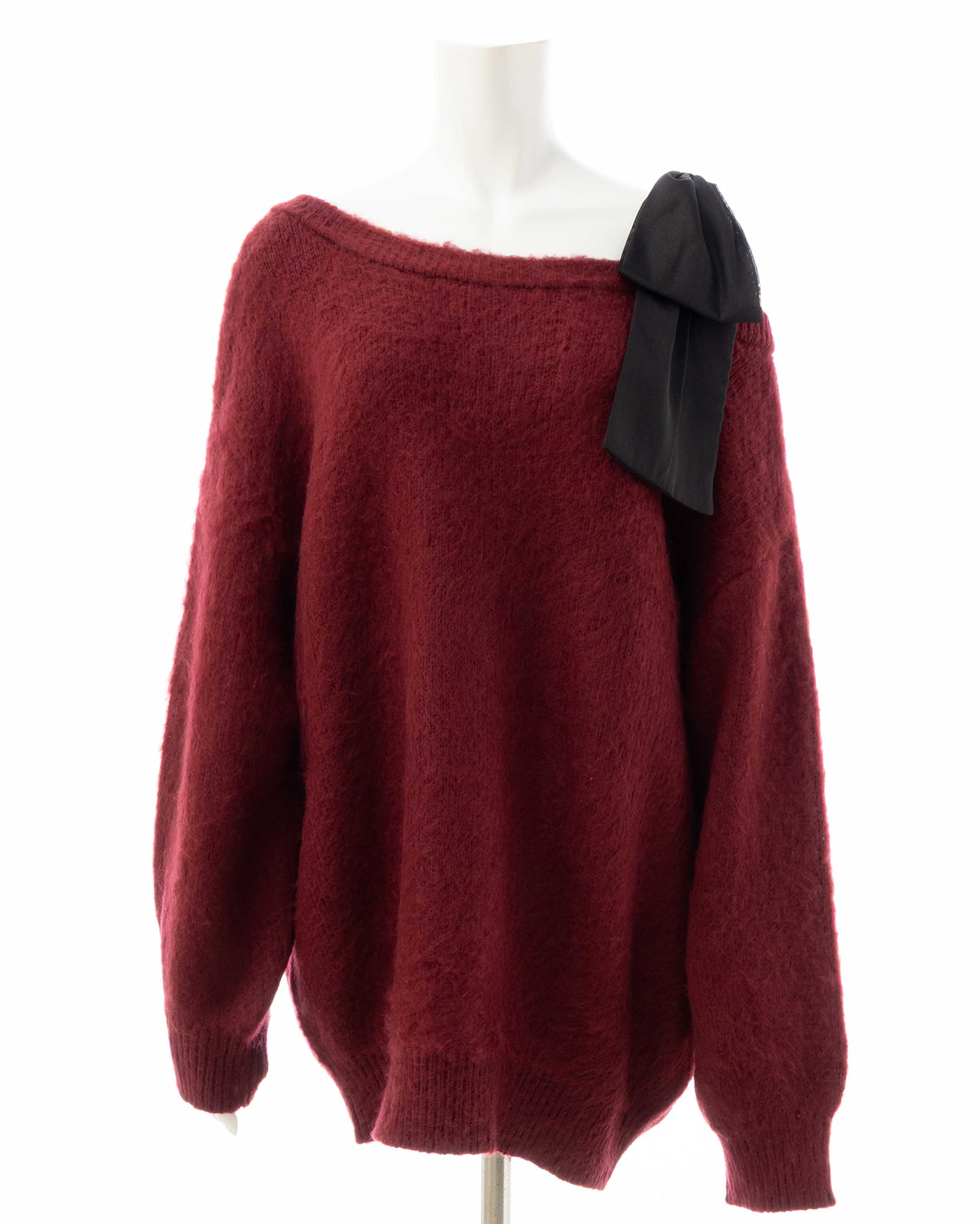 • INGNI(イング) 肩リボンワンショルシャギーチュニックニット ボルドー/クロ