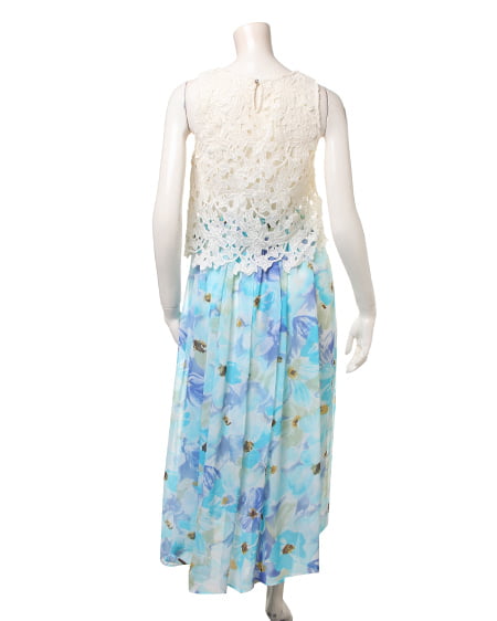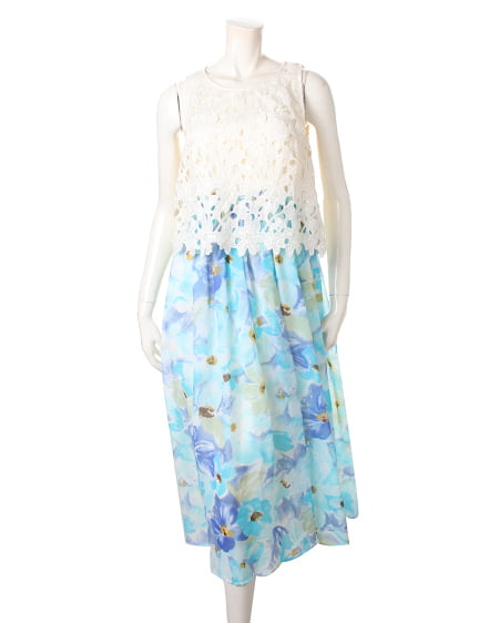 【1151-580659 レースx花柄ドッキング/ワンピース】