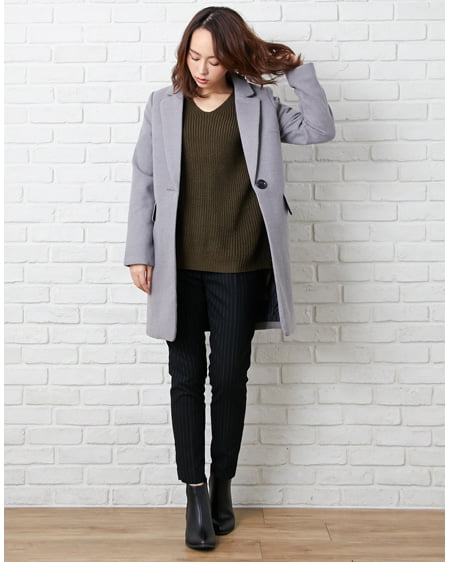 コートはコクーン型でゆったりしすぎず綺麗めラインをキープしています。ワイドパンツやガウチョパンツを合わせてメンズライクに着こなしたり、ワンピースで愛らしく仕上げても◎。厚みがあり暖かさも期待できるのでこれからの季節に最適。人気のチェスターコートは1つ手に入れたいアイテム。