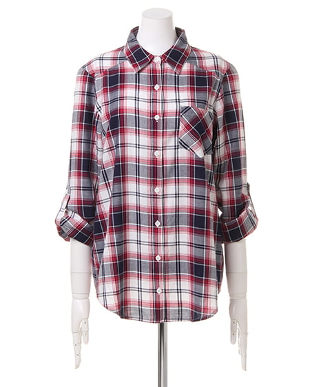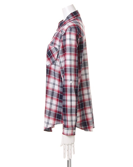 ベーシックなデザインのチェックシャツとプリントロゴに小ぶりのビジューを施したTシャツのSET☆薄手で爽やかな着心地のシャツは、アウトドアが楽しくなるこれからのシーズンを盛り上げてくれるアイテム。袖はロールアップが可能なボタン付きでキレイにまとめられます。Tシャツはサイド裾のスリット、前後差ヘムなど、さりげなく凝ったディテールがポイント。柔らかな薄手素材で肌触りも良く、着心地も抜群です。大人シンプルなコーディネートには欠かせない1枚です。