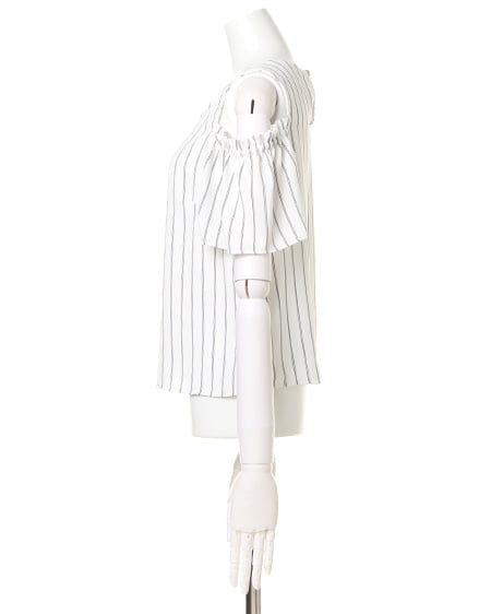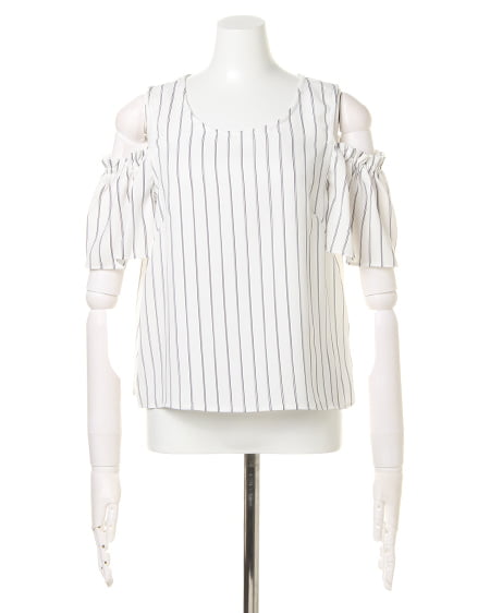 【1171-132735 マルチストライプ肩開き/TOPS】