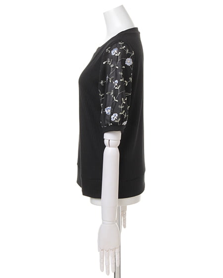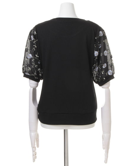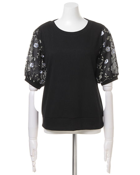 【1171-132723 袖チュール刺繍/リブトップス】