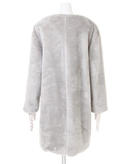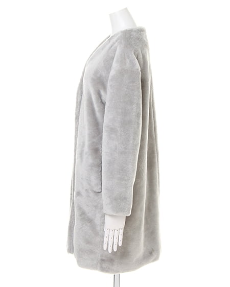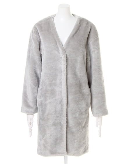 ノーカラーフェイクファーコートと総針リブVネックニットのSET☆