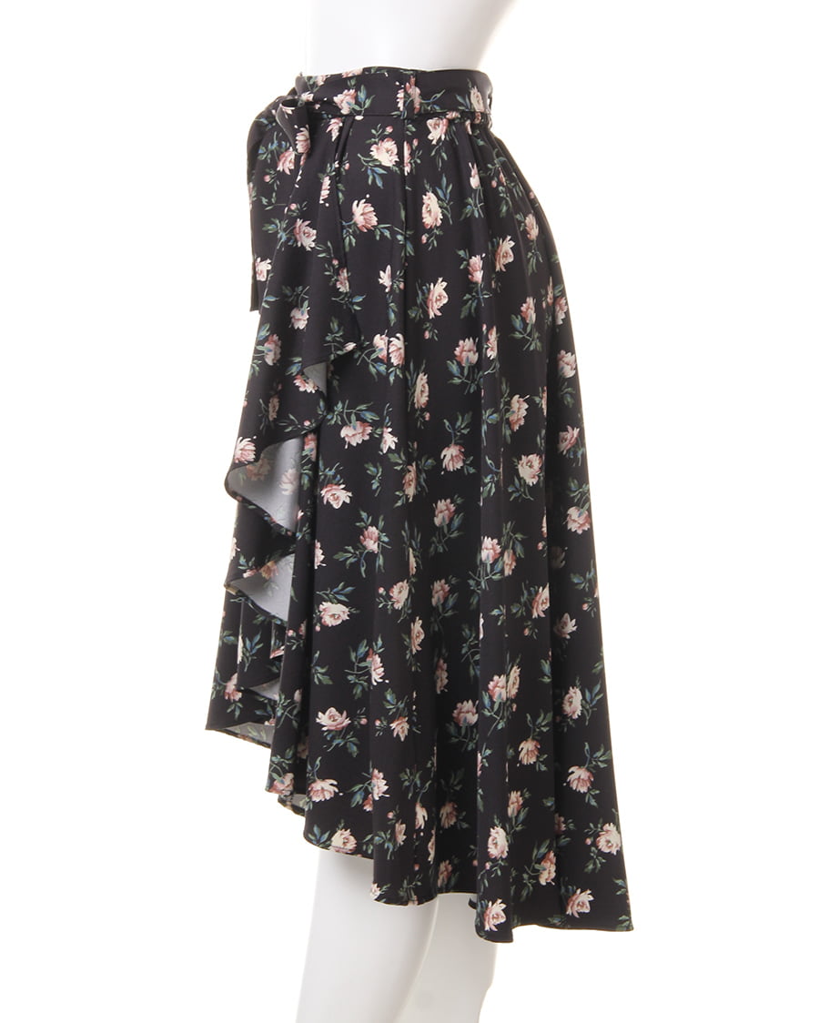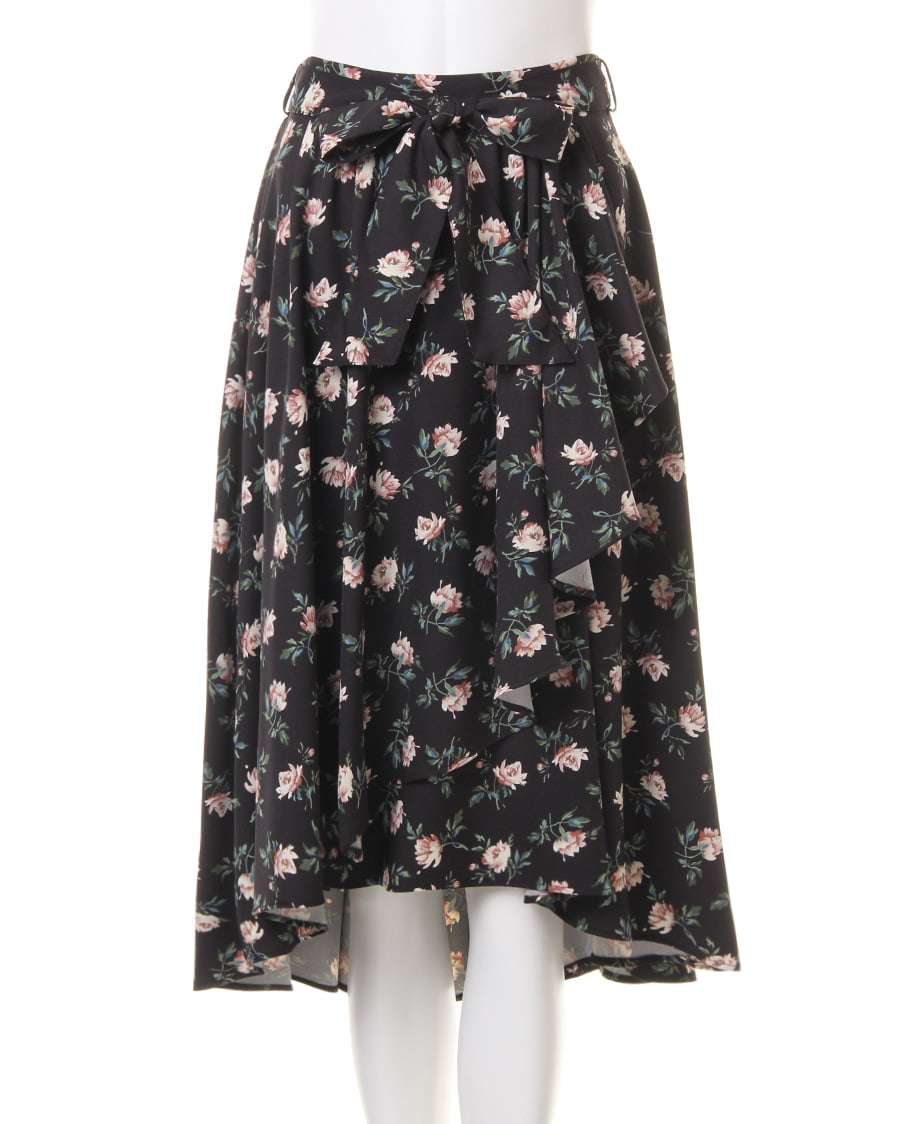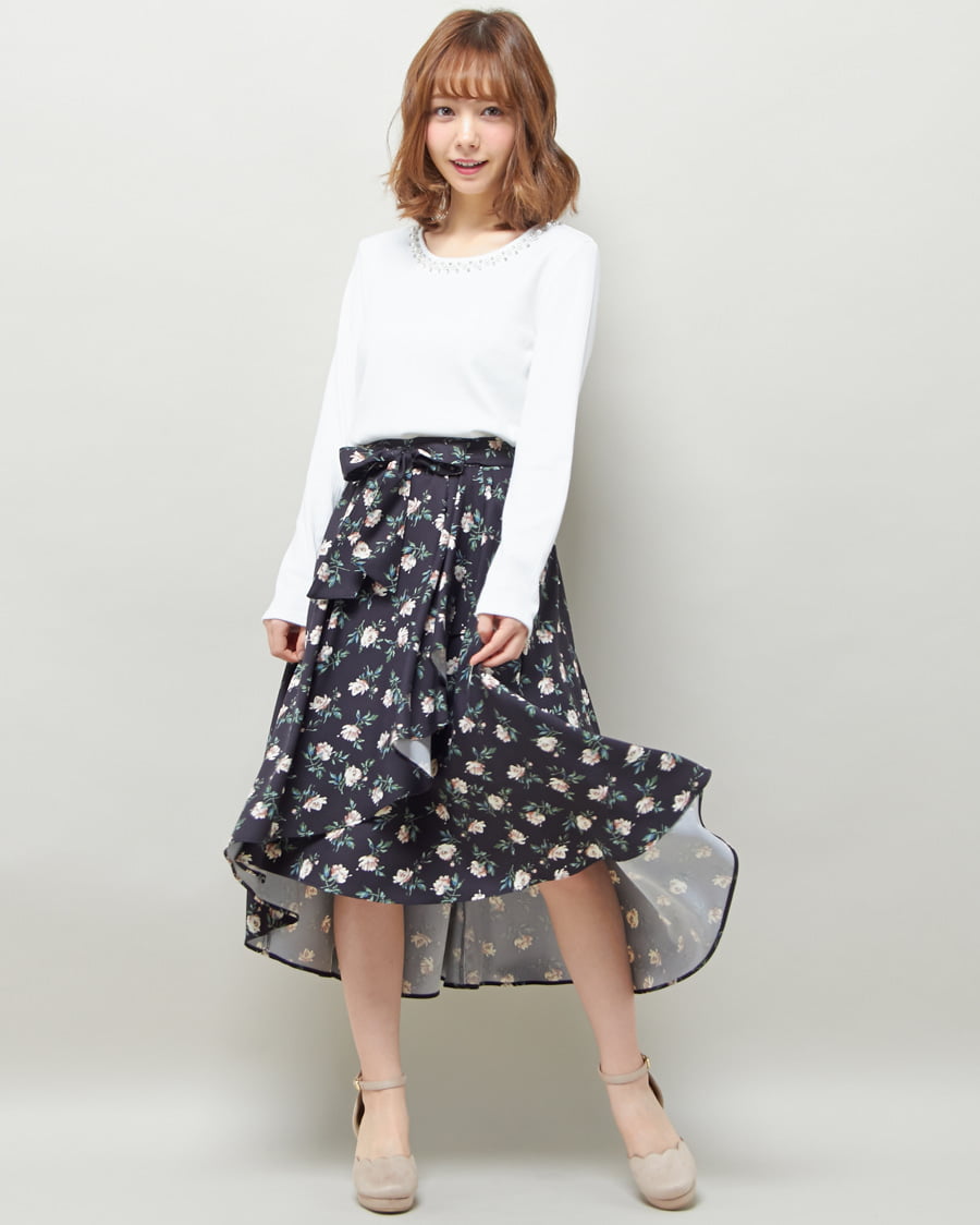 リブ装飾クルーネックと花柄ラップイレヘムスカートのSET☆