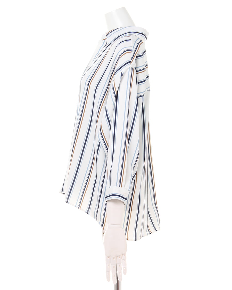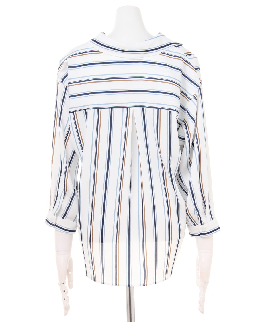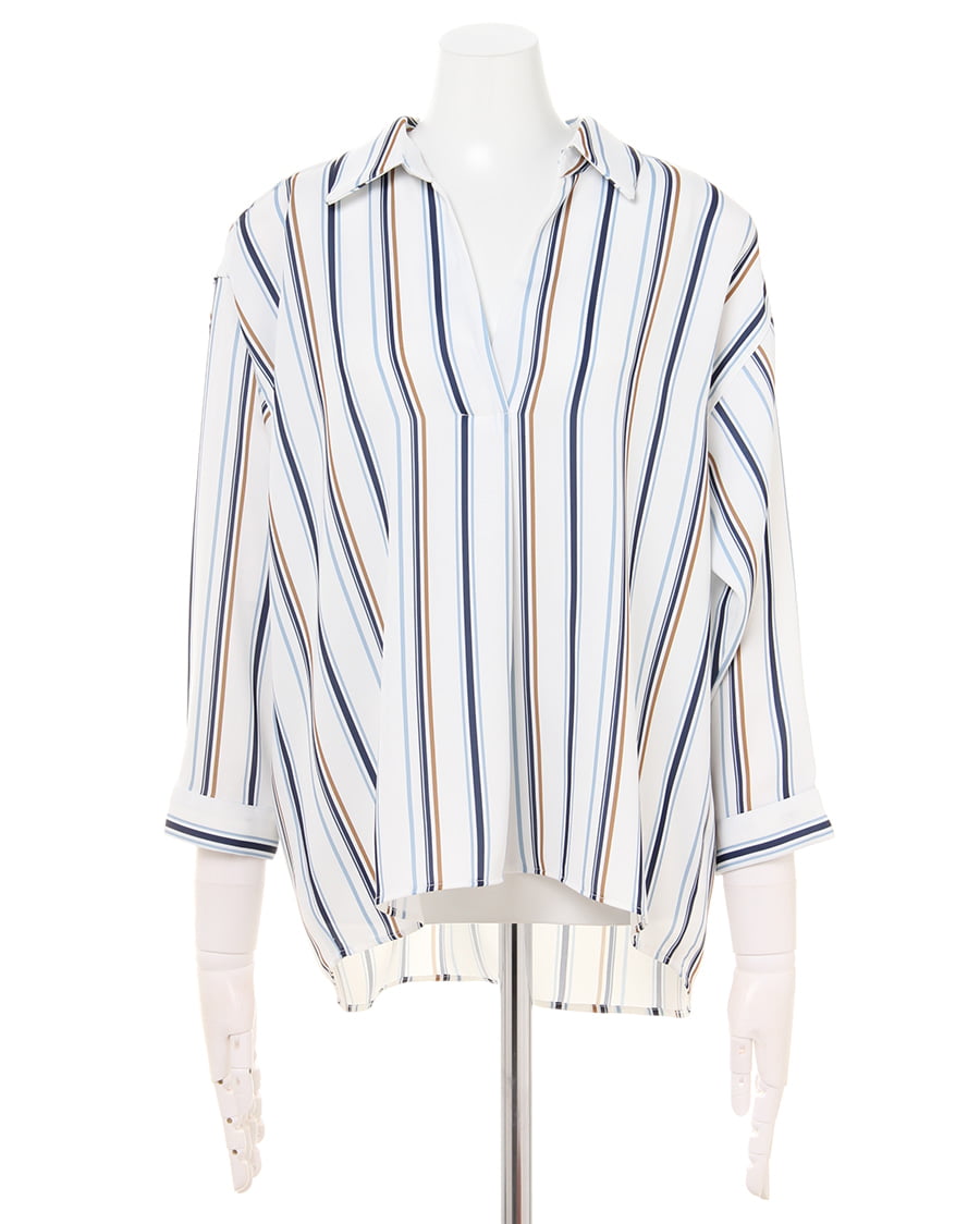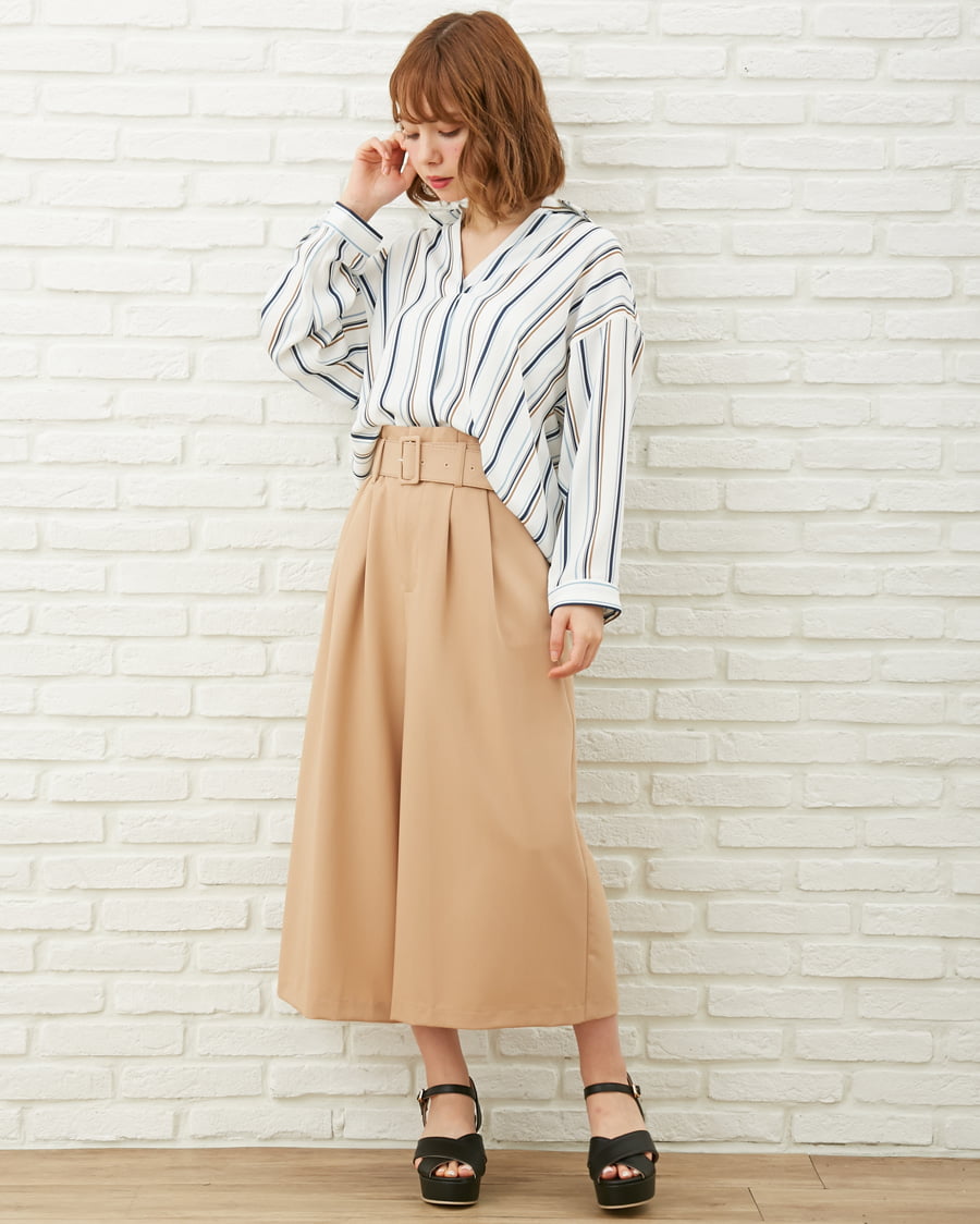 マルチストライプ柄スキッパー7分袖シャツとベルト付ツイルガウチョパンツのSET☆
