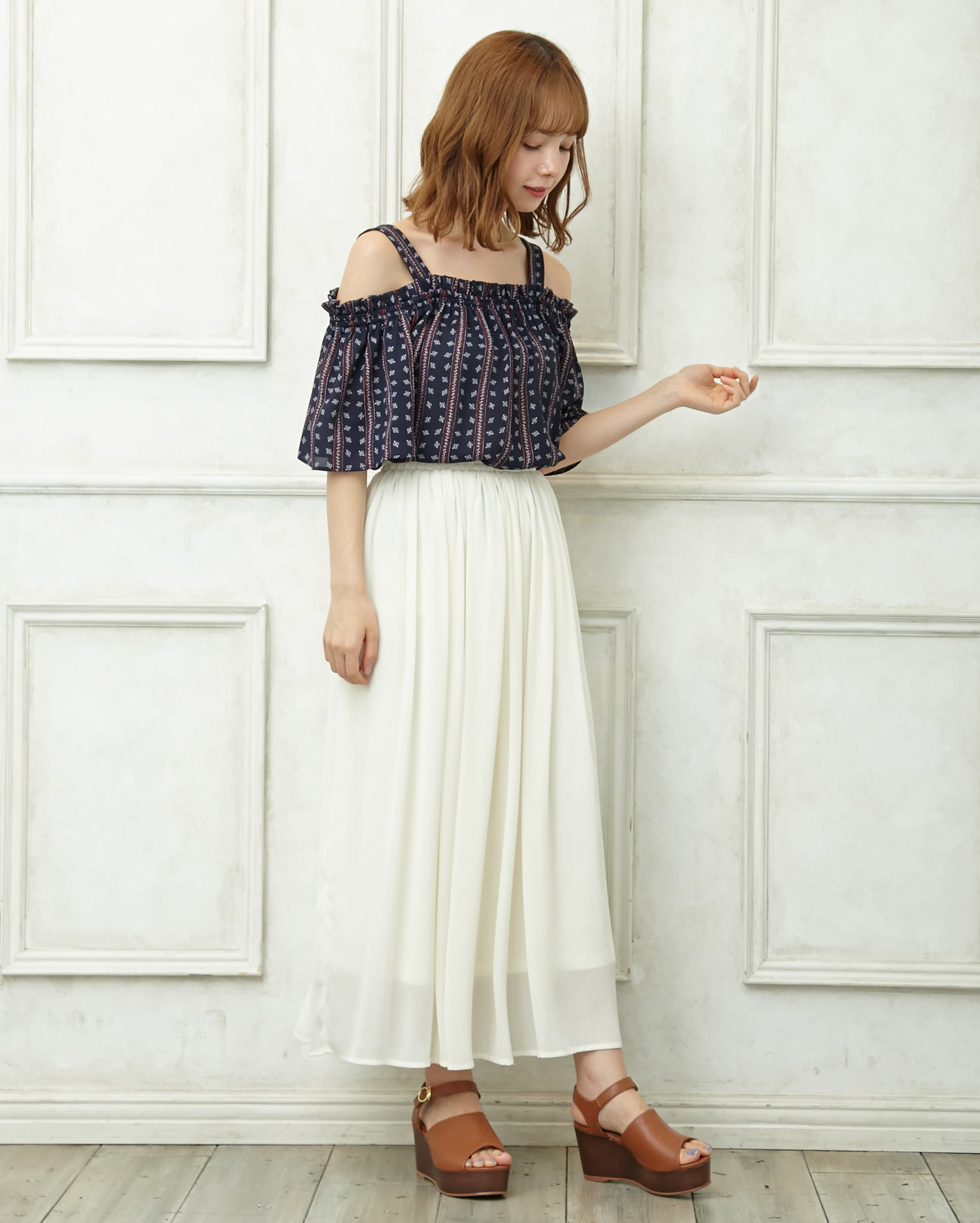 エスニック柄/オフショルとシフォン楊柳/ロングスカートのSET☆