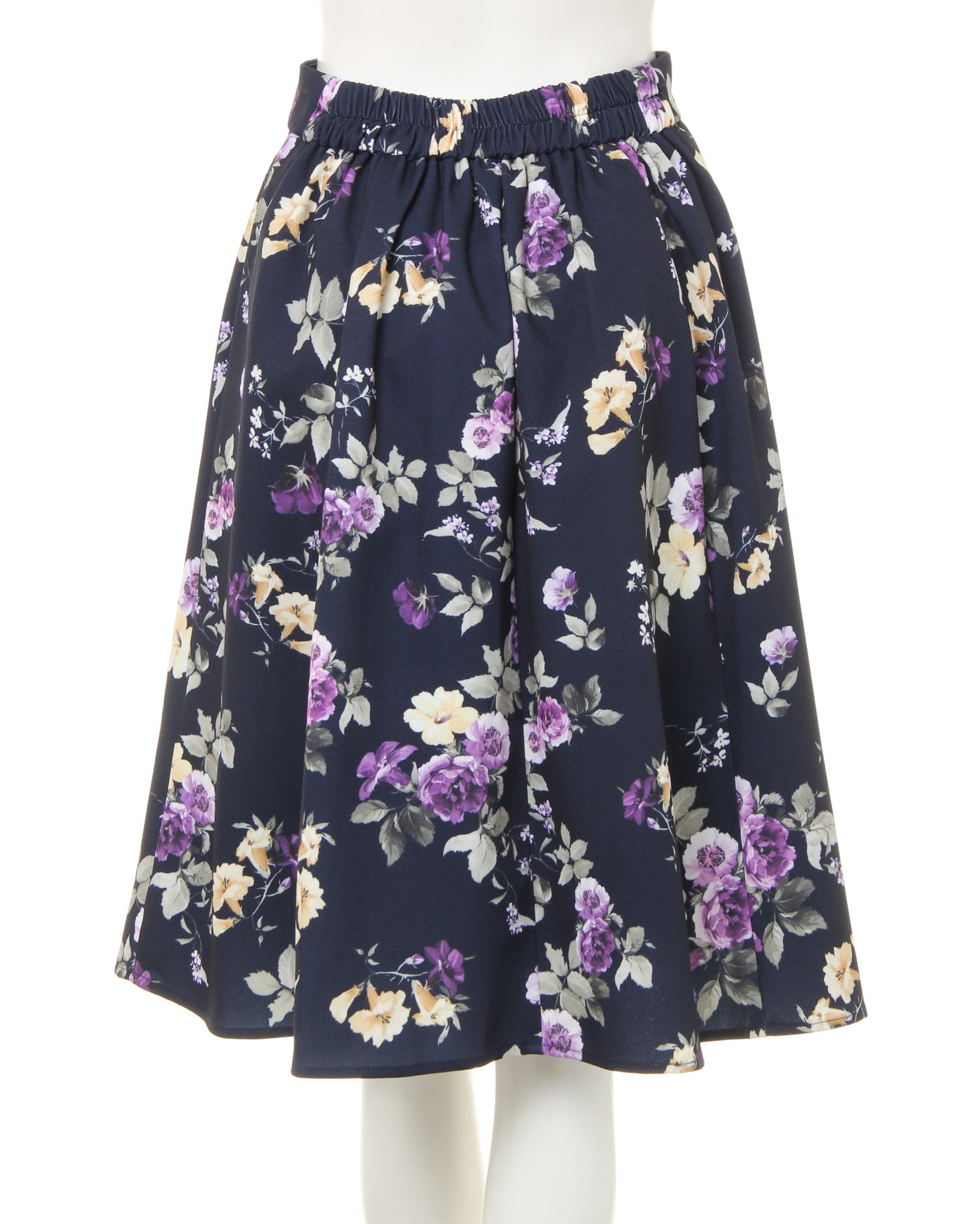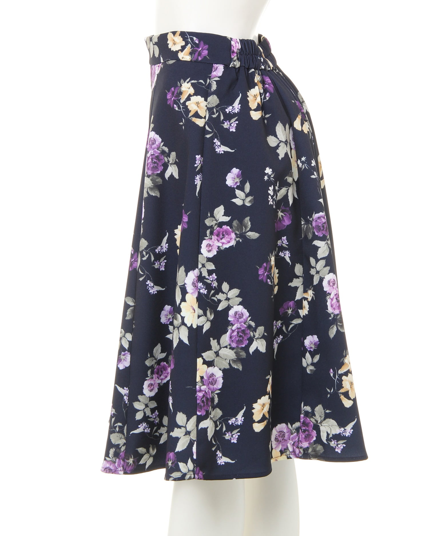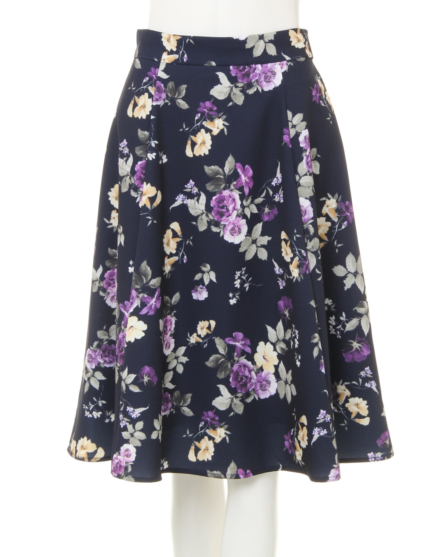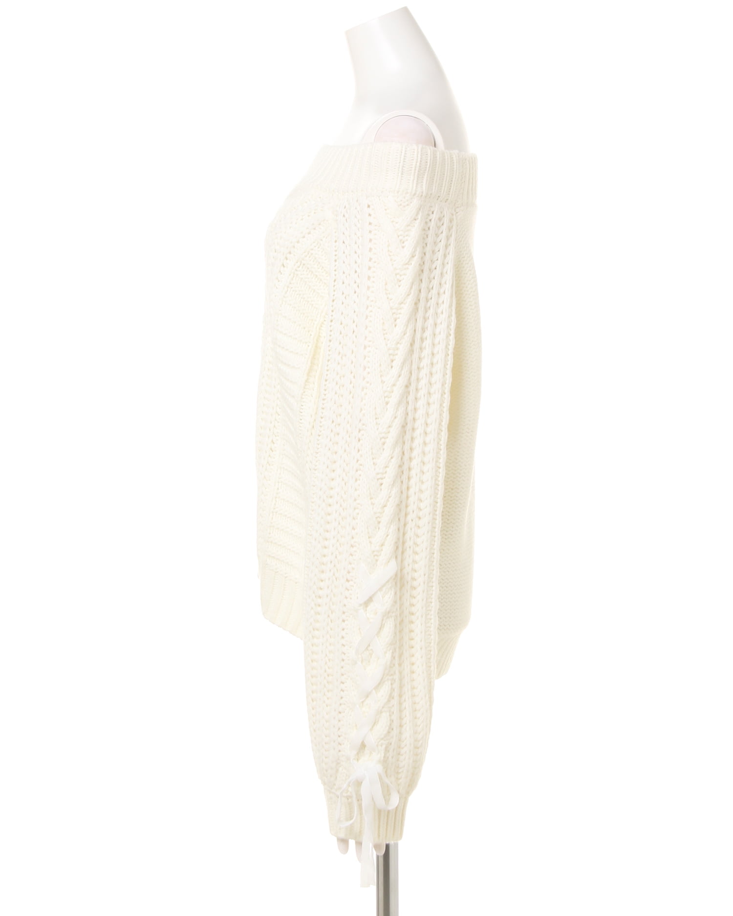 ベロアレースアップ袖オフショルニットと花柄ミディスカートのSET☆