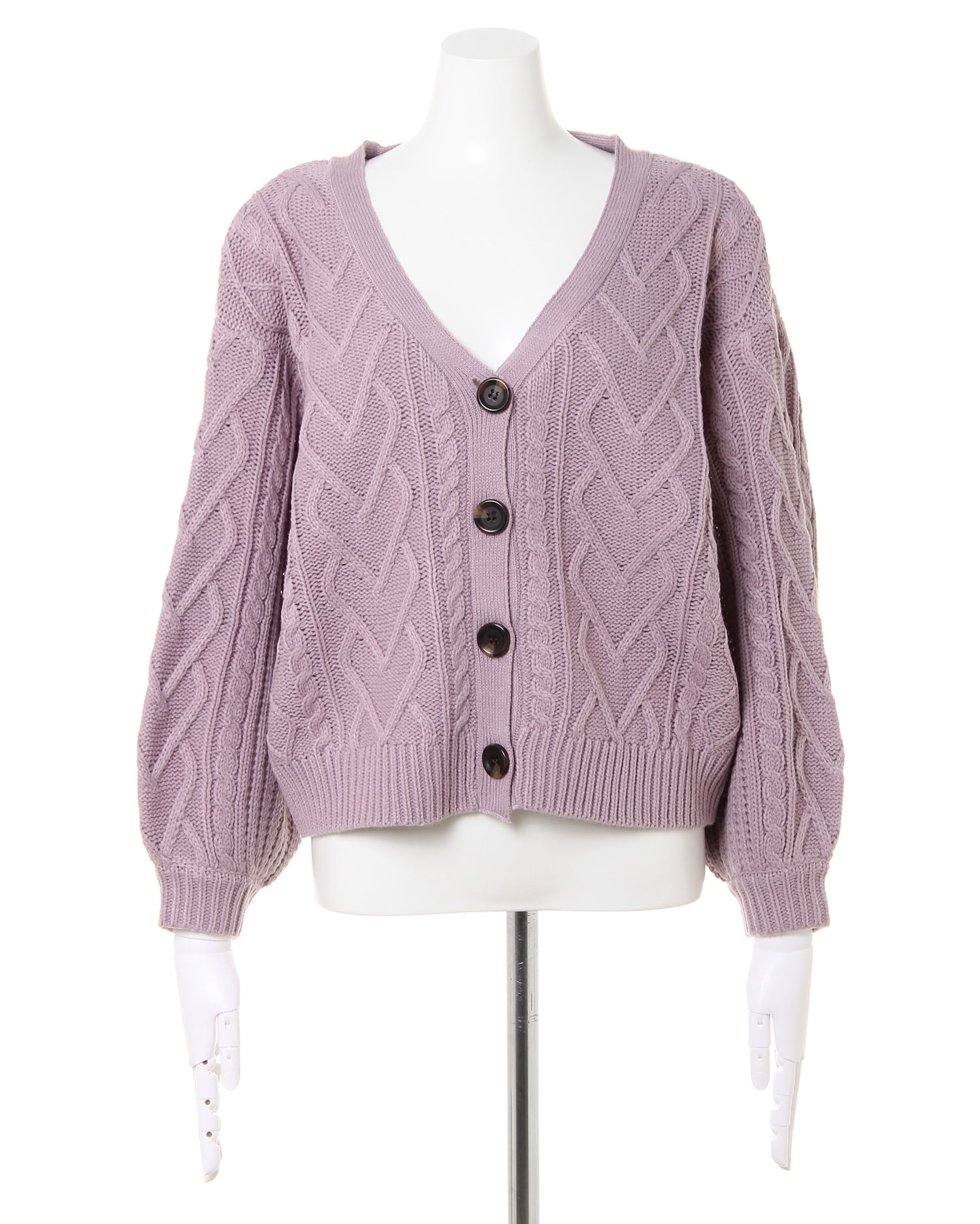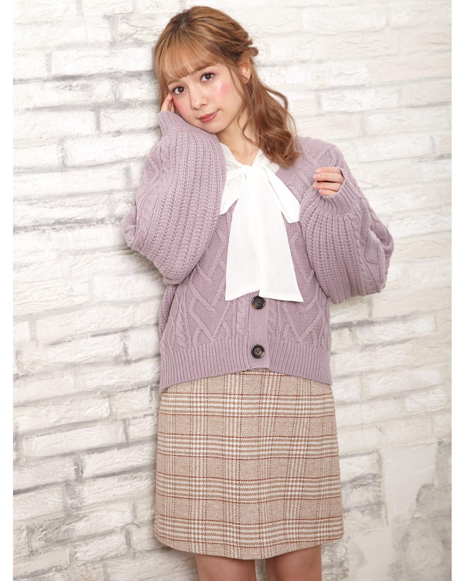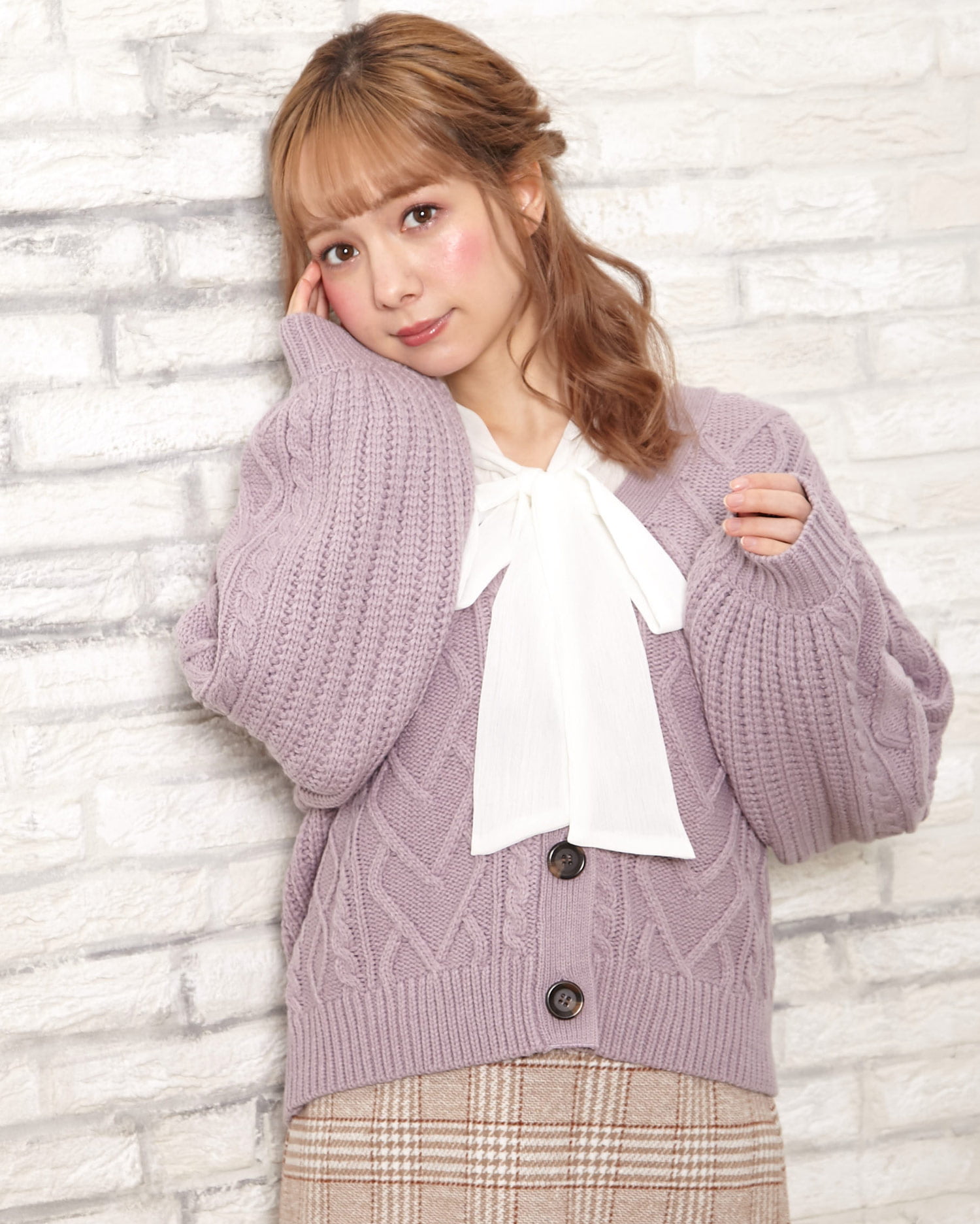 ケーブル/ショートカーディガンとボウタイ楊柳シアー/ブラウスのSET☆