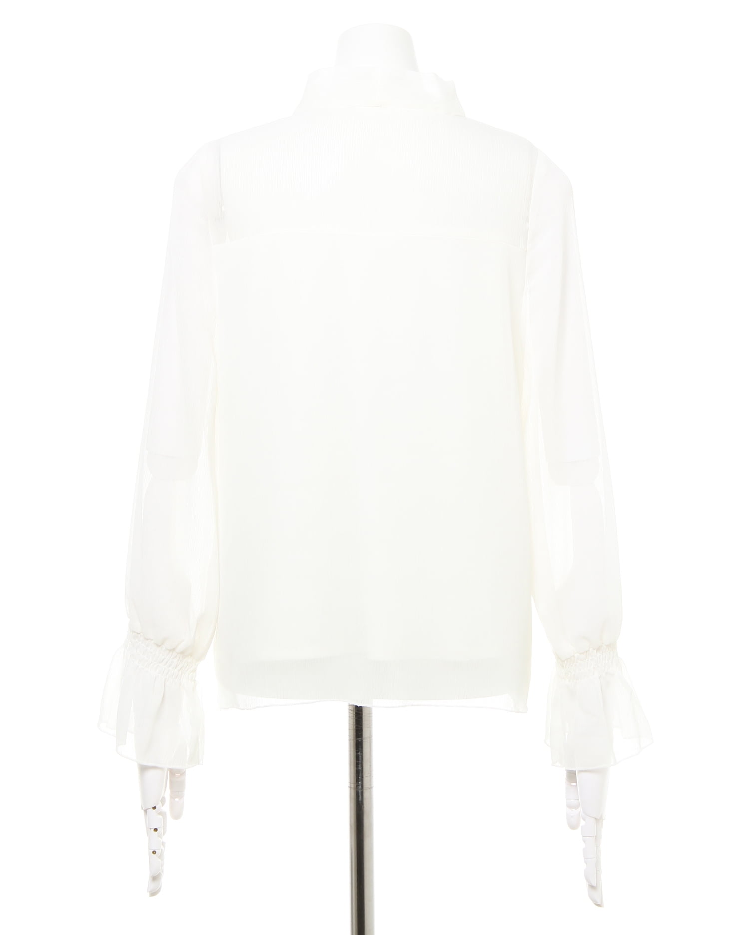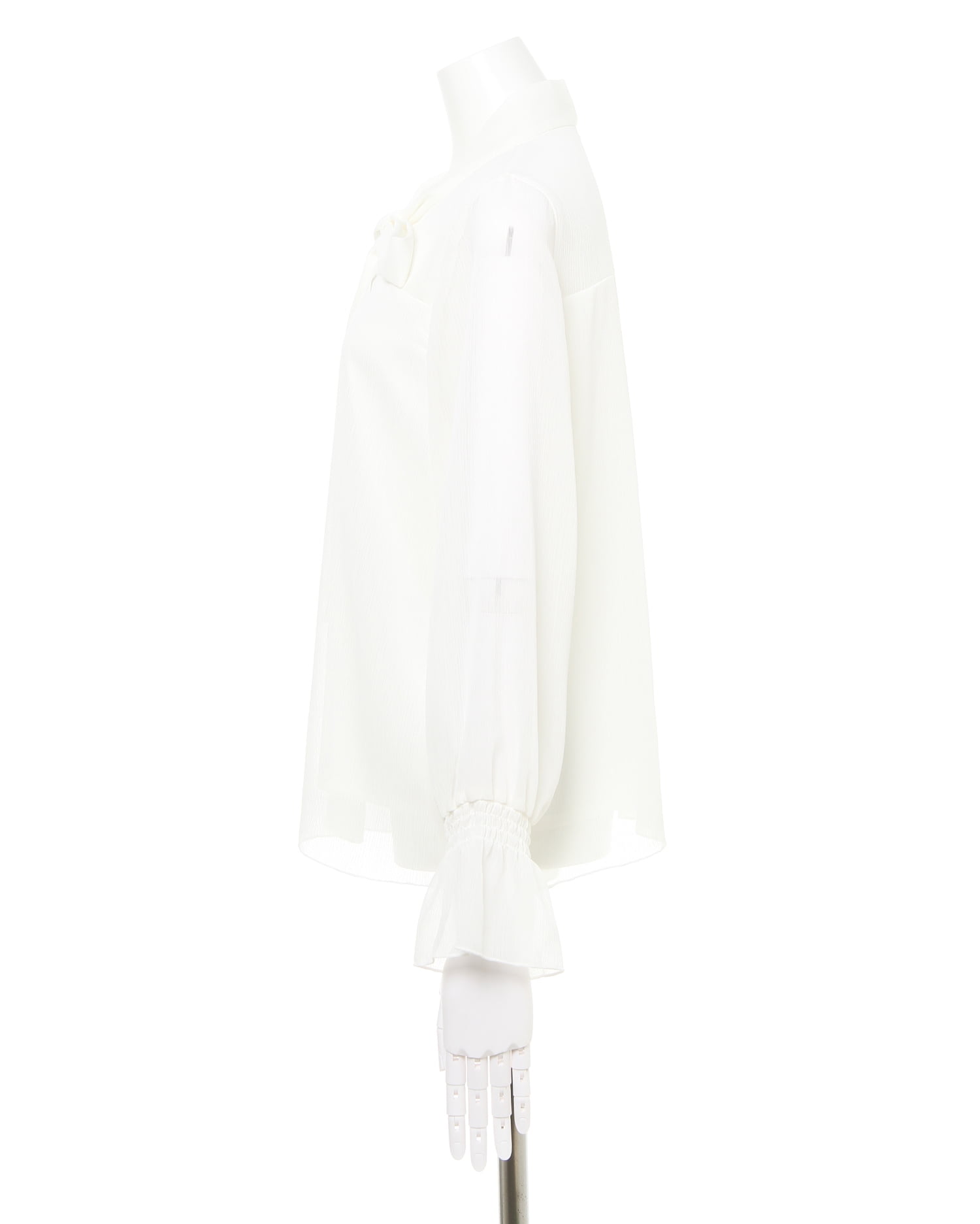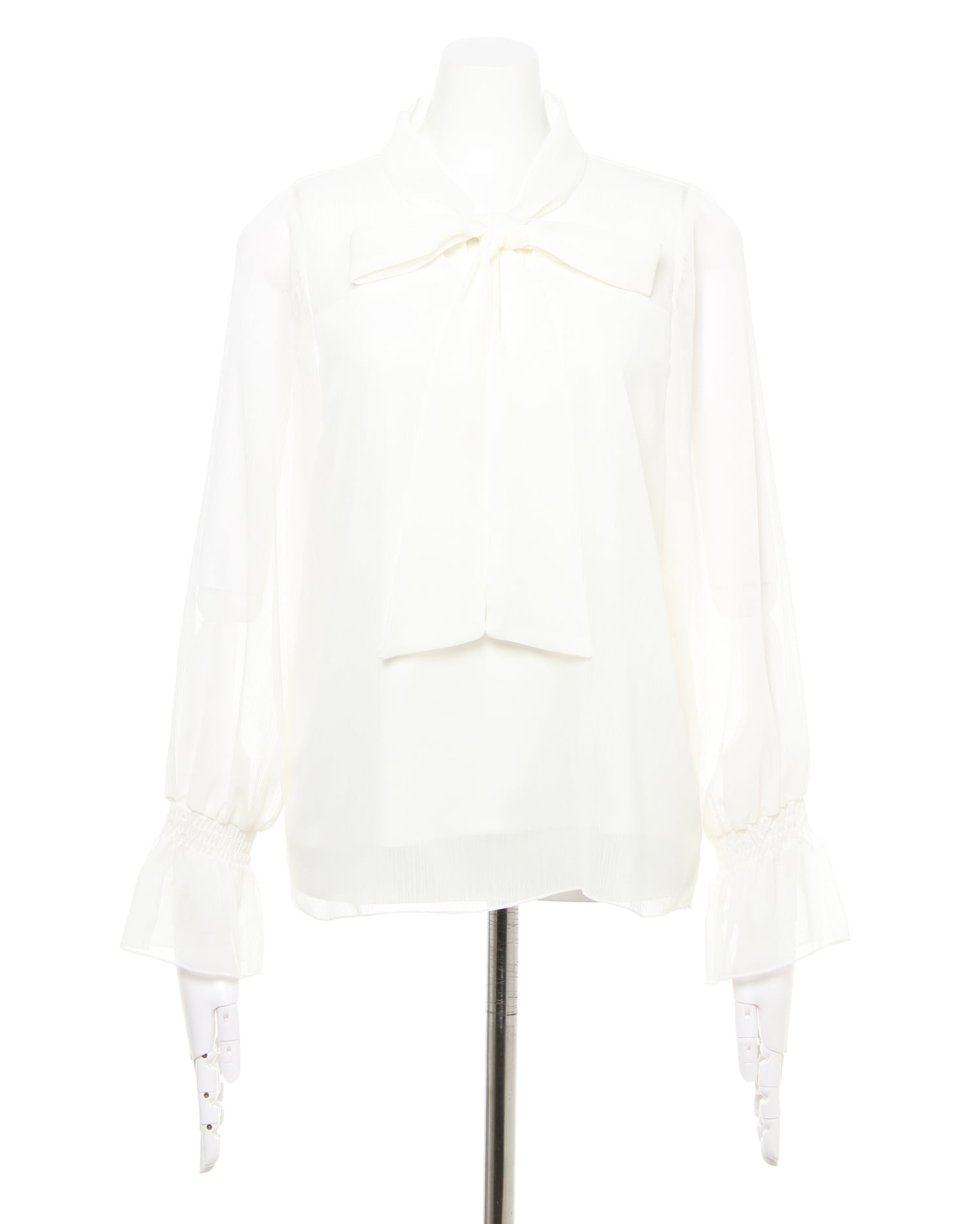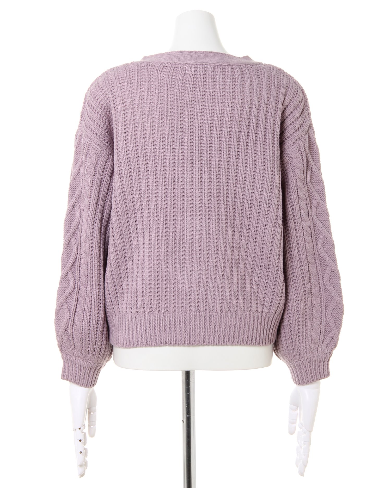 ケーブル/ショートカーディガンとボウタイ楊柳シアー/ブラウスのSET☆