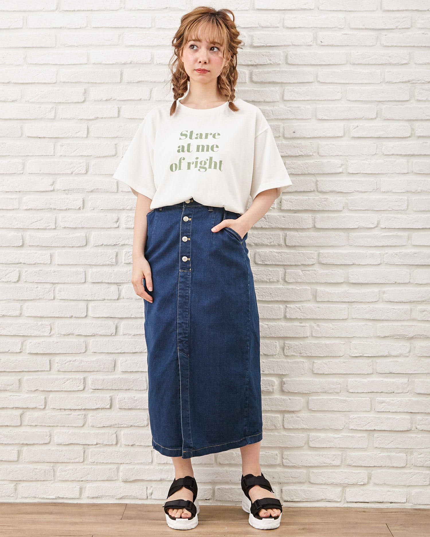 3段/ロゴTシャツと前ボタンナロー/スカートのSET☆