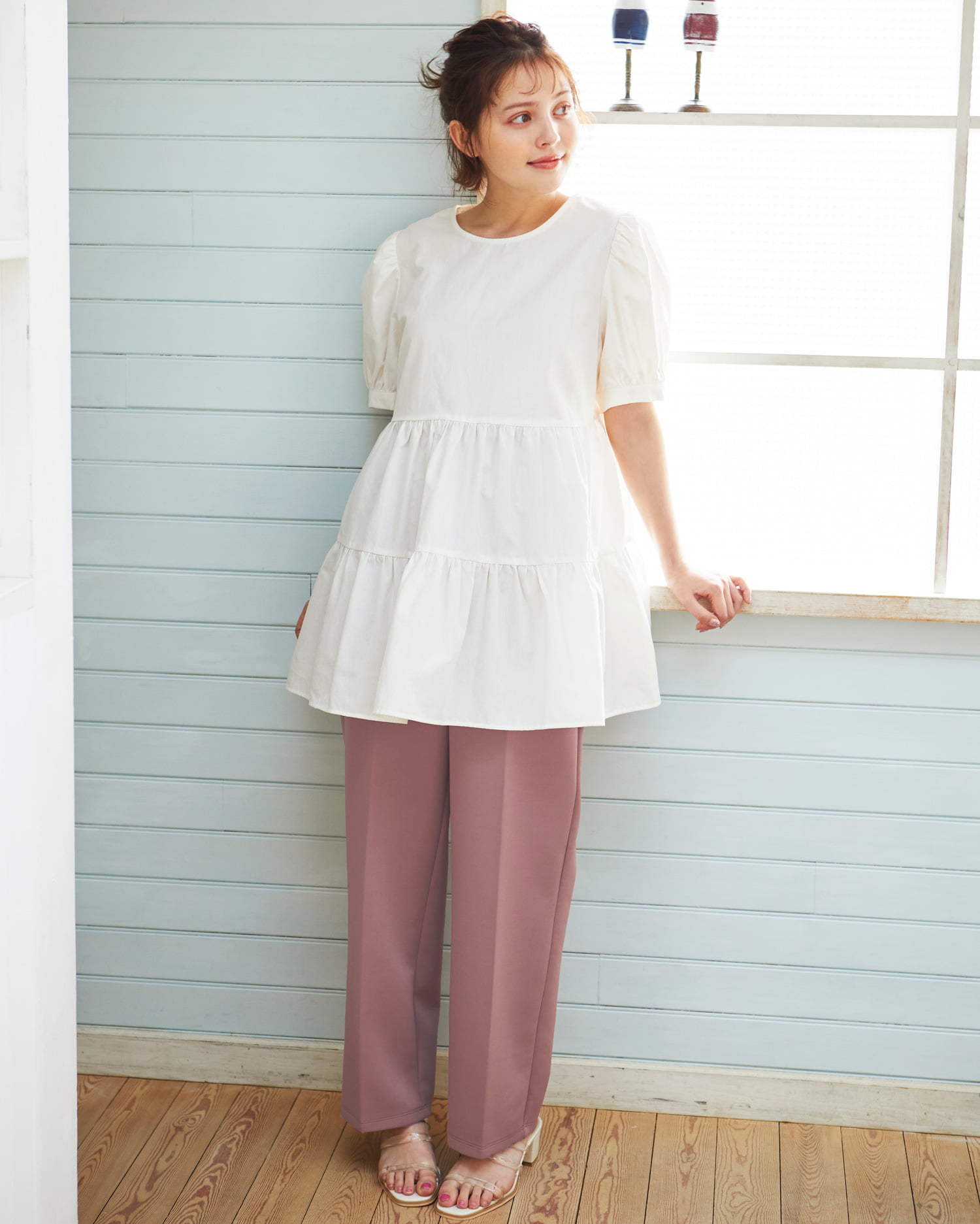 ティアードチュニック/ブラウスとカットポンチセンタープレスパンツのSET☆