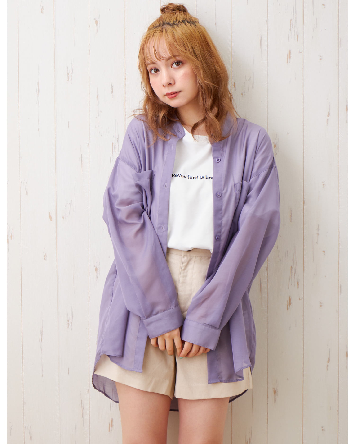 シャツ:ポケットあり・裾前後差あり・透け感あり