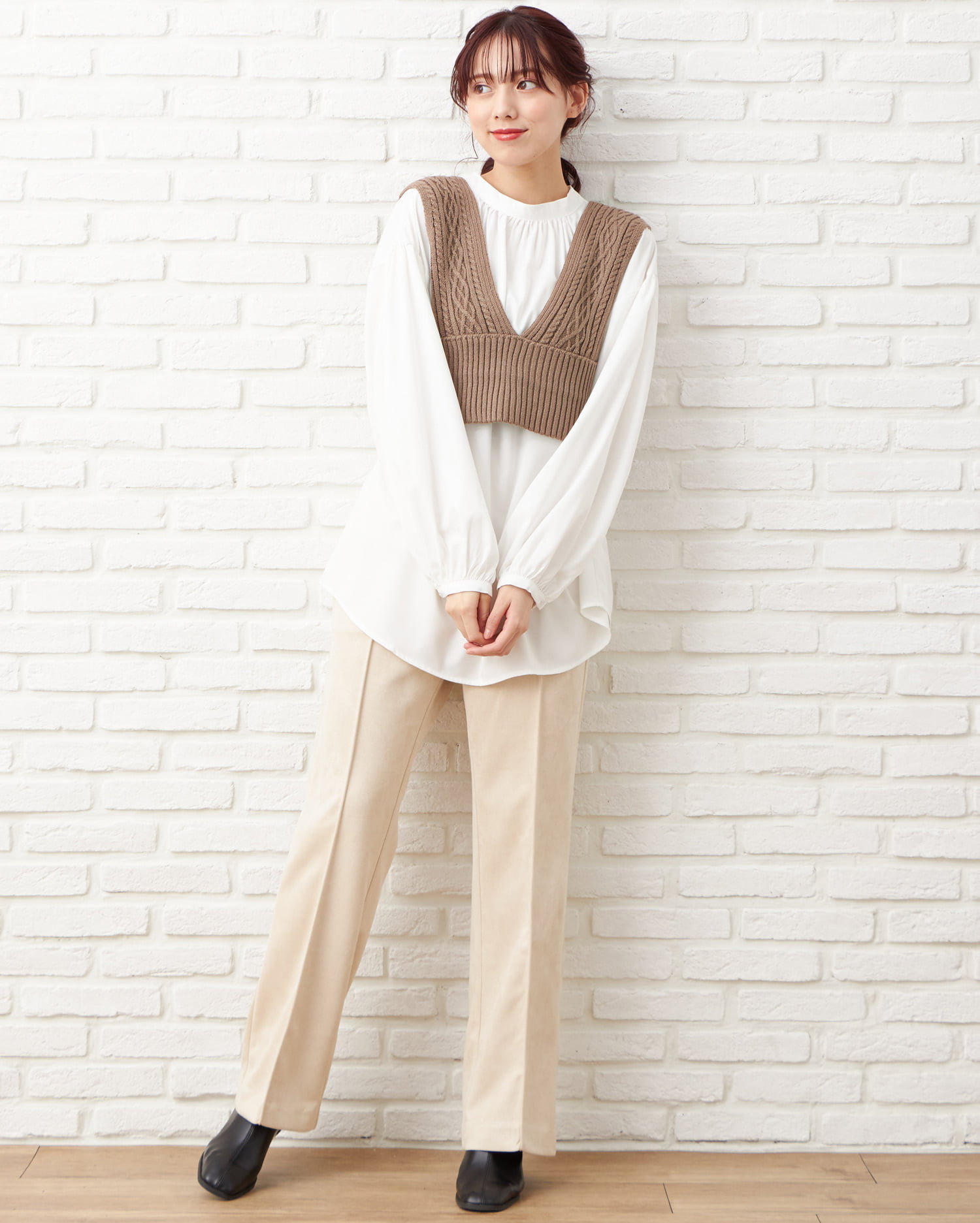 ニットビスチェ+シャツ/SETとスエードポンチセンターシームフレア/パンツのSET☆