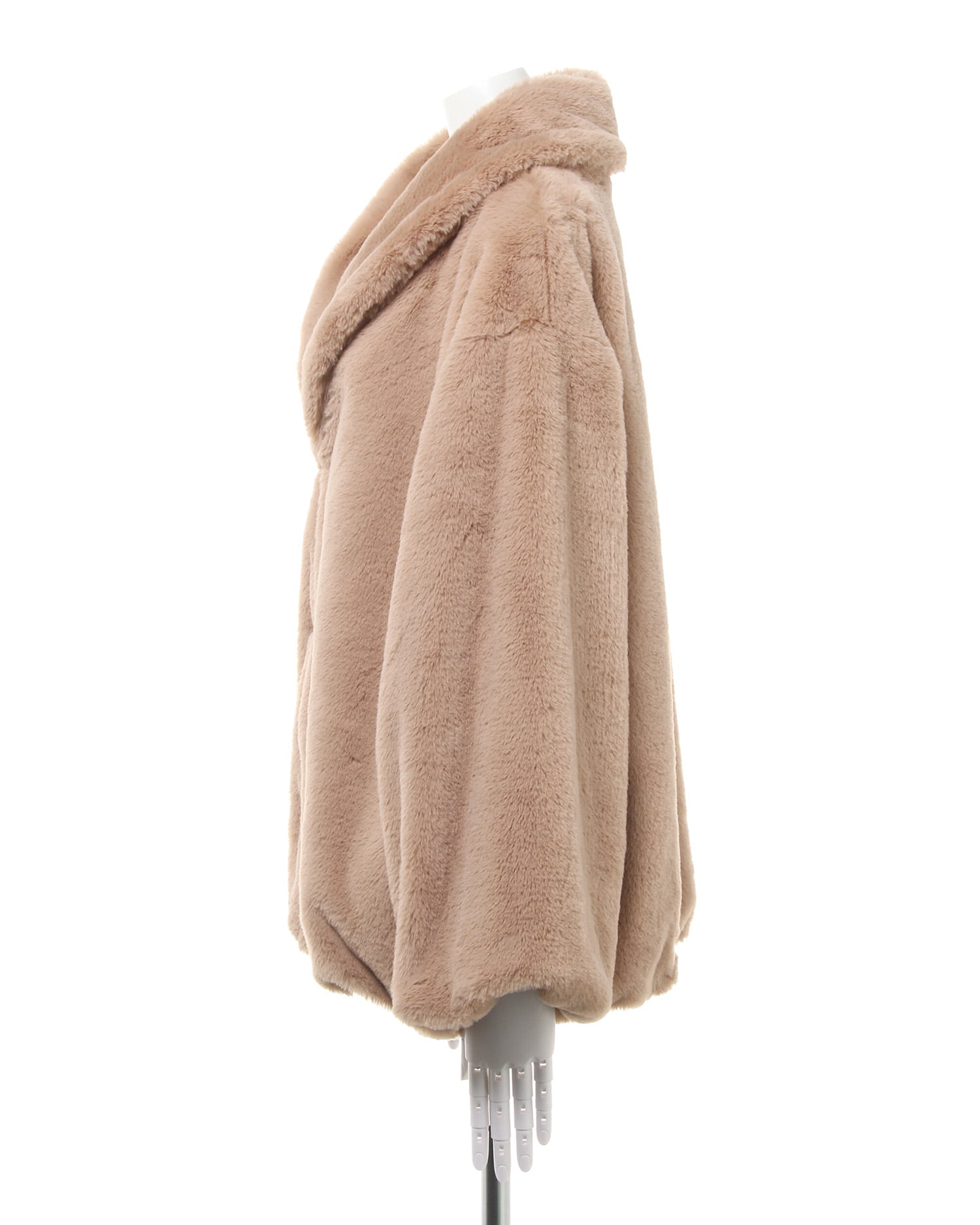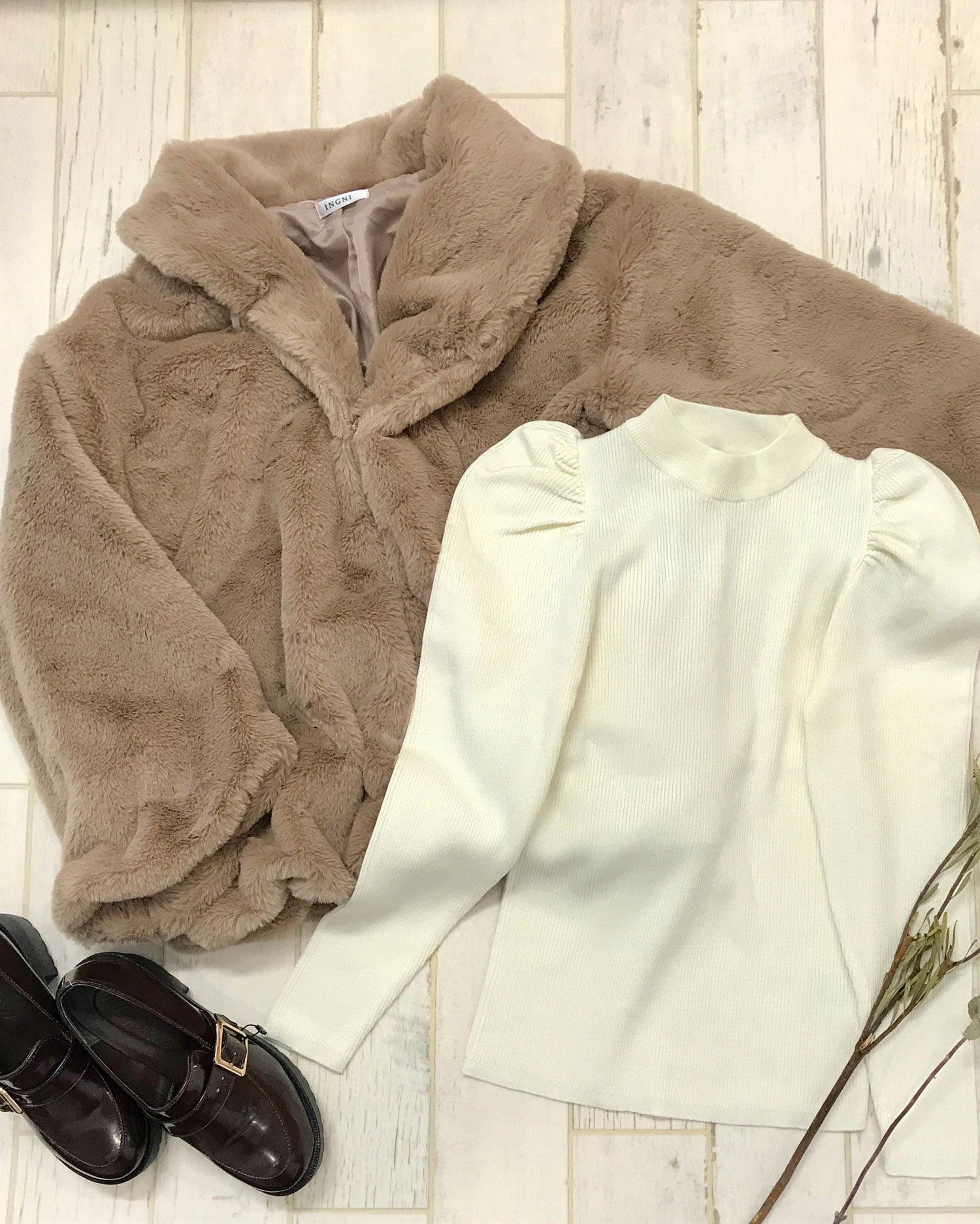 ショールカラーエコファーコートとパワショル/リブニットのSET☆