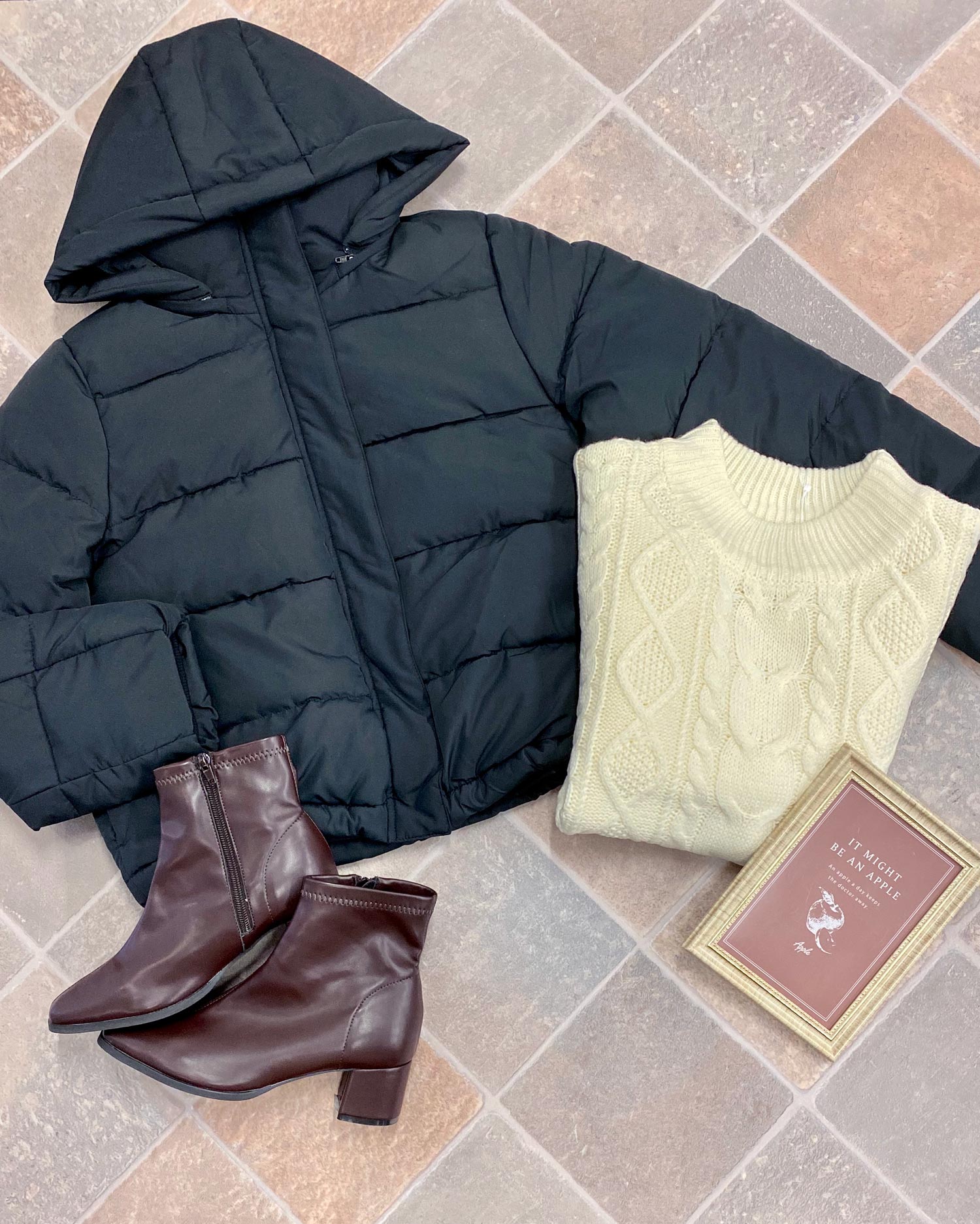 エコダウン/コートとケーブルモックネックニットのSET☆