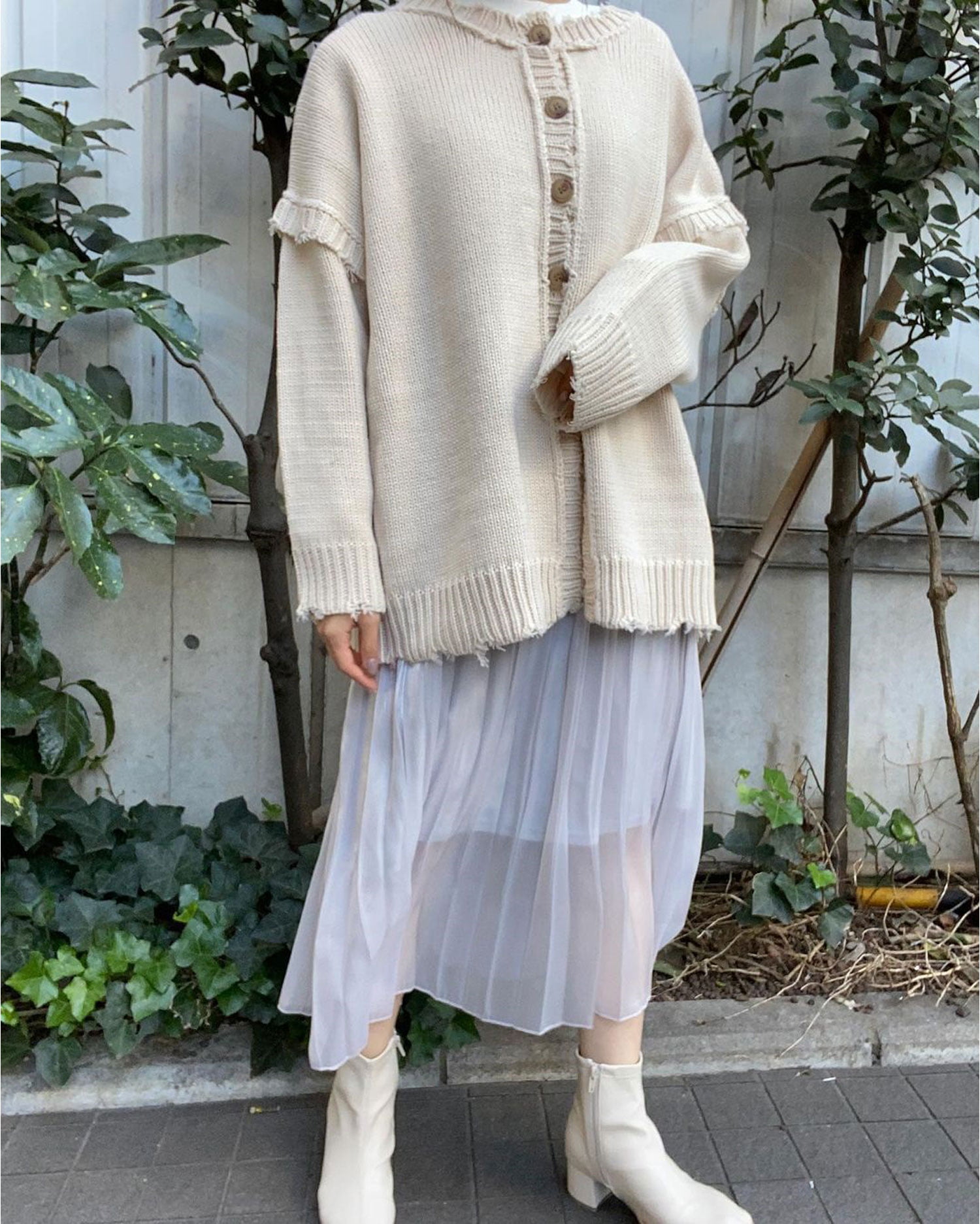 2WAY/ブロークンカーディガンとシアーシャイニープリーツ/スカートのSET☆