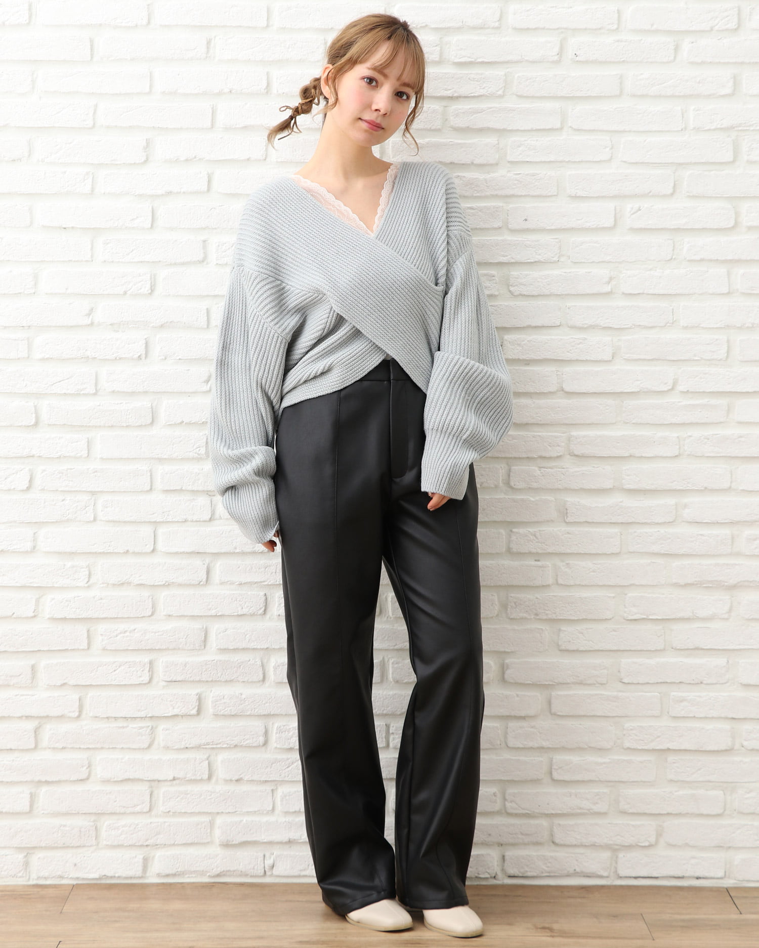 カシュクールビッグシルエットニットとフェイクレザー/パンツのSET☆