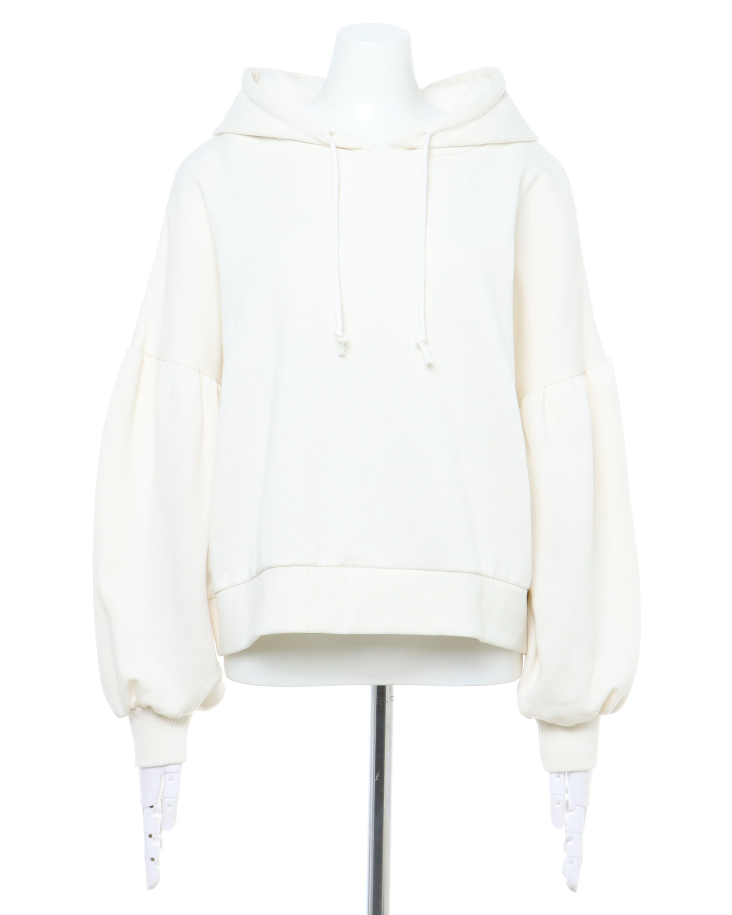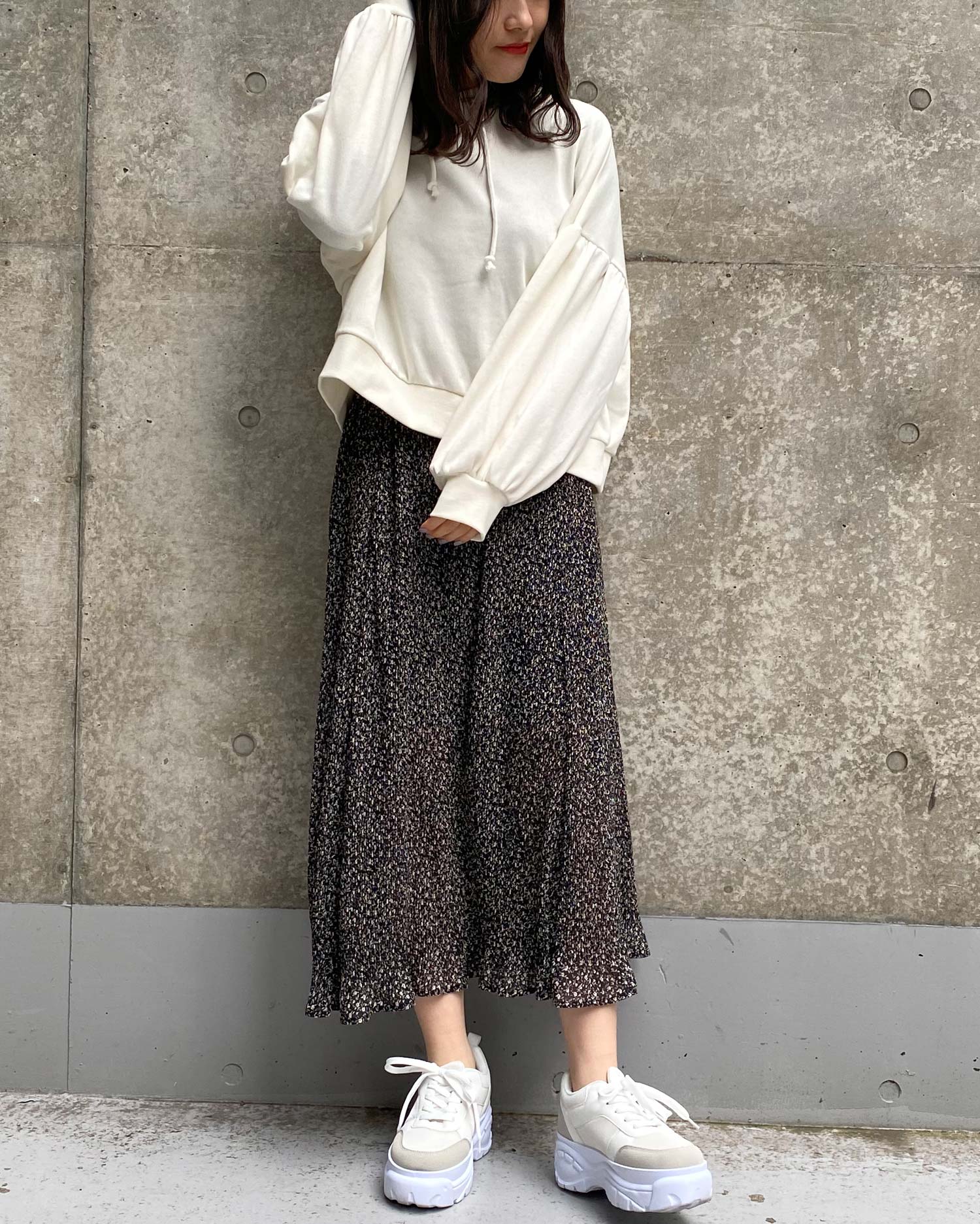 スウェットボリュームスリーブショート丈パーカーと花柄フレアプリーツ/スカートのSET☆