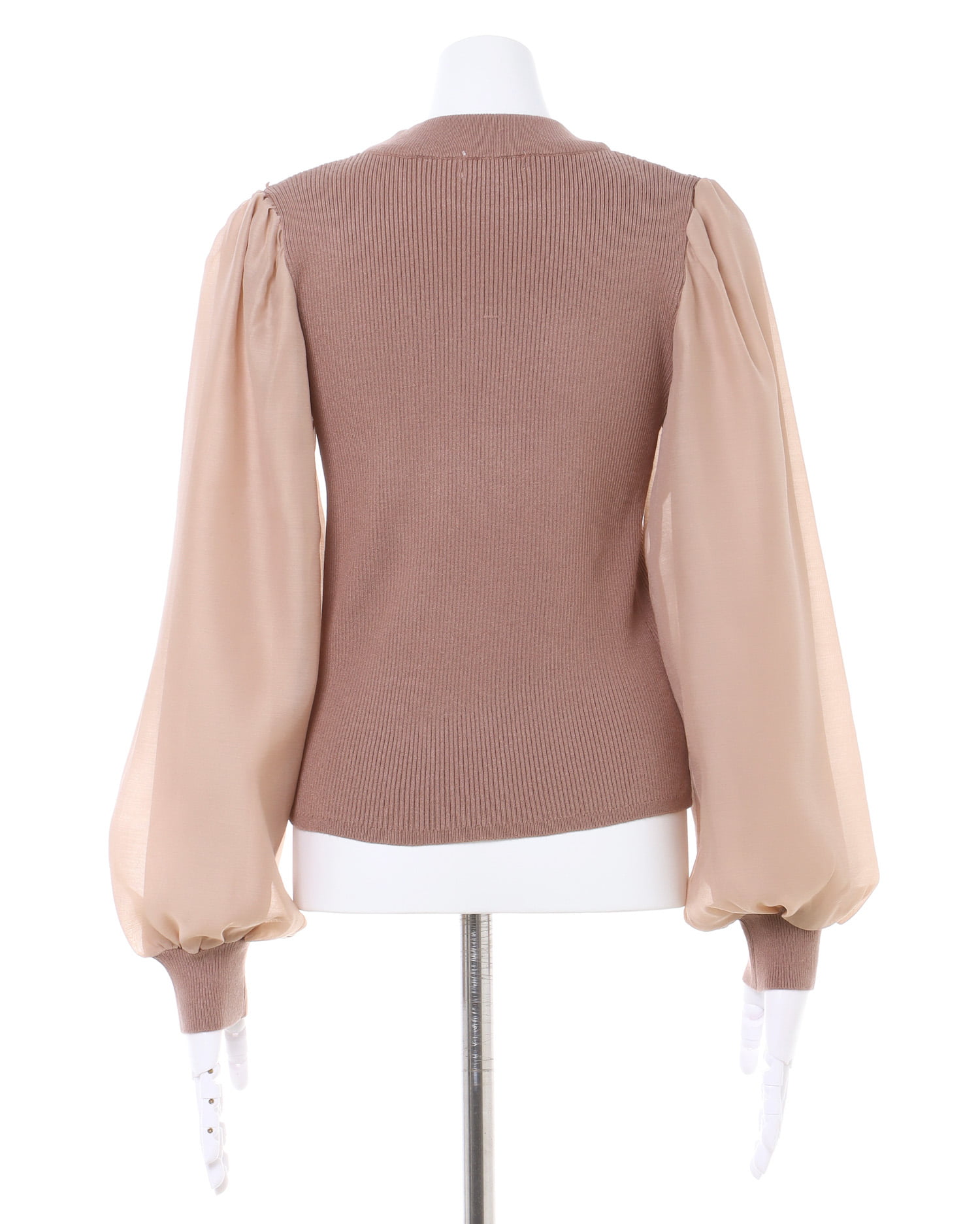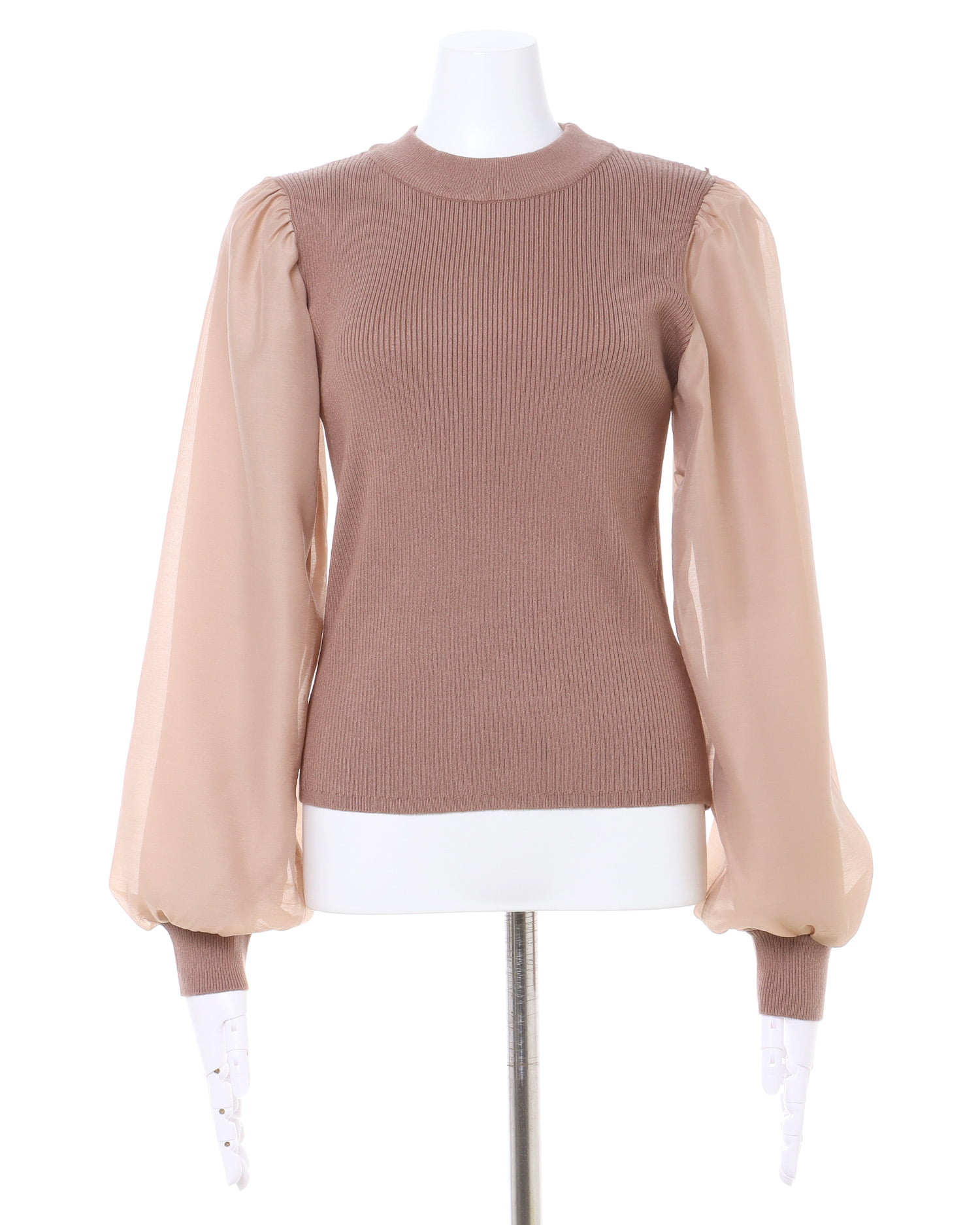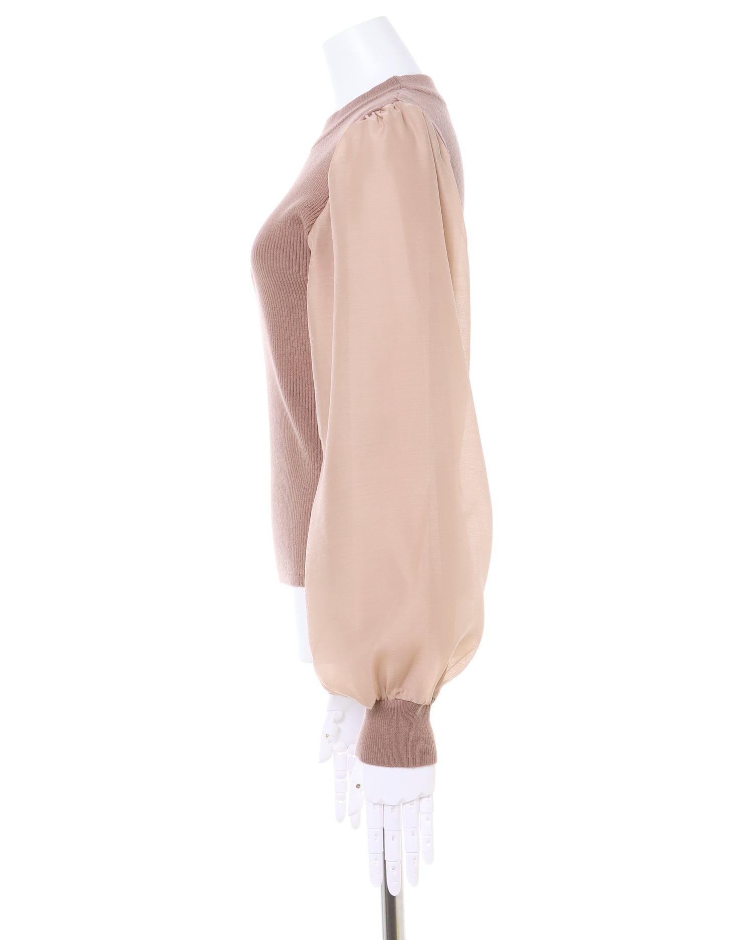 袖異素材パワショルニットとレースUPタックギャザーフレア/スカートのSET☆