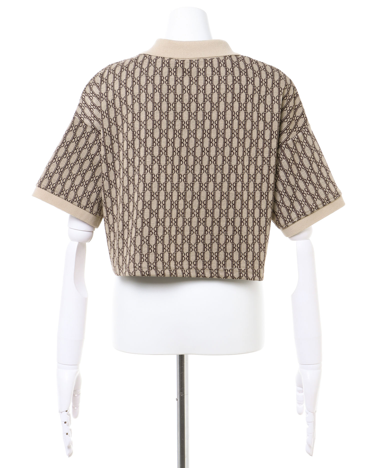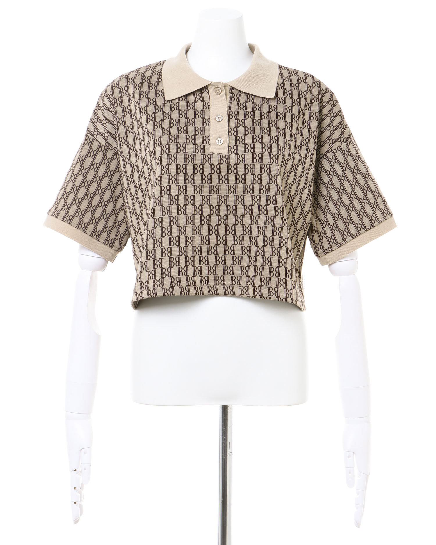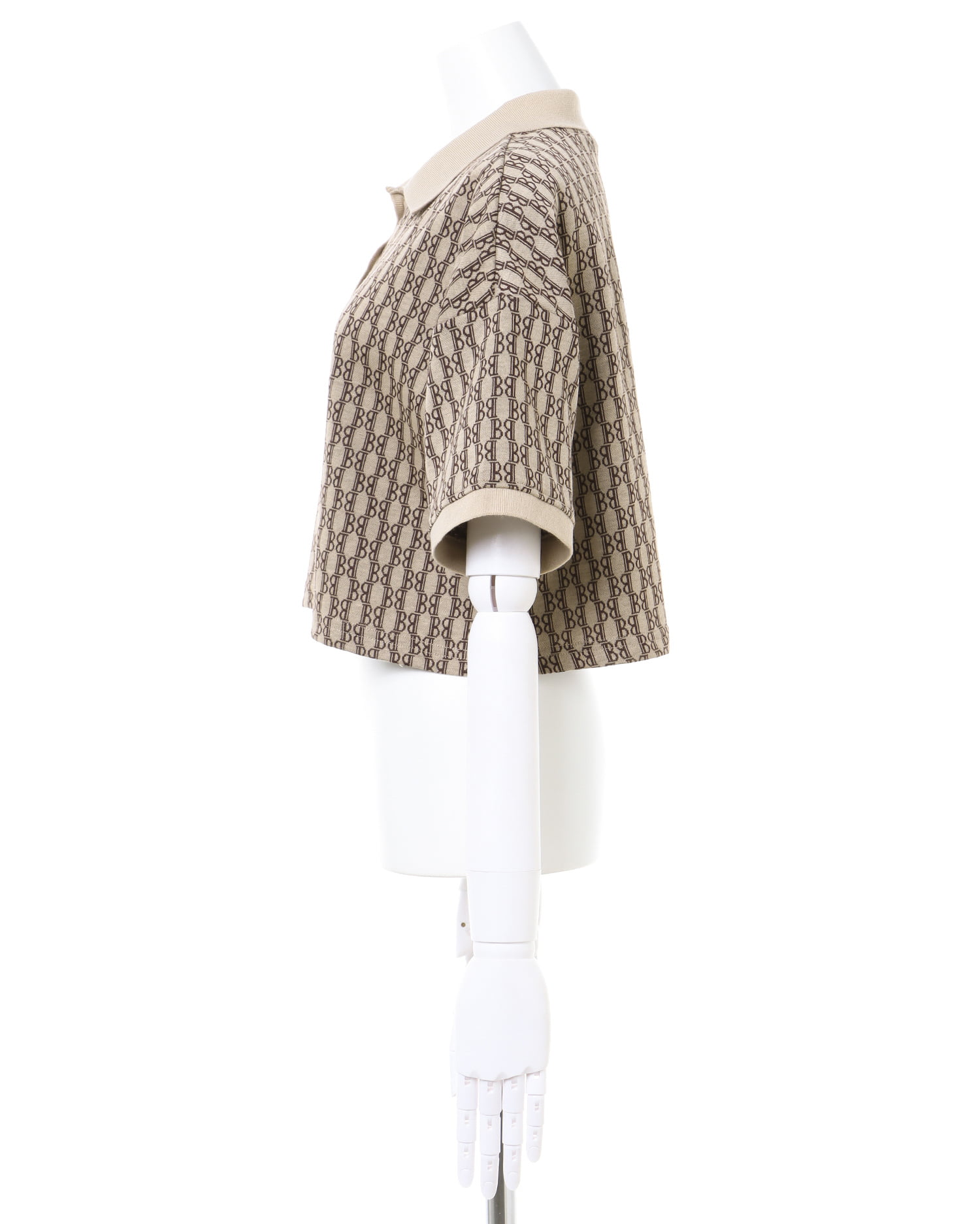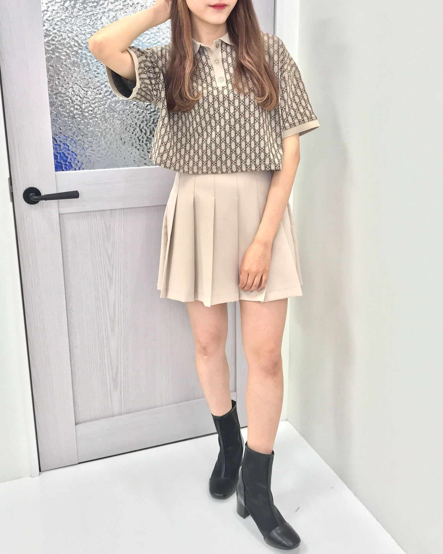 ジャガード柄ポロ襟トップスとプリーツスカパンのSET☆