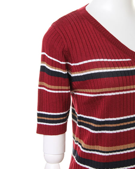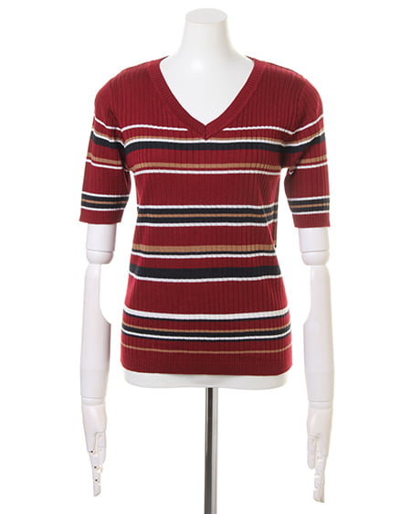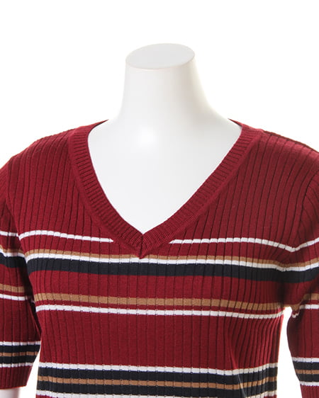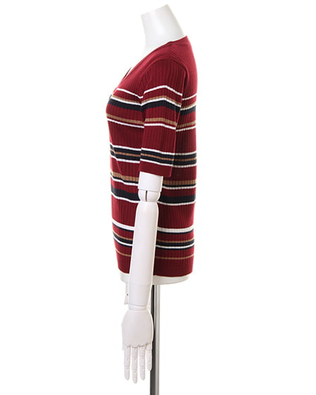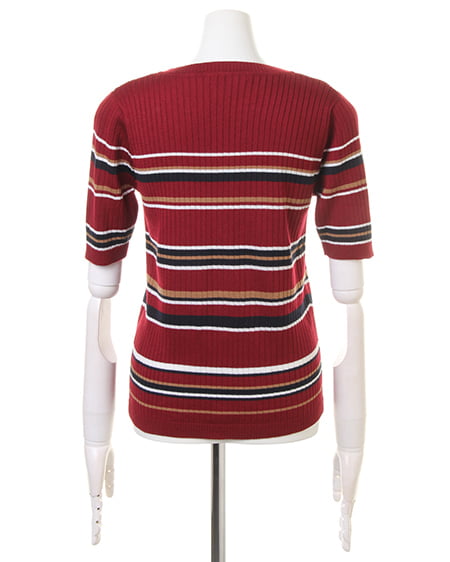 一枚ではもちろん、インナーとしても活躍するボーダートップス。ピッチやボーダーの幅を変えたデザインが、レトロなイメージの一枚。リブニットを使用しているので、柔らかい着心地と程よいフィット感を実現。すっきり開いた首もとが、デコルテをキレイに見せてくれる効果を期待できます。一枚で、女性らしいフェミニンな雰囲気に仕上がるアイテム。