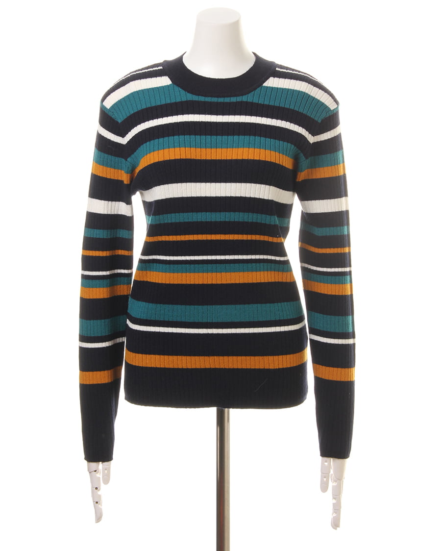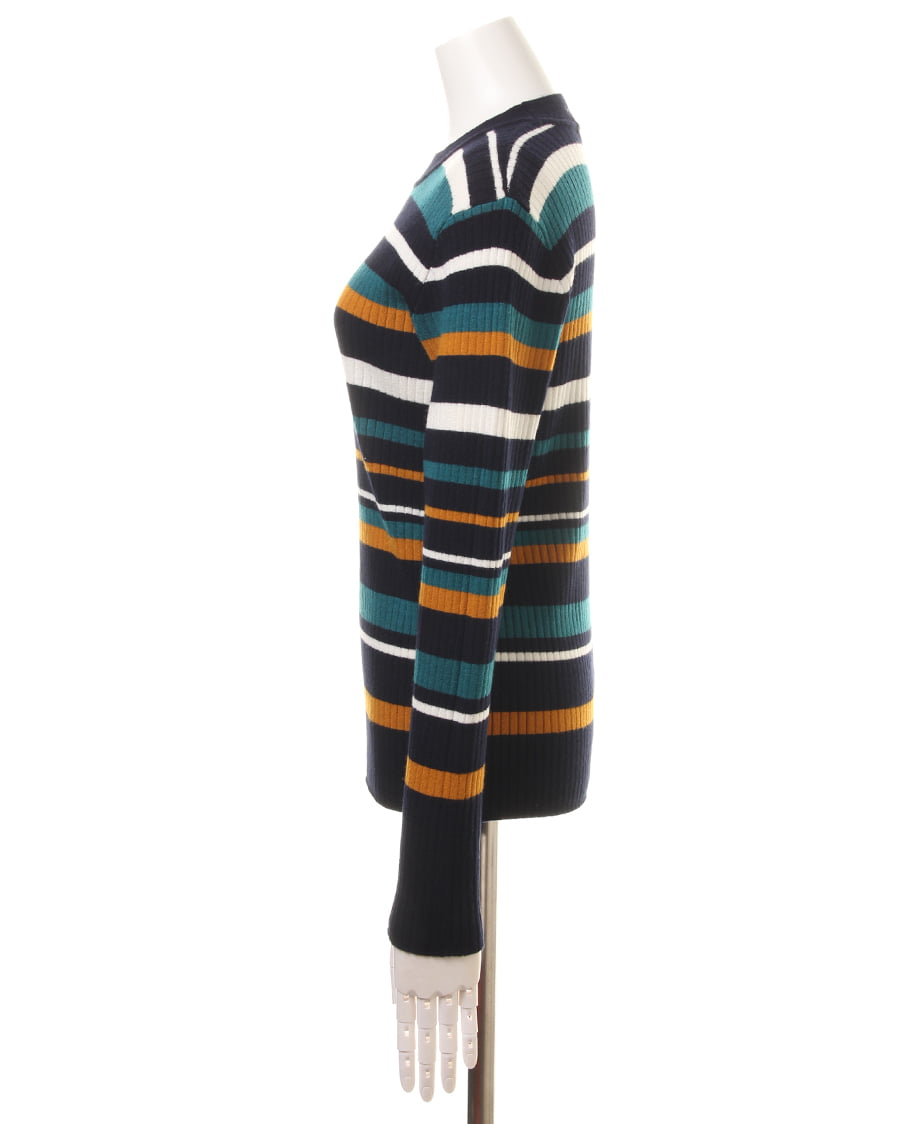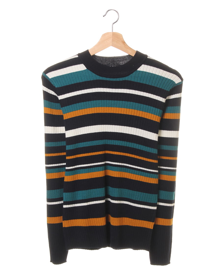 1174-942525 マルチボーダーリブプチ/ハイネック