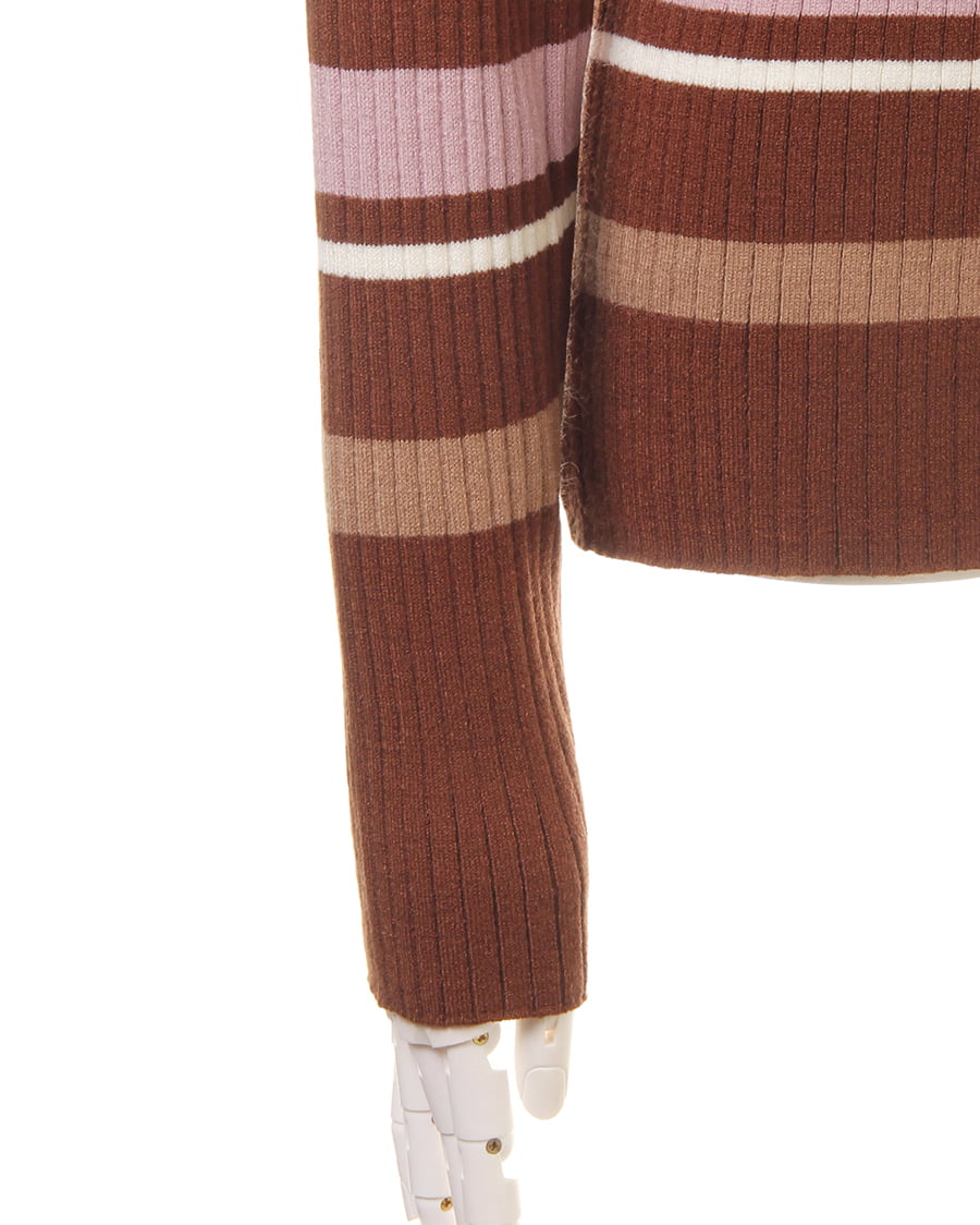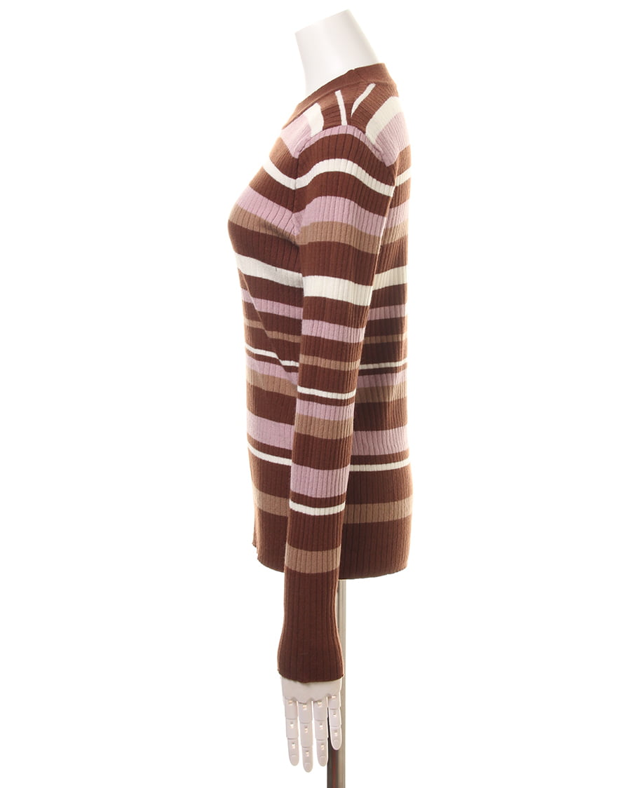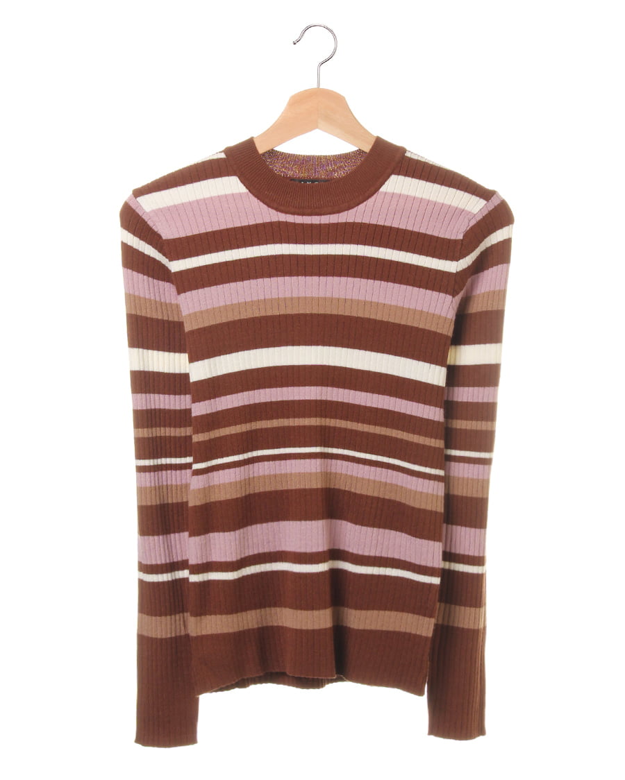 • INGNI(イング) マルチボーダーリブプチ/ハイネック ブラウン
